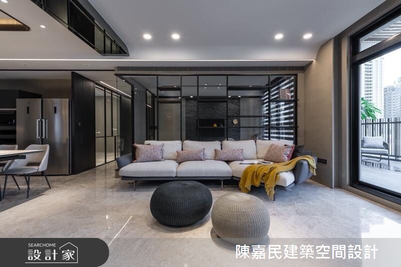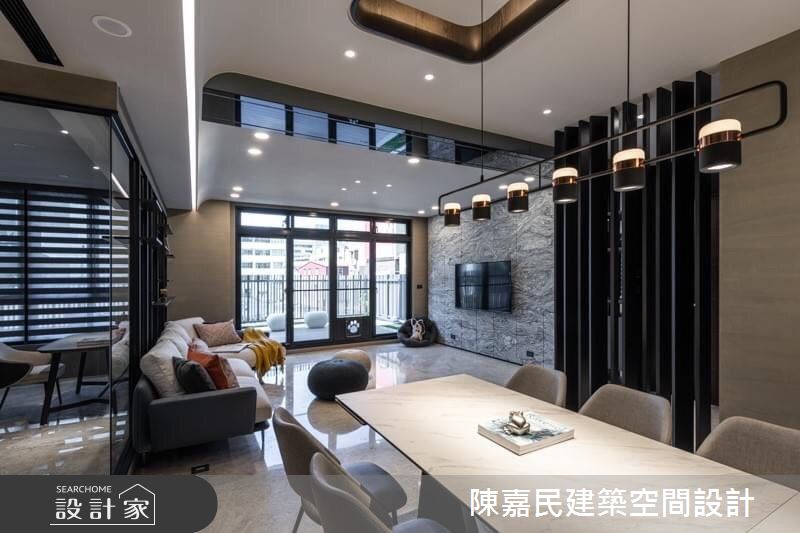 來自陳嘉民建築空間設計的190坪混搭風住宅案,屋主一家人共有2位大人、2位小孩,是一間單層新成屋(5年以下)的五房格局,設計師藉由建材以壁紙、木地板、鐵件、鍍鈦金屬、烤漆、軌道燈、皮革、石材、繃布、噴漆的搭配應用,實現一家人的理想生活。