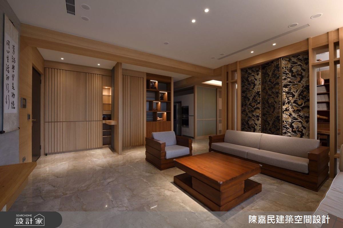來自陳嘉民建築空間設計的80坪日式禪風住宅案,屋主一家人共有2位大人、1位小孩,是一間單層新成屋(5年以下)的四房格局,設計師藉由建材以壁紙、榻榻米、木作貼皮、大理石、石材、繃布、噴漆的搭配應用,實現一家人的理想生活。