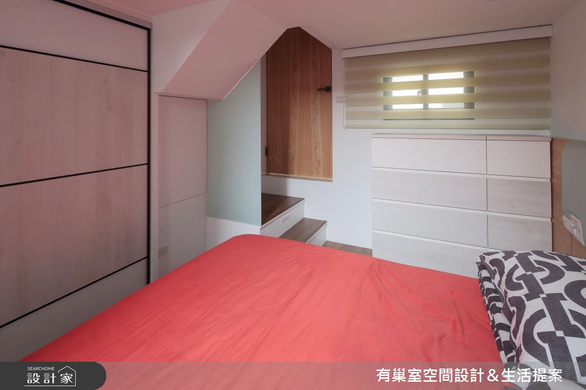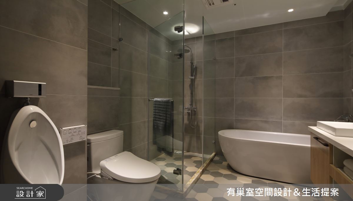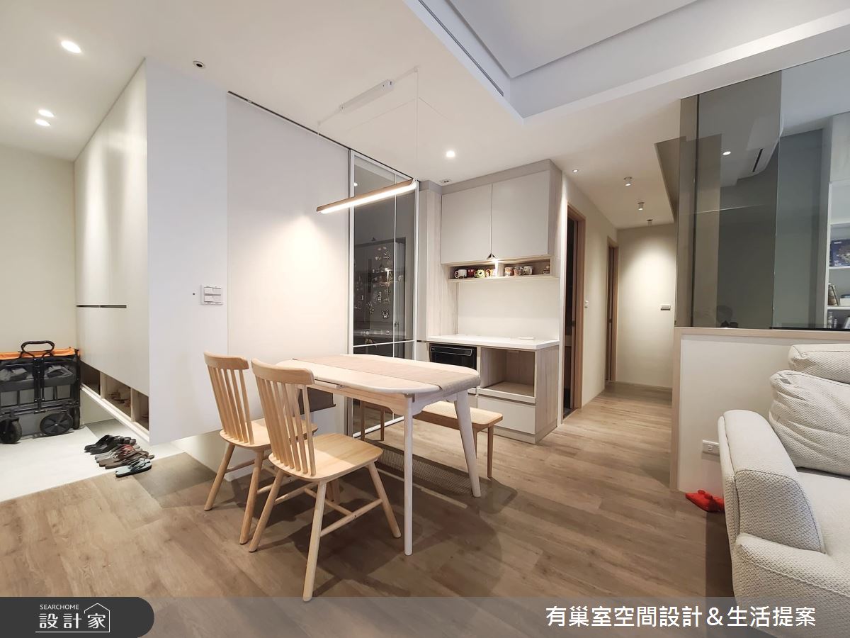 來自有巢室空間設計&生活提案的32坪簡約風住宅案,屋主一家人共有2位大人、1位小孩,是一間單層老屋(16~30年)的三房格局,設計師藉由建材以乳膠漆、花磚、超耐磨木地板、木紋磚、PVC地板、石英磚/拋光石英磚、不鏽鋼、鐵件、茶玻、木作貼皮、鋼刷木皮、系統板材、磁磚、軌道燈、皮革、石材、繃布、噴砂玻璃的搭配應用,實現一家人的理想生活。