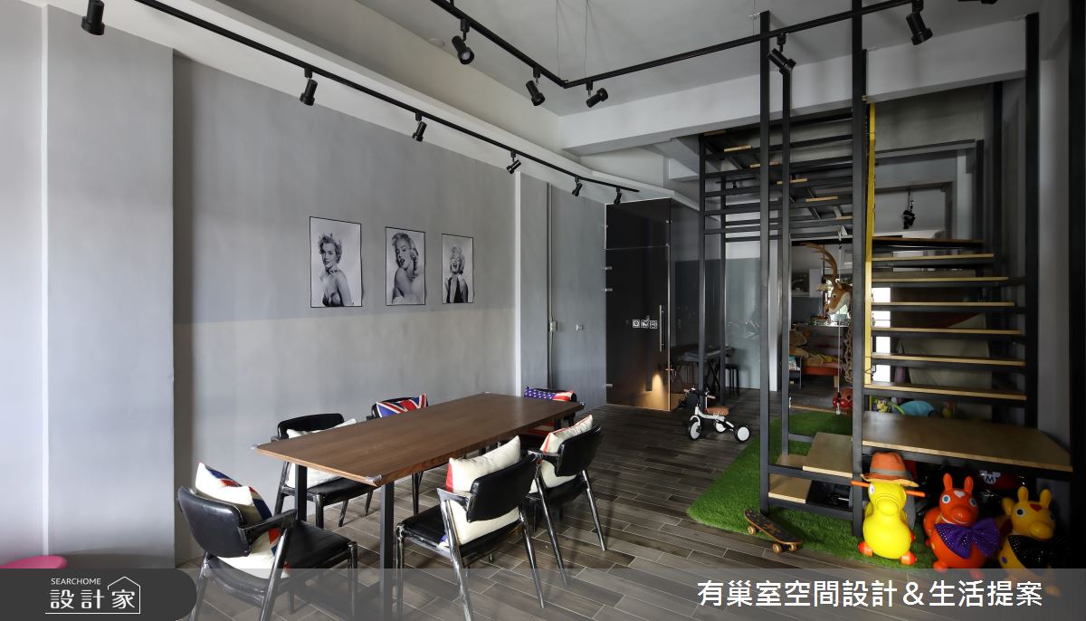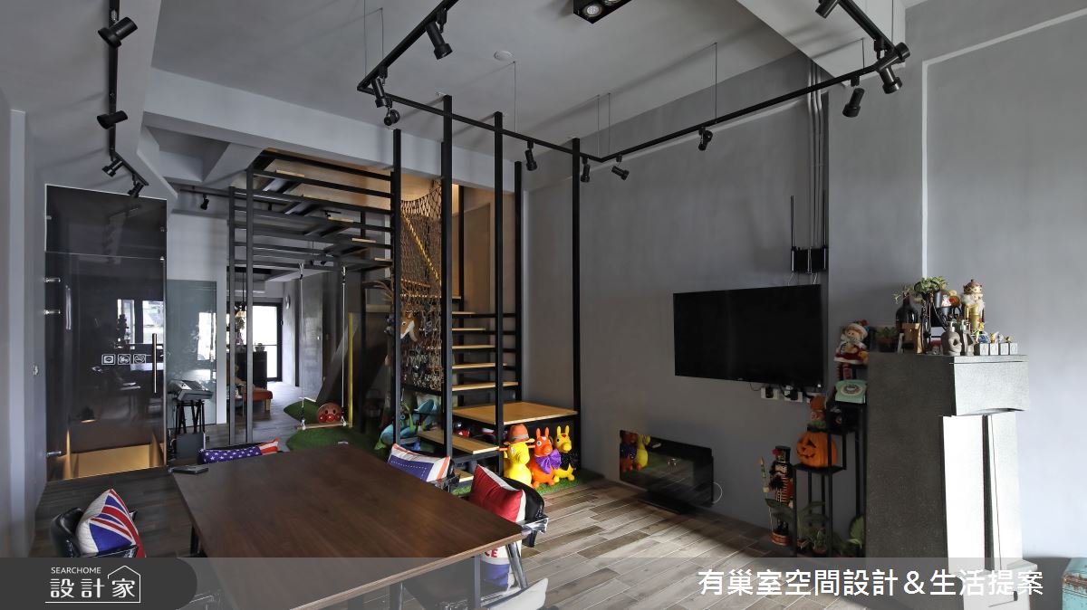 由有巢室空間設計&生活提案精心規劃的65坪三房住宅空間,家庭成員一共有2位大人、3位小孩。因應屋主需求,設計師運用工業風作為主軸,搭配木紋磚、鐵件、系統板材、無毒健康漆、原木,打造全家人的夢想家居。