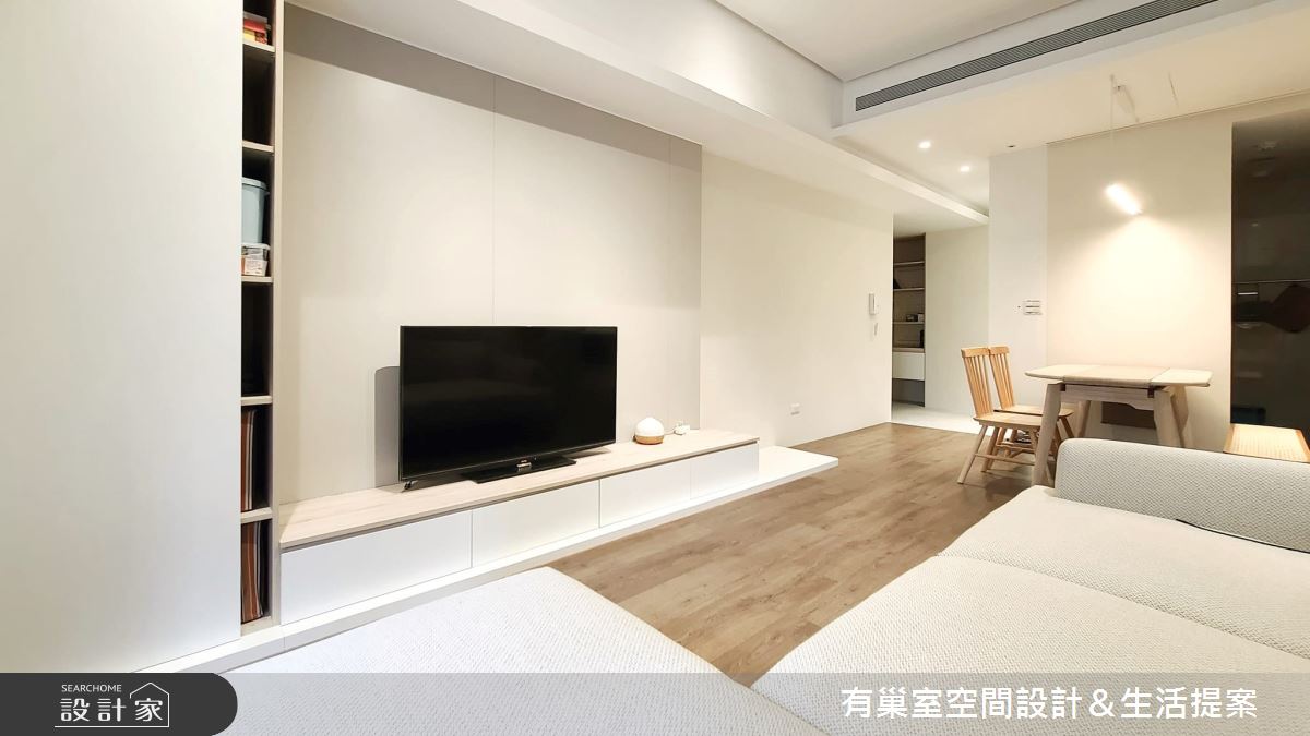 本案為有巢室空間設計&生活提案的55坪簡約風新成屋(5年以下)設計作品,格局為單層三房的居住空間。居住成員包含2位大人。全室建材的搭配,應用乳膠漆、系統板材、磁磚、藤編、玻璃、白板牆,展現溫馨的居家氛圍。