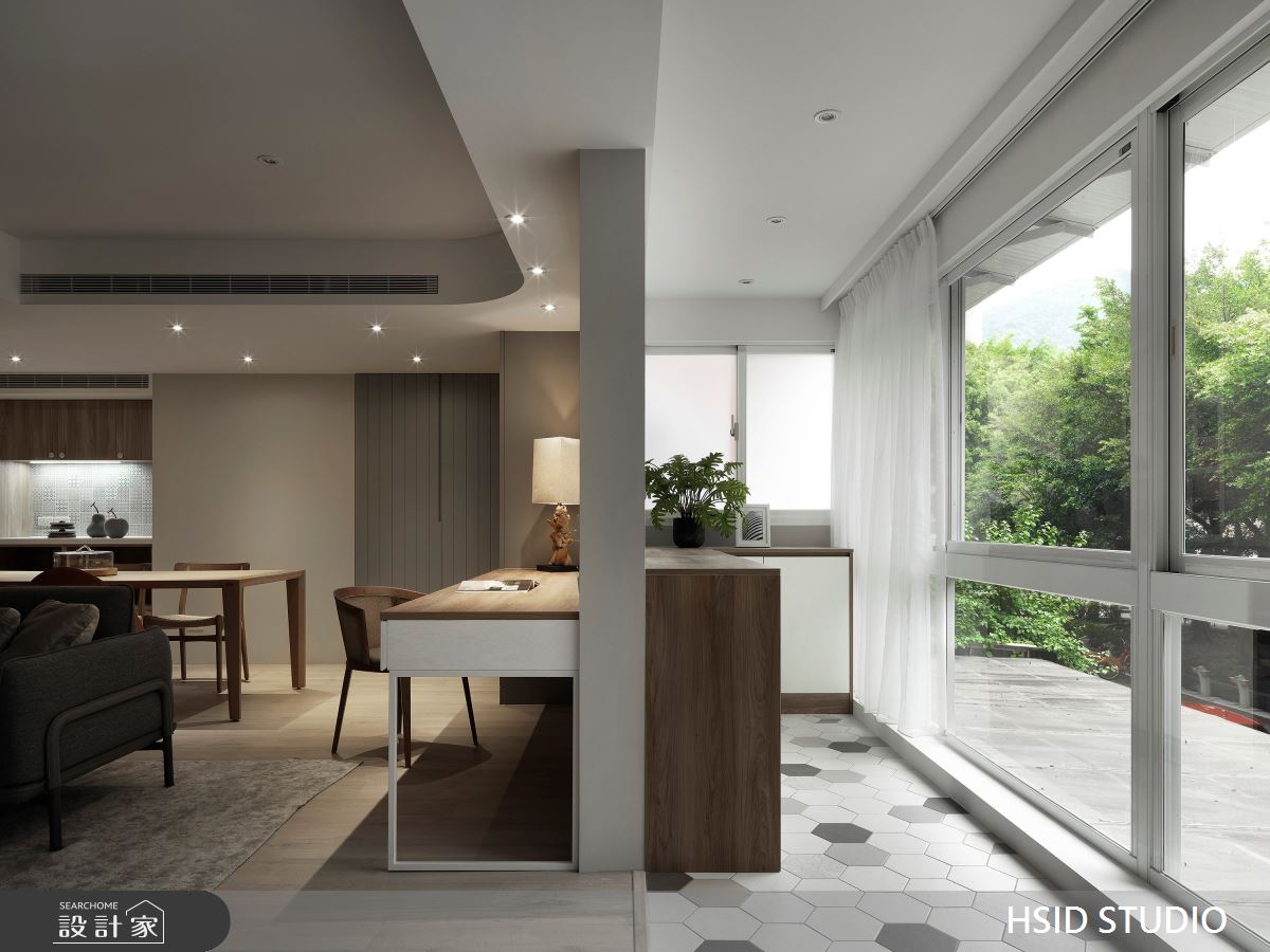樺設室內裝修設計以油漆、花磚、木地板、木作貼皮、系統板材、人造石、繃布的搭配應用,呈現日式無印風居家氛圍,將此間30坪、三房、單層、中古屋(5~15年)打造成舒適愜意的家庭空間,完成全家人的夢想之居。