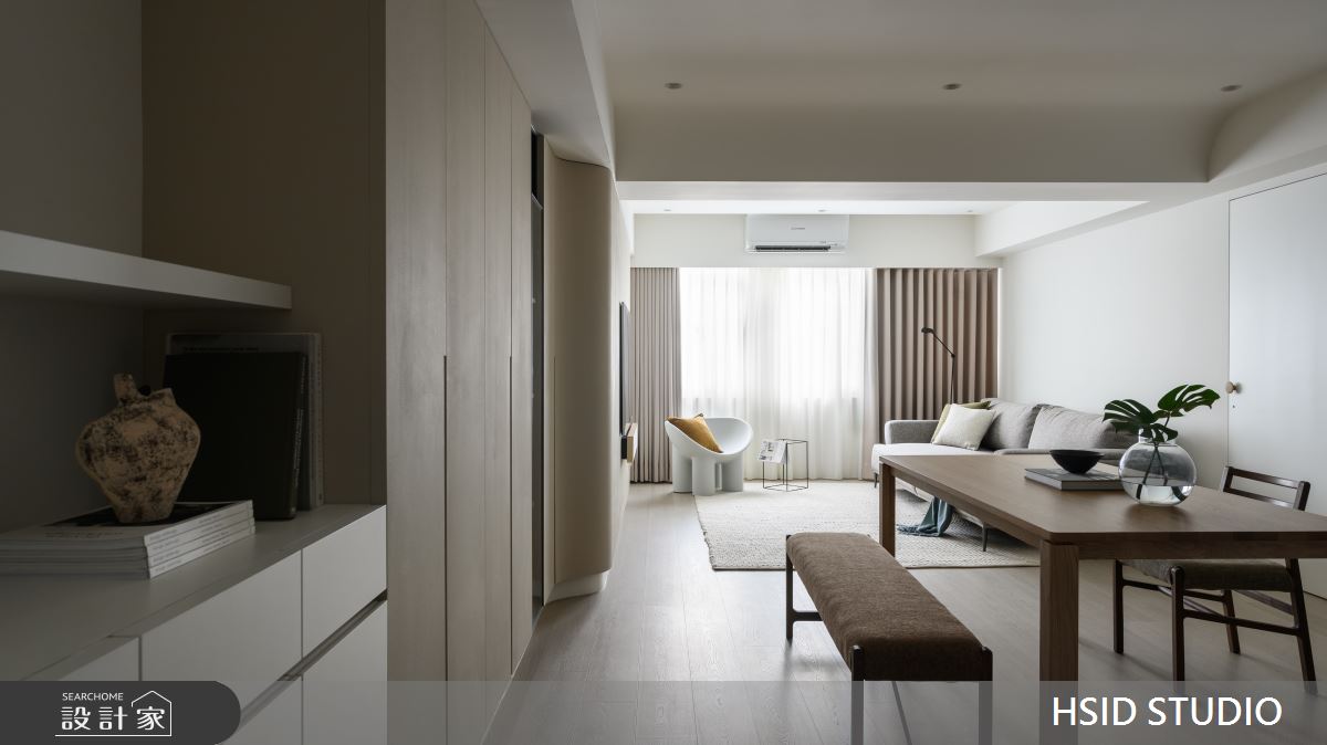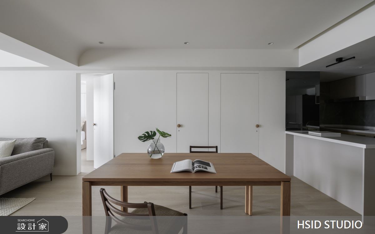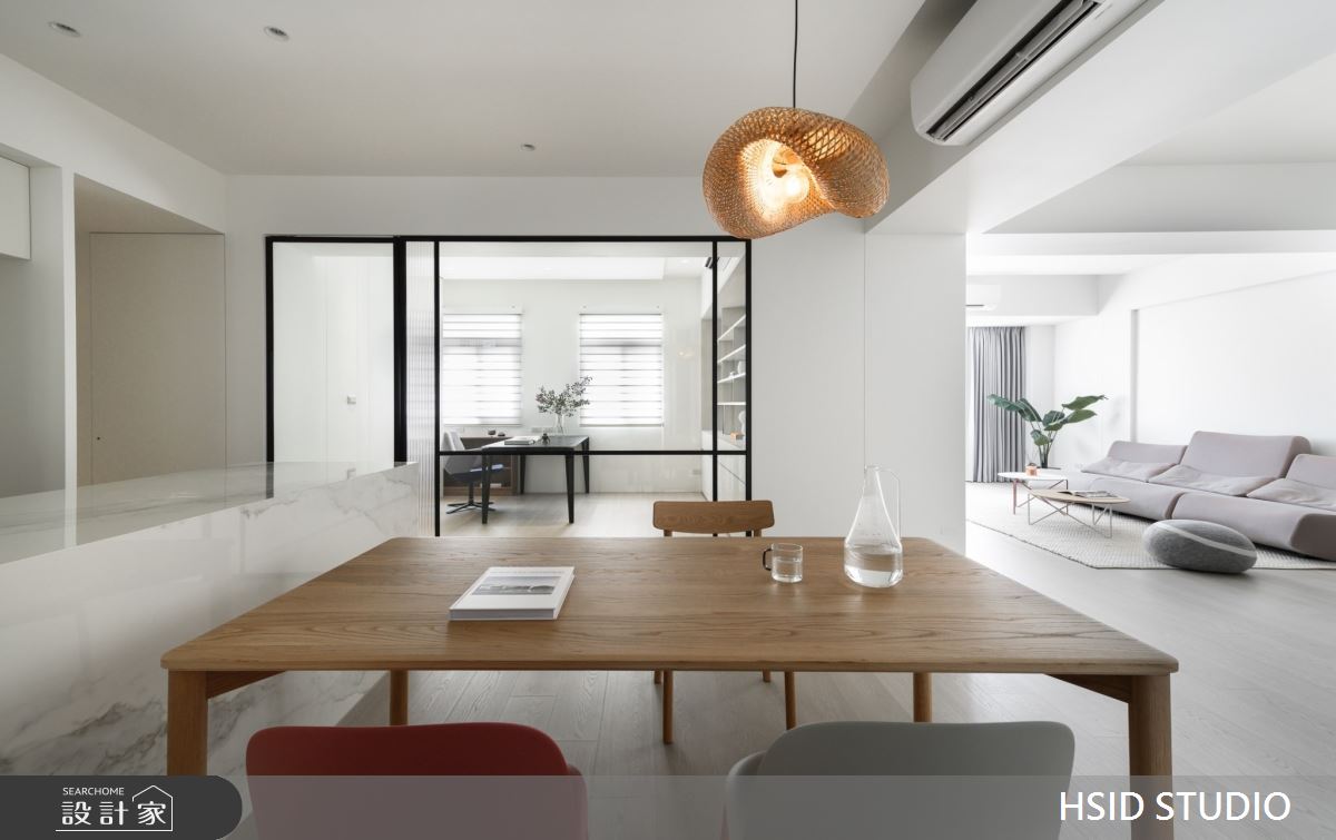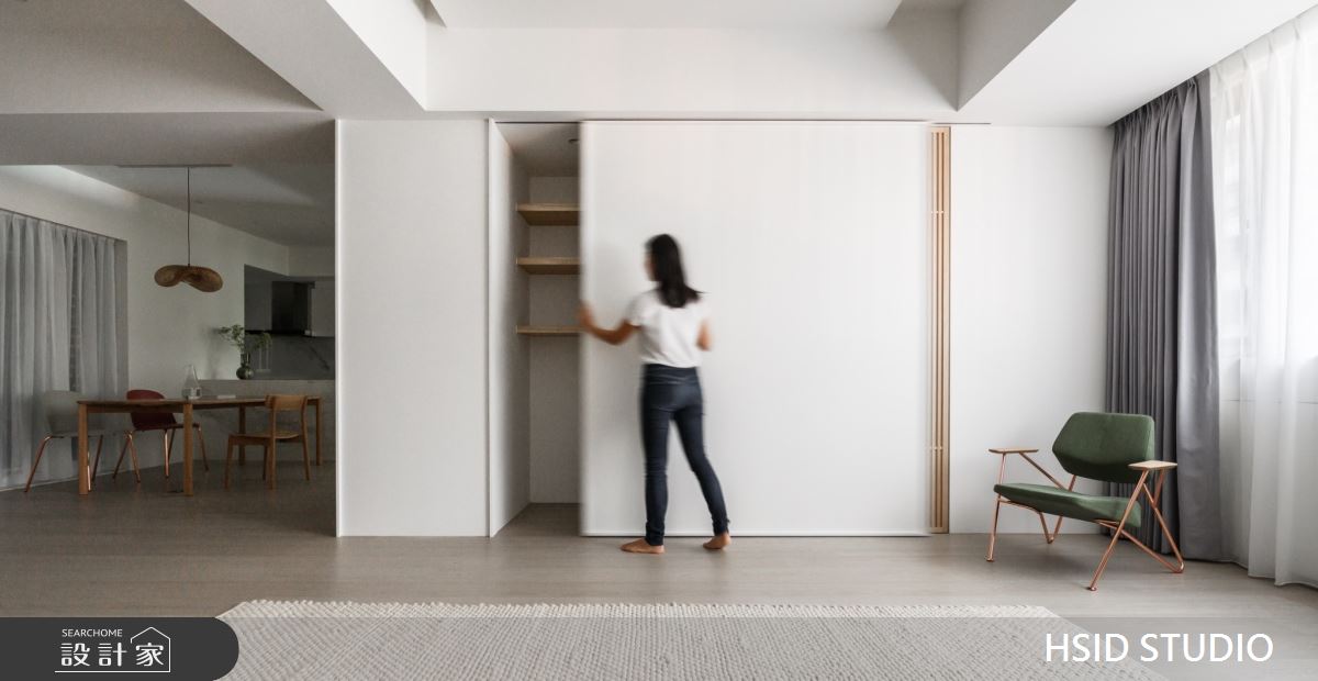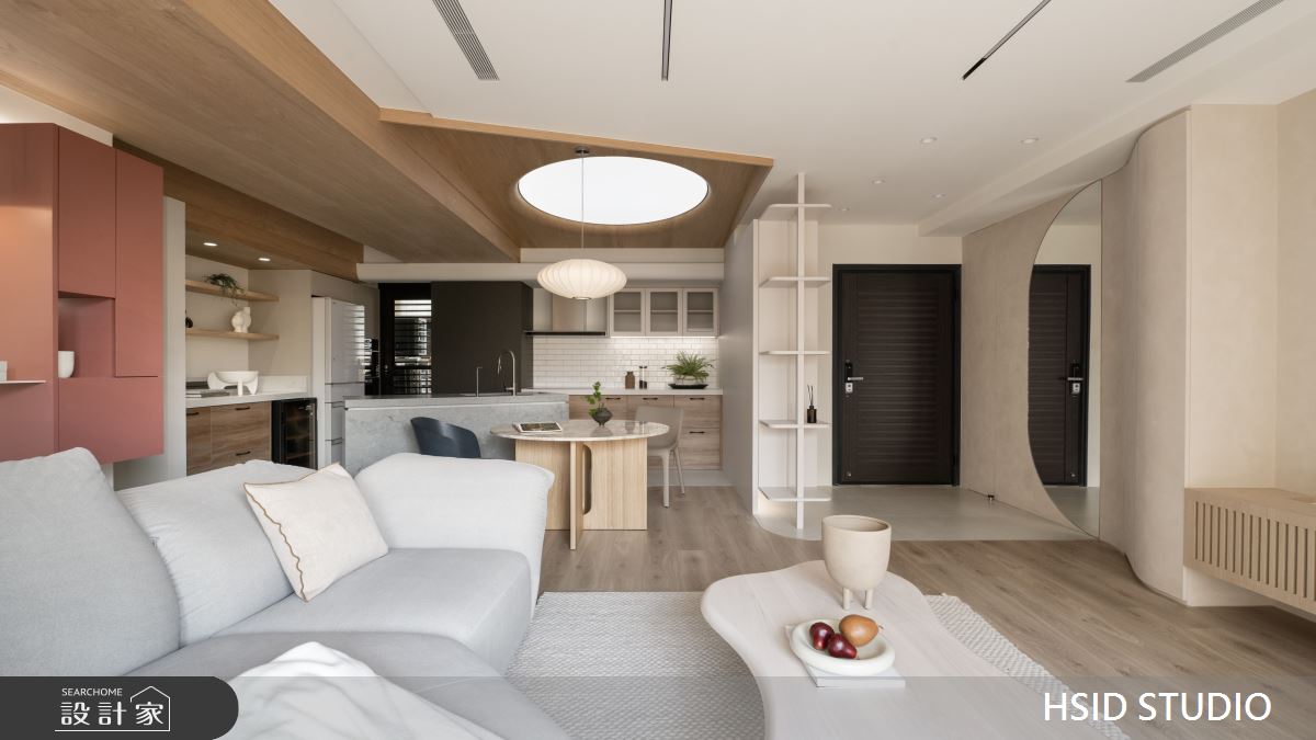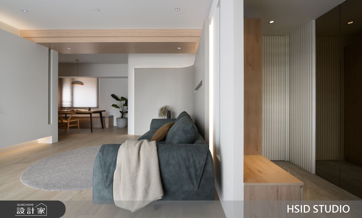 來自樺設室內裝修設計的28坪侘寂輕日式住宅案,是一間單層中古屋(5~15年)的三房格局,設計師藉由建材以系統板、美耐板、磁性板、烤漆、乳膠漆、小冰柱玻璃、窯變磚、鏡面貼膜、白色鐵件、人字拼磚的搭配應用,實現一家人的理想生活。