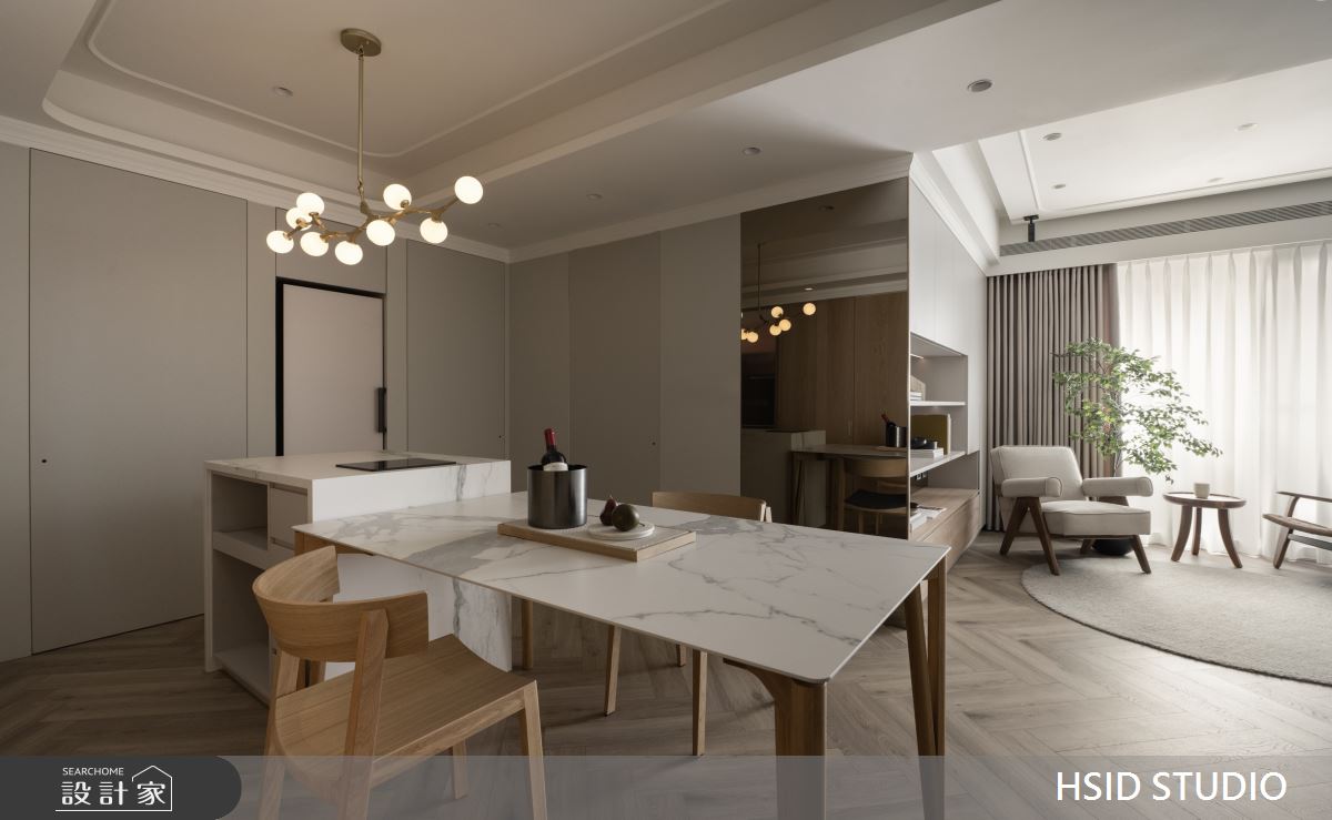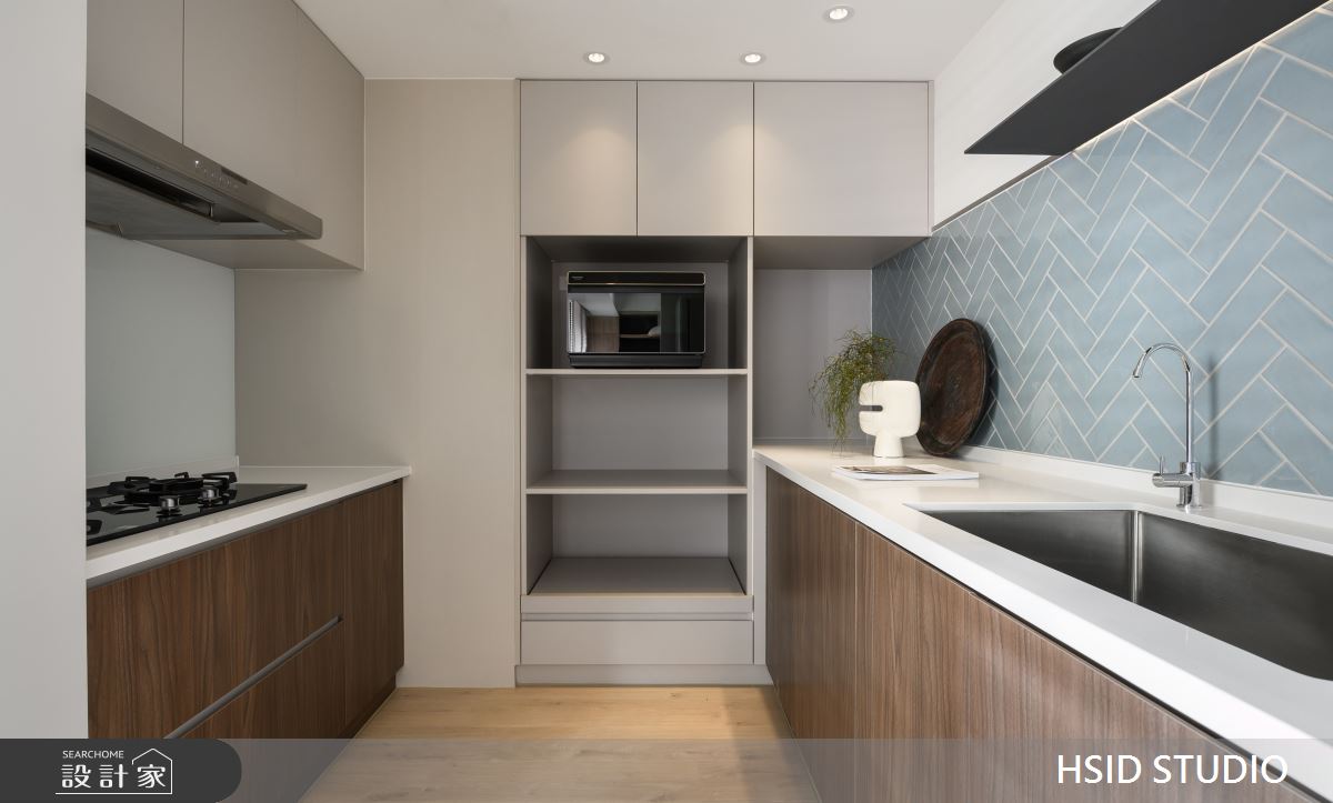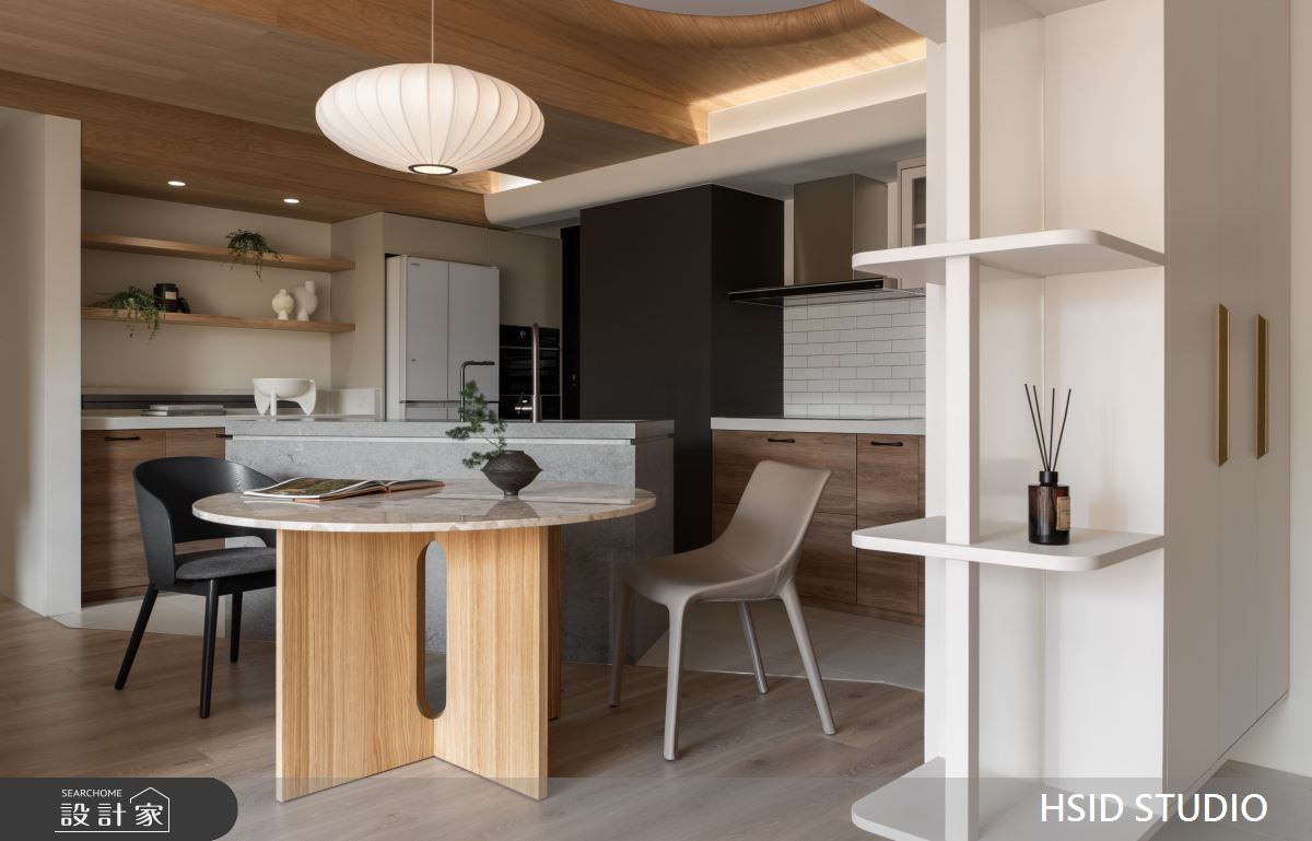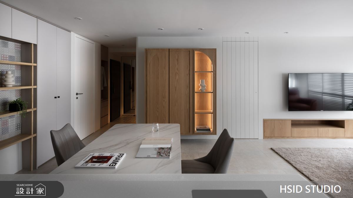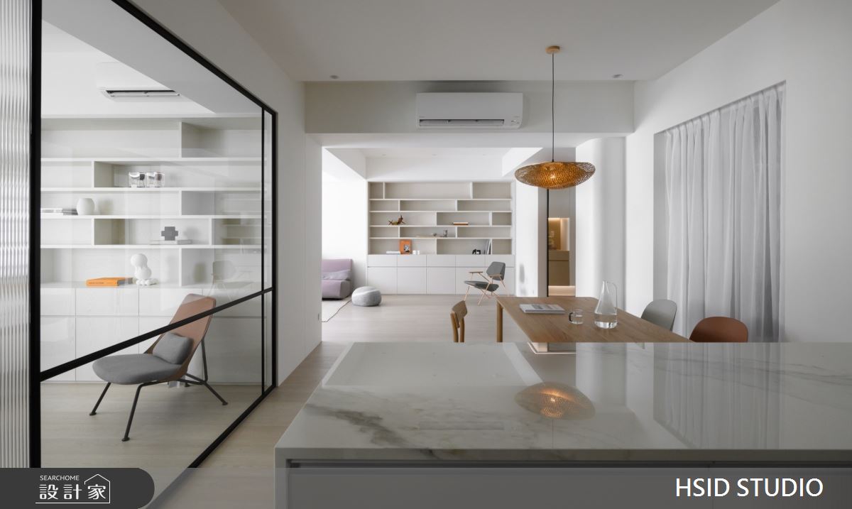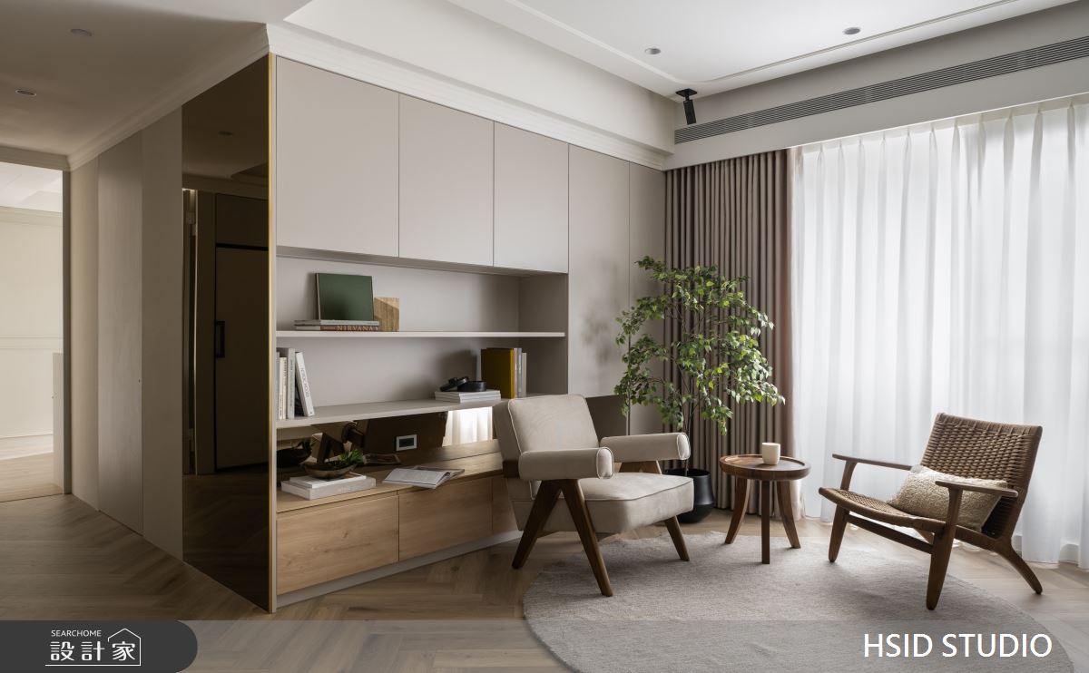來自樺設室內裝修設計的28坪侘寂輕日式住宅案,是一間單層中古屋(5~15年)的三房格局,設計師藉由建材以系統板、美耐板、磁性板、烤漆、乳膠漆、小冰柱玻璃、窯變磚、鏡面貼膜、白色鐵件、人字拼磚的搭配應用,實現一家人的理想生活。