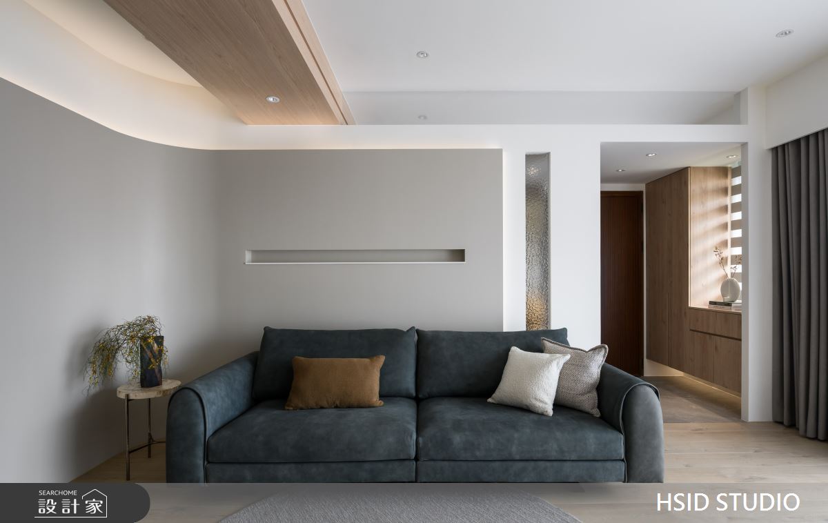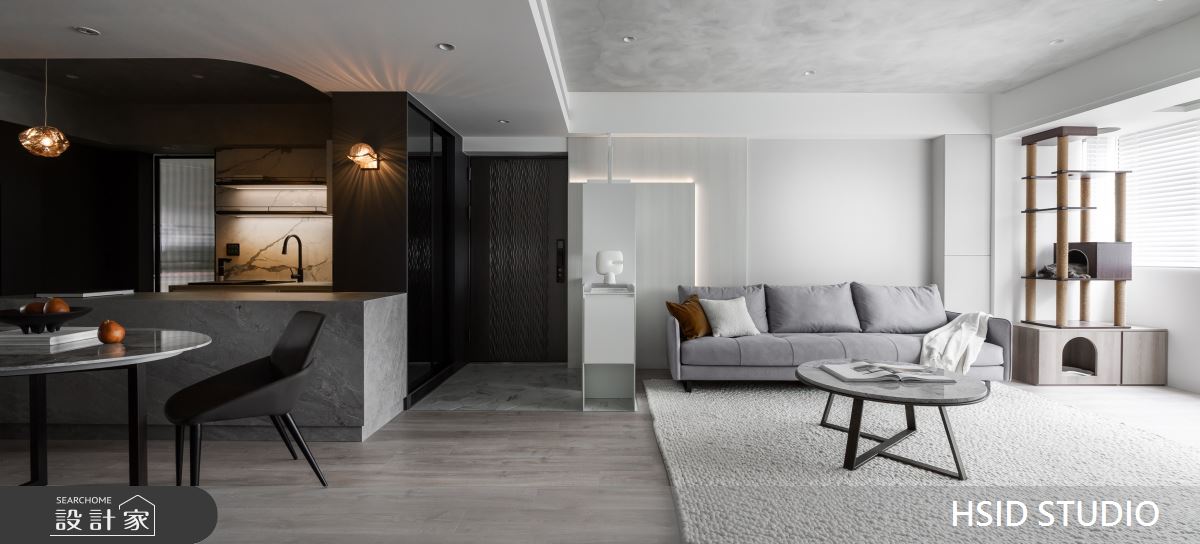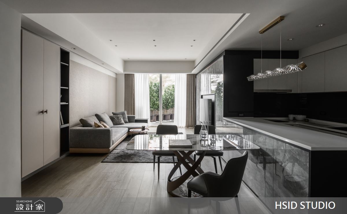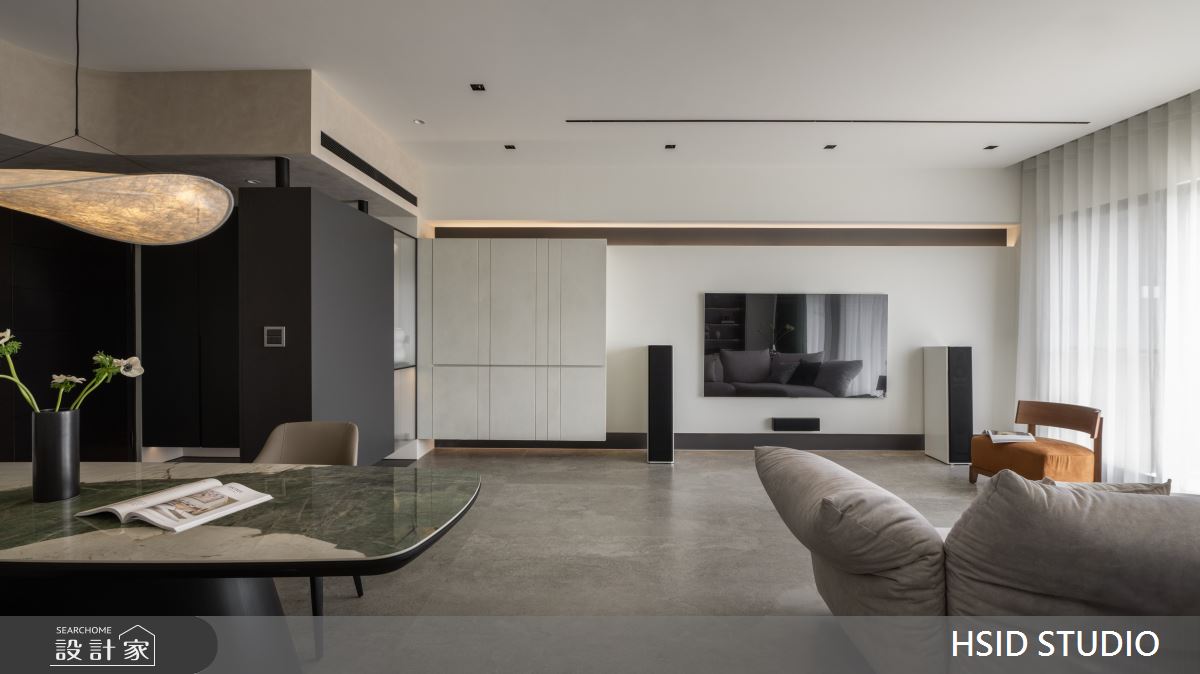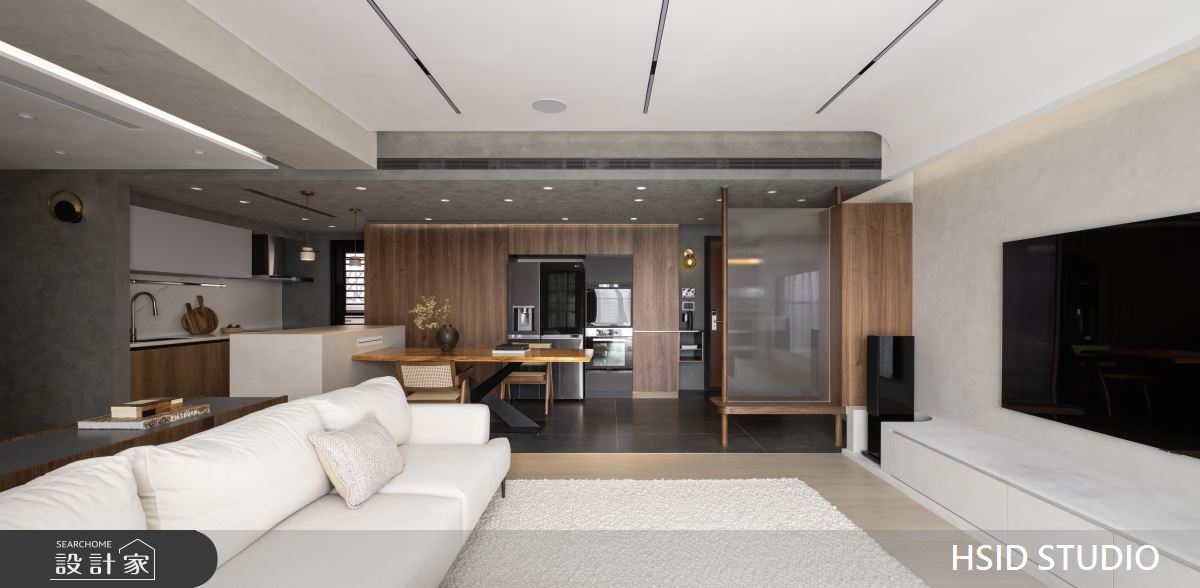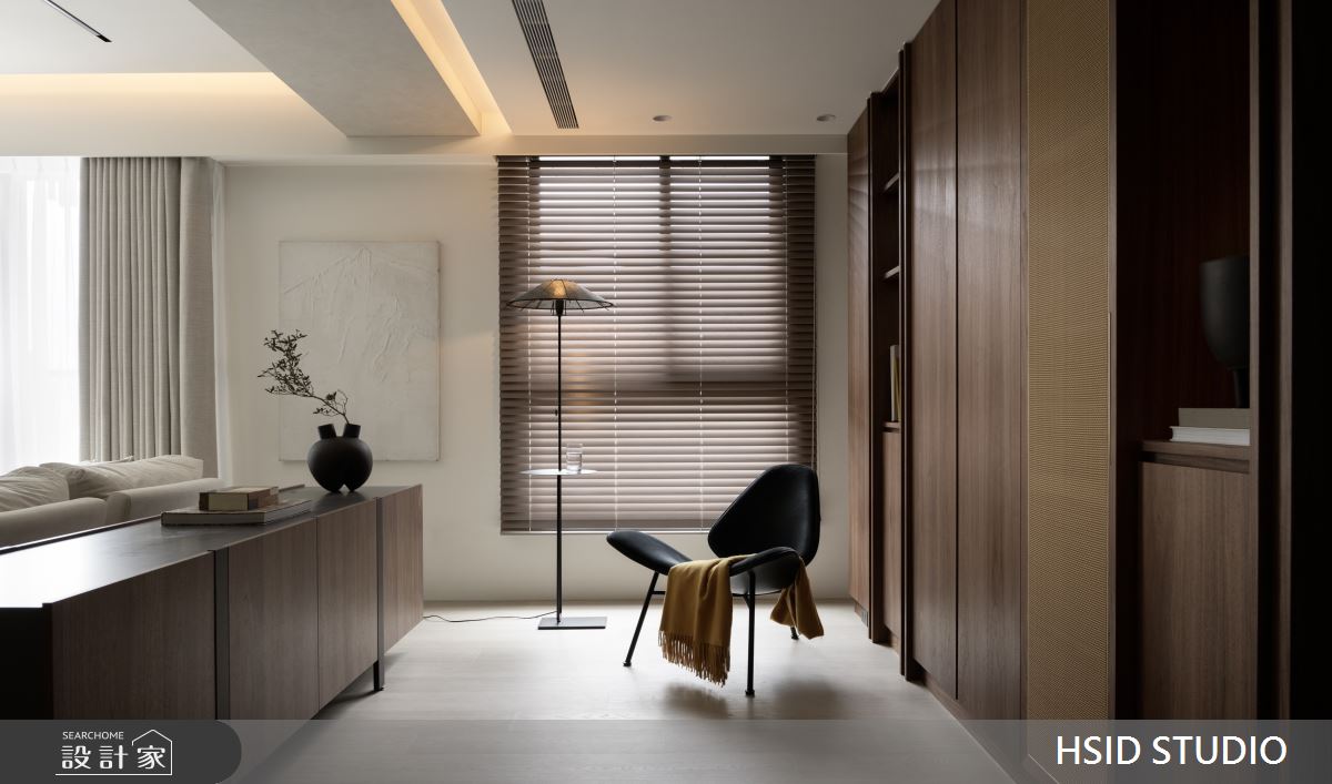 樺設室內裝修設計以鐵件、薄板、格柵、特殊塗料、玻璃、系統櫃、烤漆、蛇形簾、電動百葉的搭配應用,呈現極簡奢華風居家氛圍,將此間29坪、三房、單層、新古屋(10年以下)打造成舒適愜意的家庭空間,完成全家人的夢想之居。