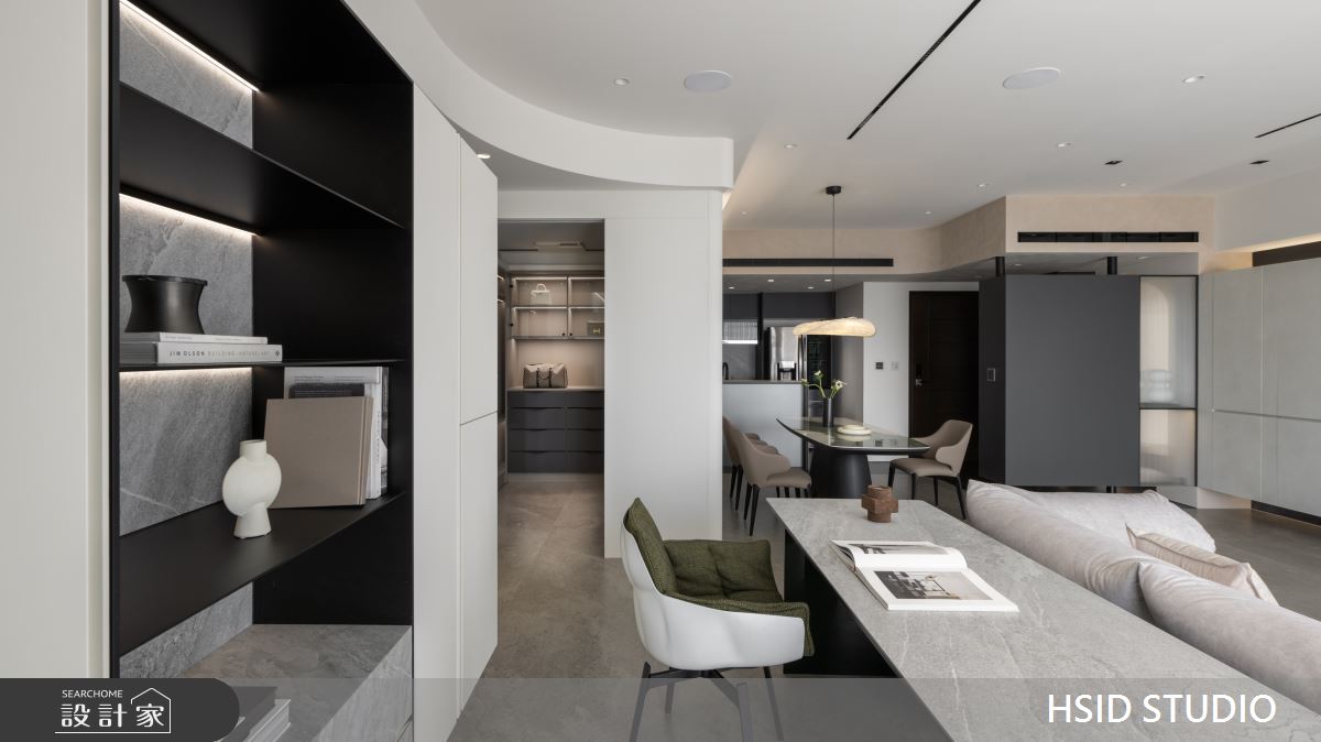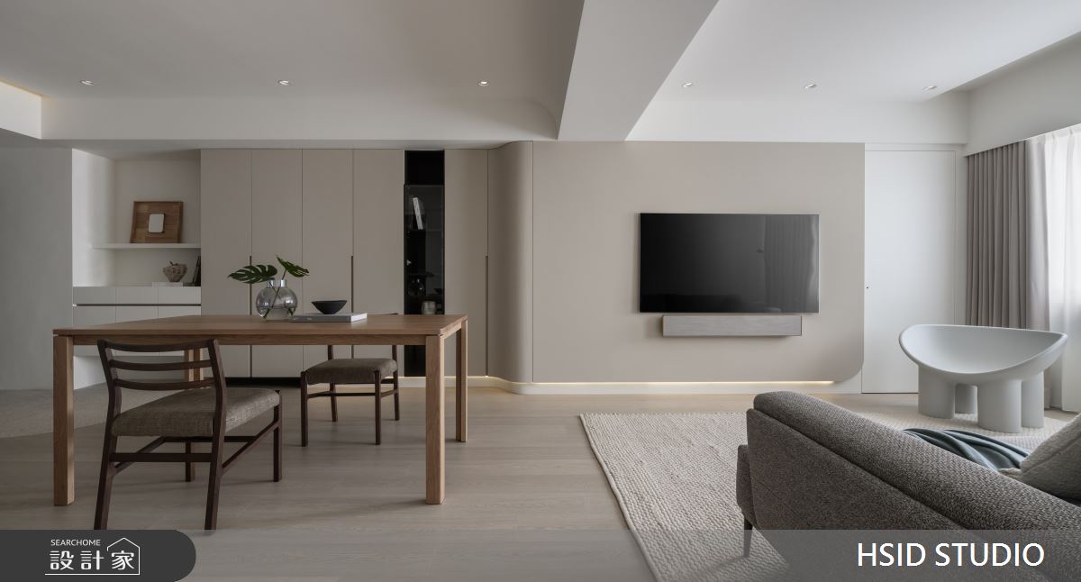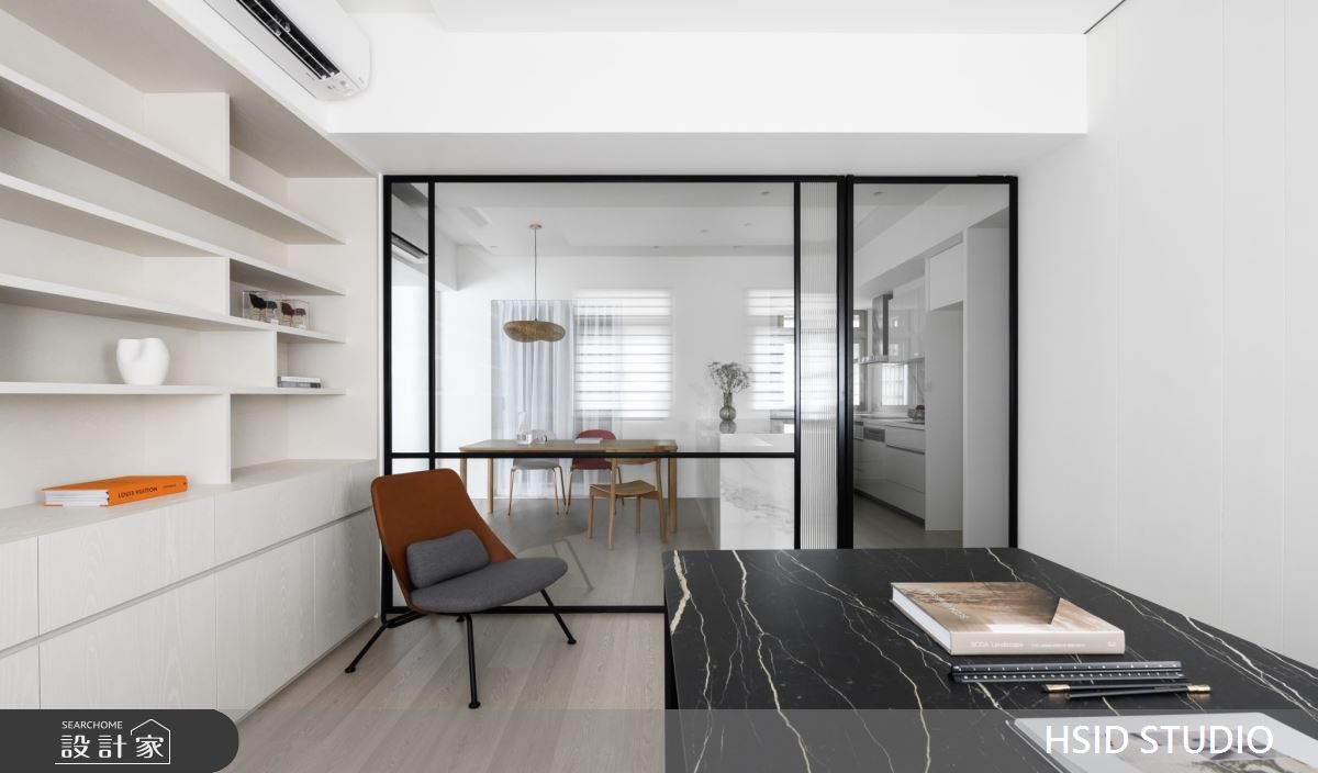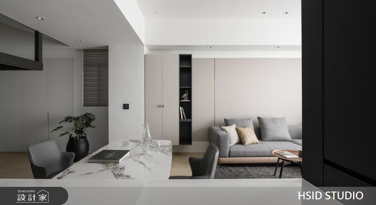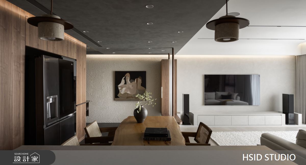 樺設室內裝修設計以鐵件、薄板、格柵、特殊塗料、玻璃、系統櫃、烤漆、蛇形簾、電動百葉的搭配應用,呈現極簡奢華風居家氛圍,將此間29坪、三房、單層、新古屋(10年以下)打造成舒適愜意的家庭空間,完成全家人的夢想之居。