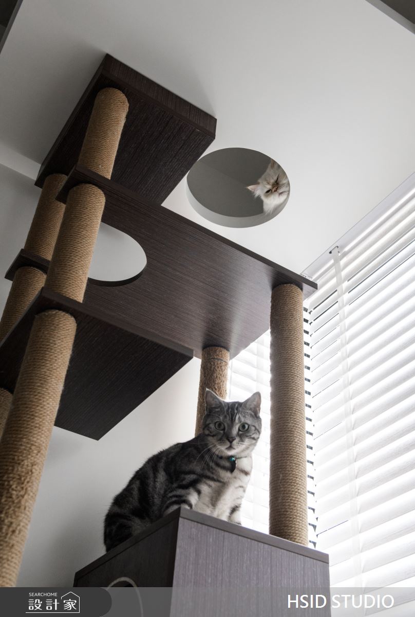 樺設室內裝修設計以乳膠漆、超耐磨木地板、鐵件、木皮、格柵的搭配應用,呈現簡約風居家氛圍,將此間37.1坪、三房、單層、老屋(31~40年)打造成舒適愜意的家庭空間,完成2位大人、1位小孩全家人的夢想之居。