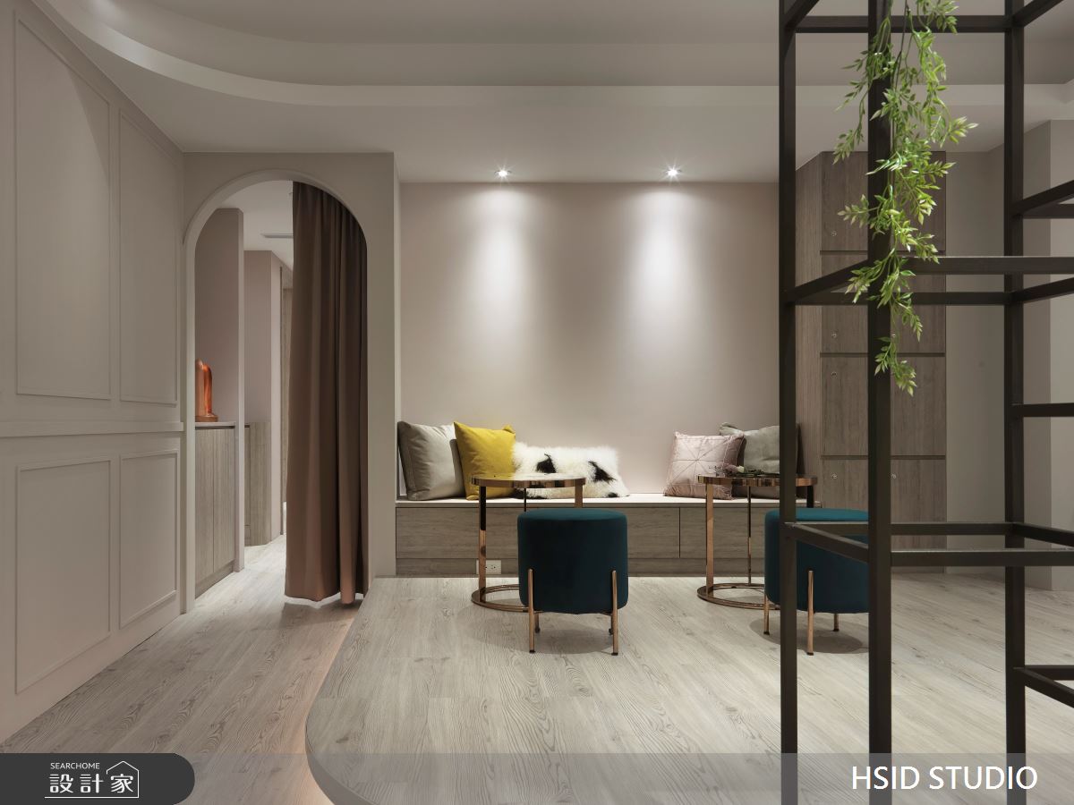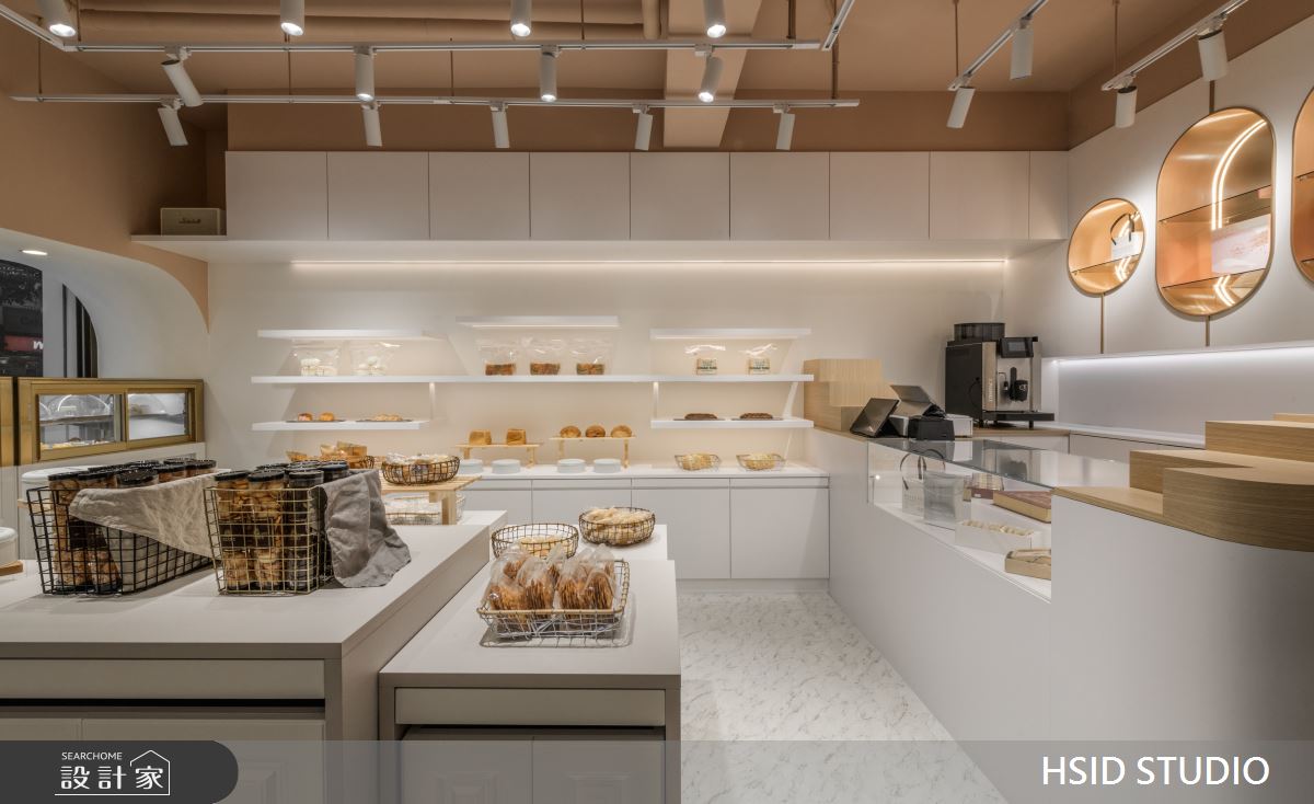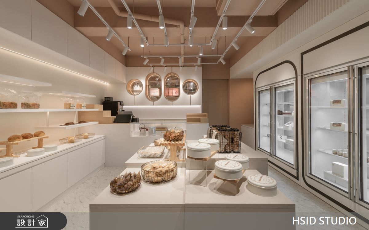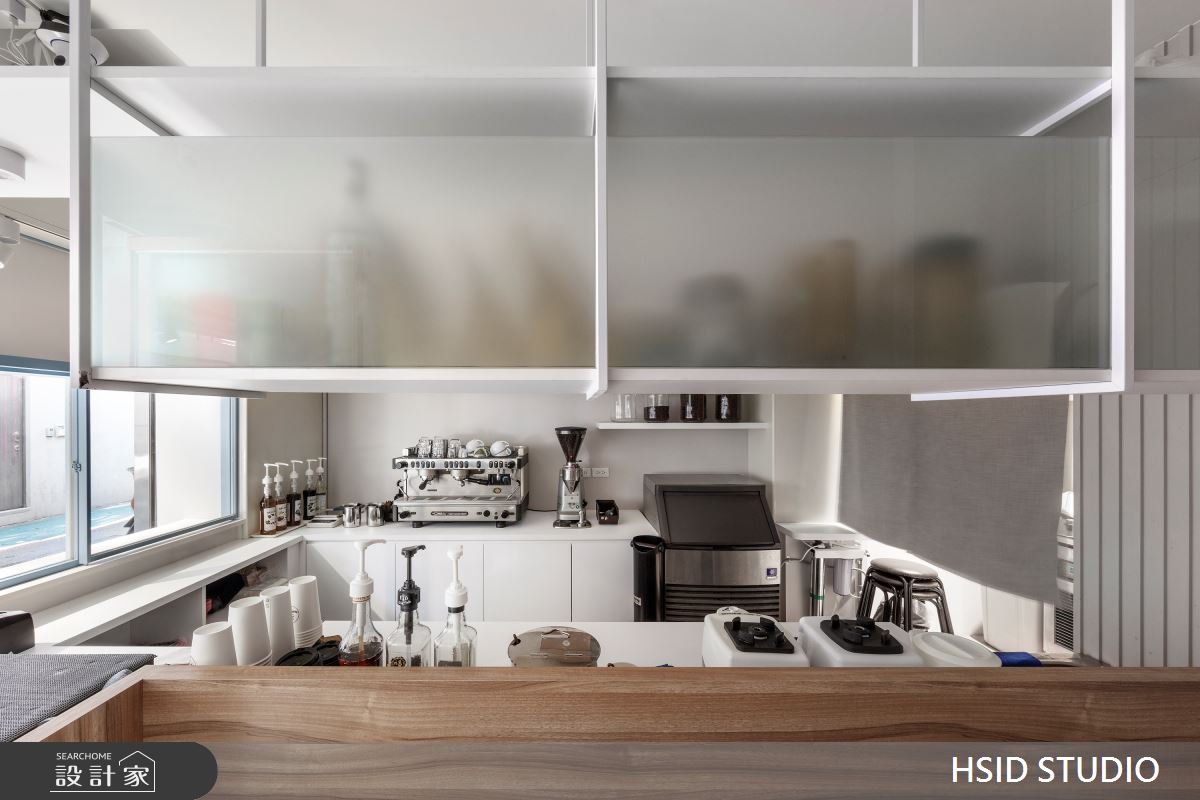 樺設室內裝修設計以波麗板、金屬美耐板、系統板、乳膠漆、金屬漆、水泥漆、晴雨漆、塑膠地板、優白玻璃、白鐵、木作底面貼鏡膜、矽利康、白色可透光壓克力的搭配應用,呈現法式現代風的風格氣息,將此間10.4坪老屋(16~30年)優雅詮釋成舒適愜意的商業空間。