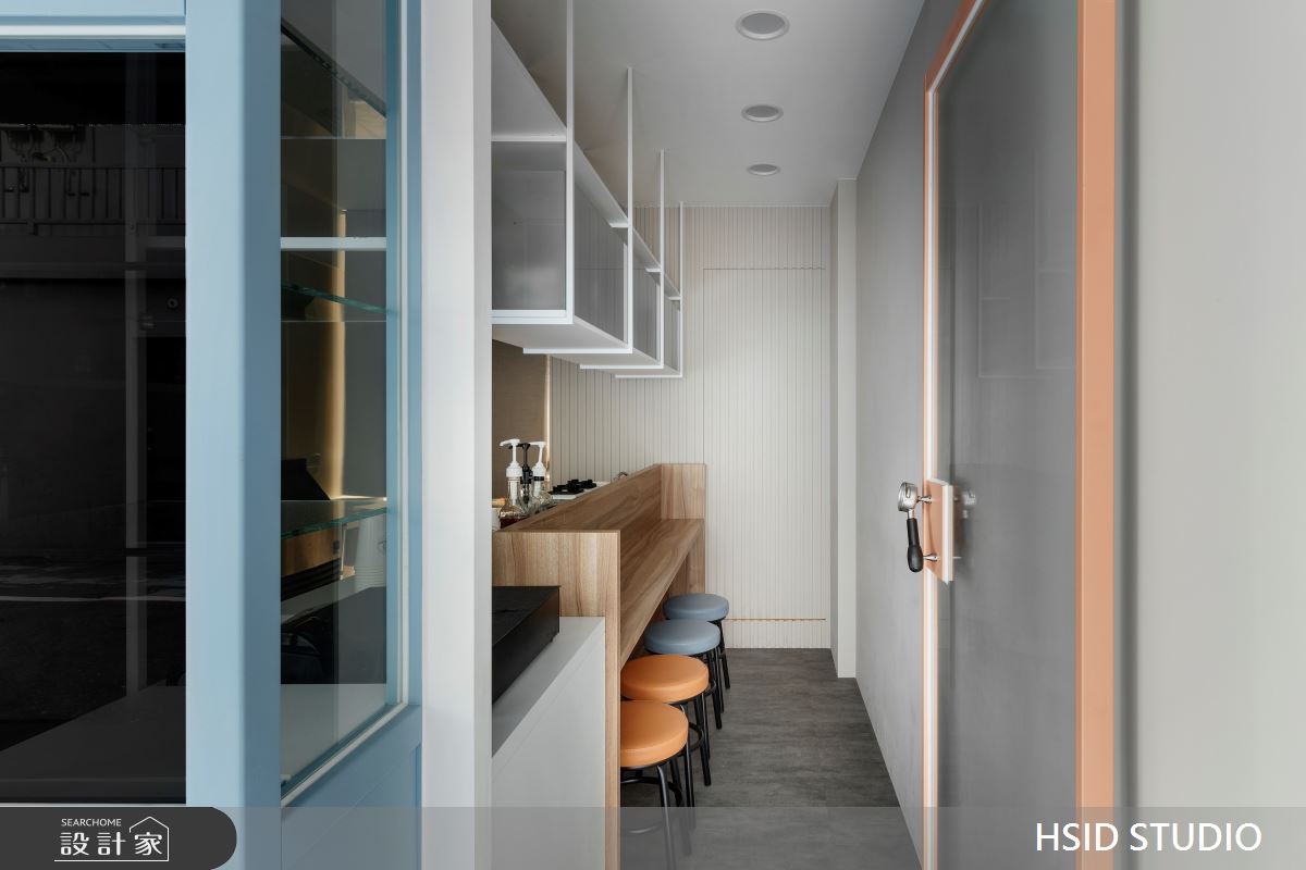 HSID STUDIO以六角磚/蜂巢磚、不鏽鋼、馬賽克的搭配應用,呈現混搭風的風格氣息,將此間8坪老屋(16~30年)優雅詮釋成舒適愜意的商業空間。