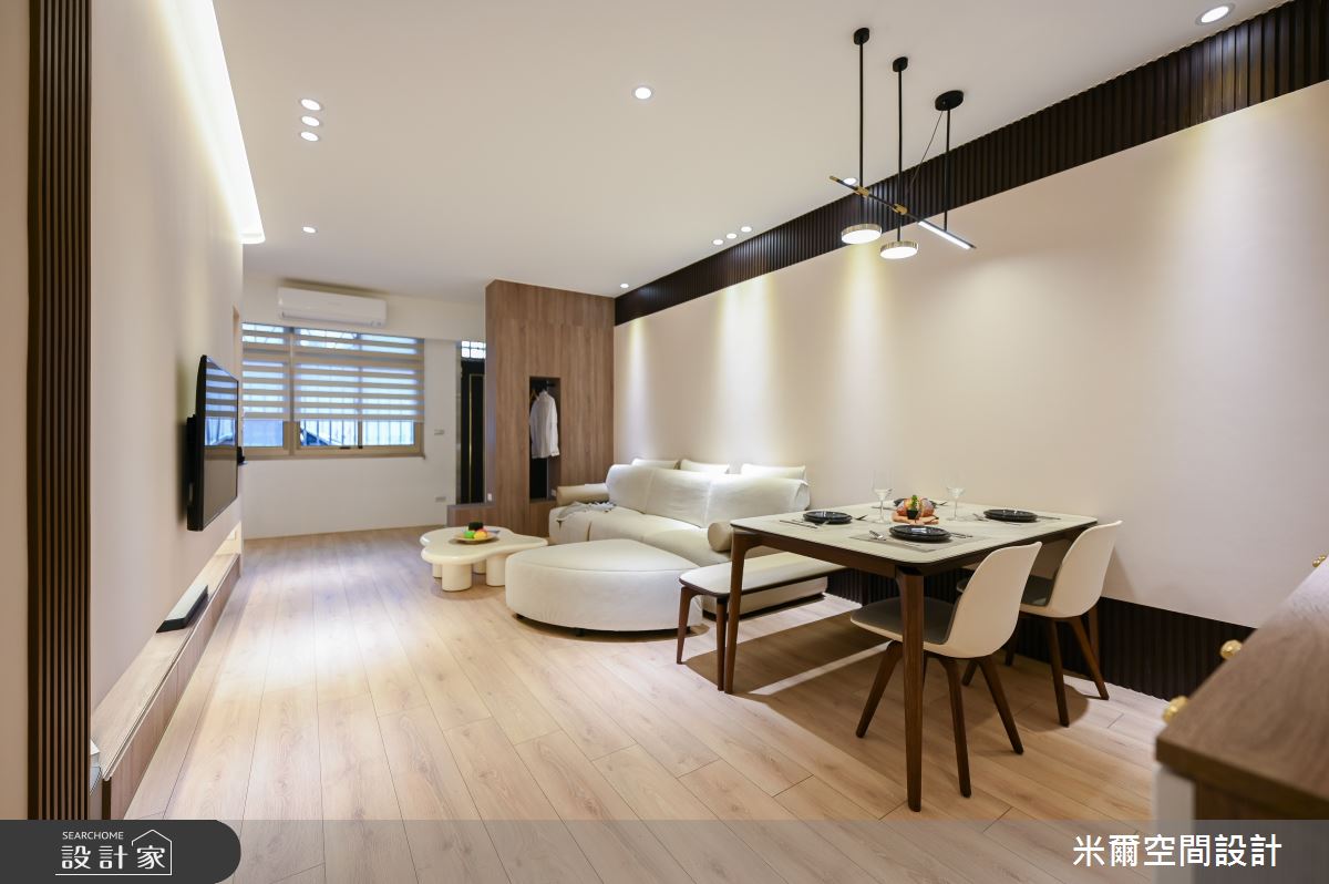 本案為米爾空間設計的25坪奶油風新成屋(5年以下)設計作品,格局為單層兩房的居住空間。全室建材的搭配,應用油漆、木地板,展現溫馨的居家氛圍。