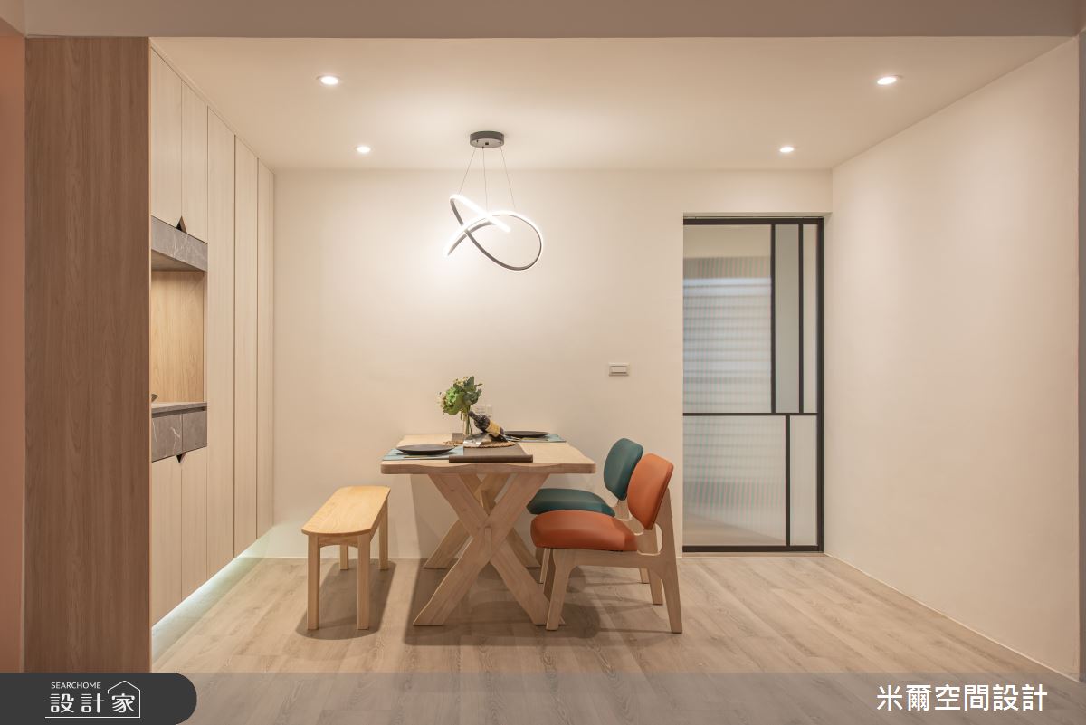 本案為米爾空間設計的28坪北歐風中古屋(5~15年)設計作品,格局為單層的居住空間。全室建材的搭配,應用木作、玻璃、油漆、超耐磨地板,展現溫馨的居家氛圍。