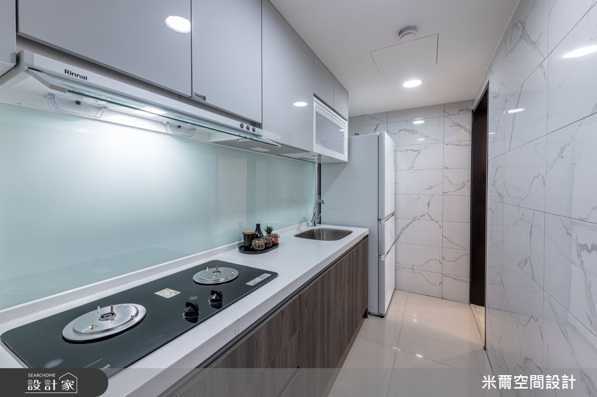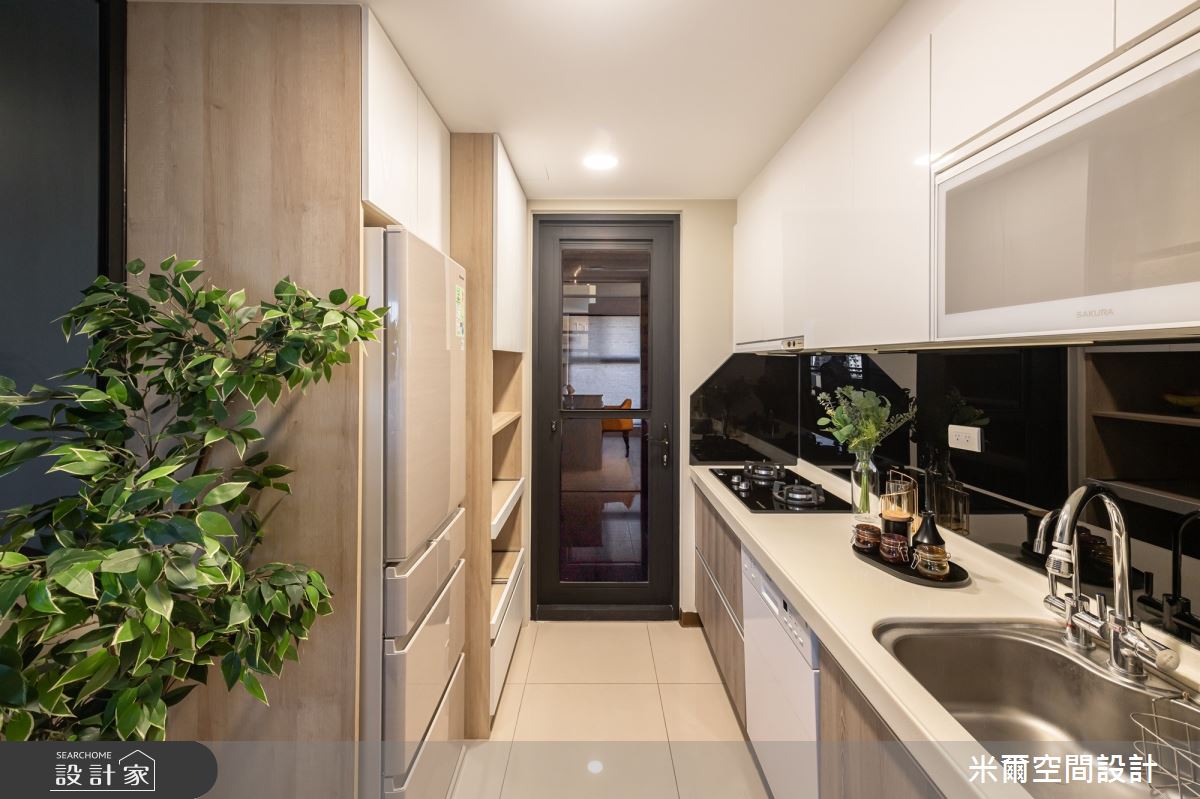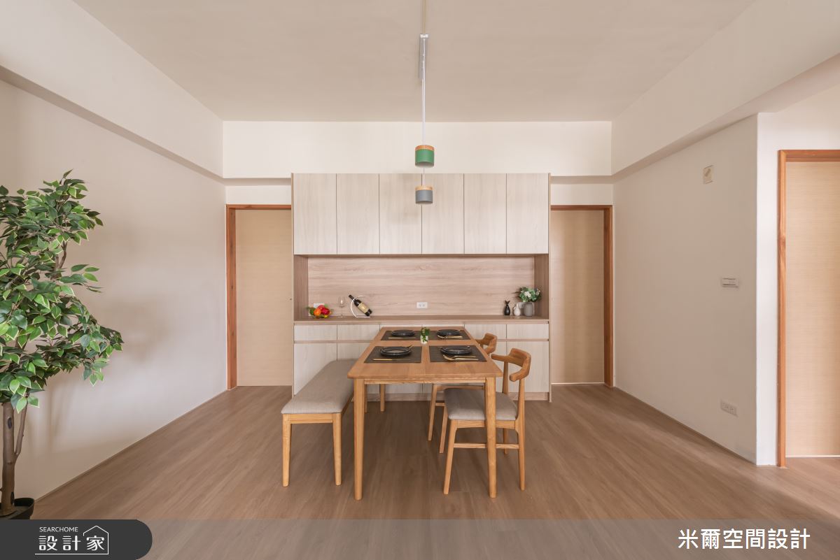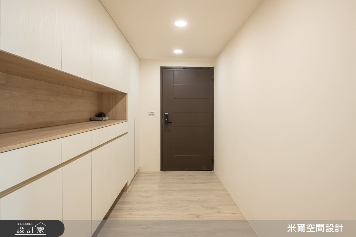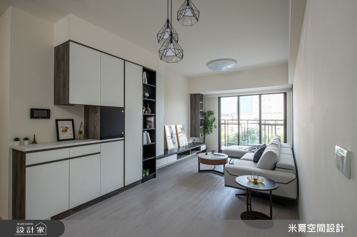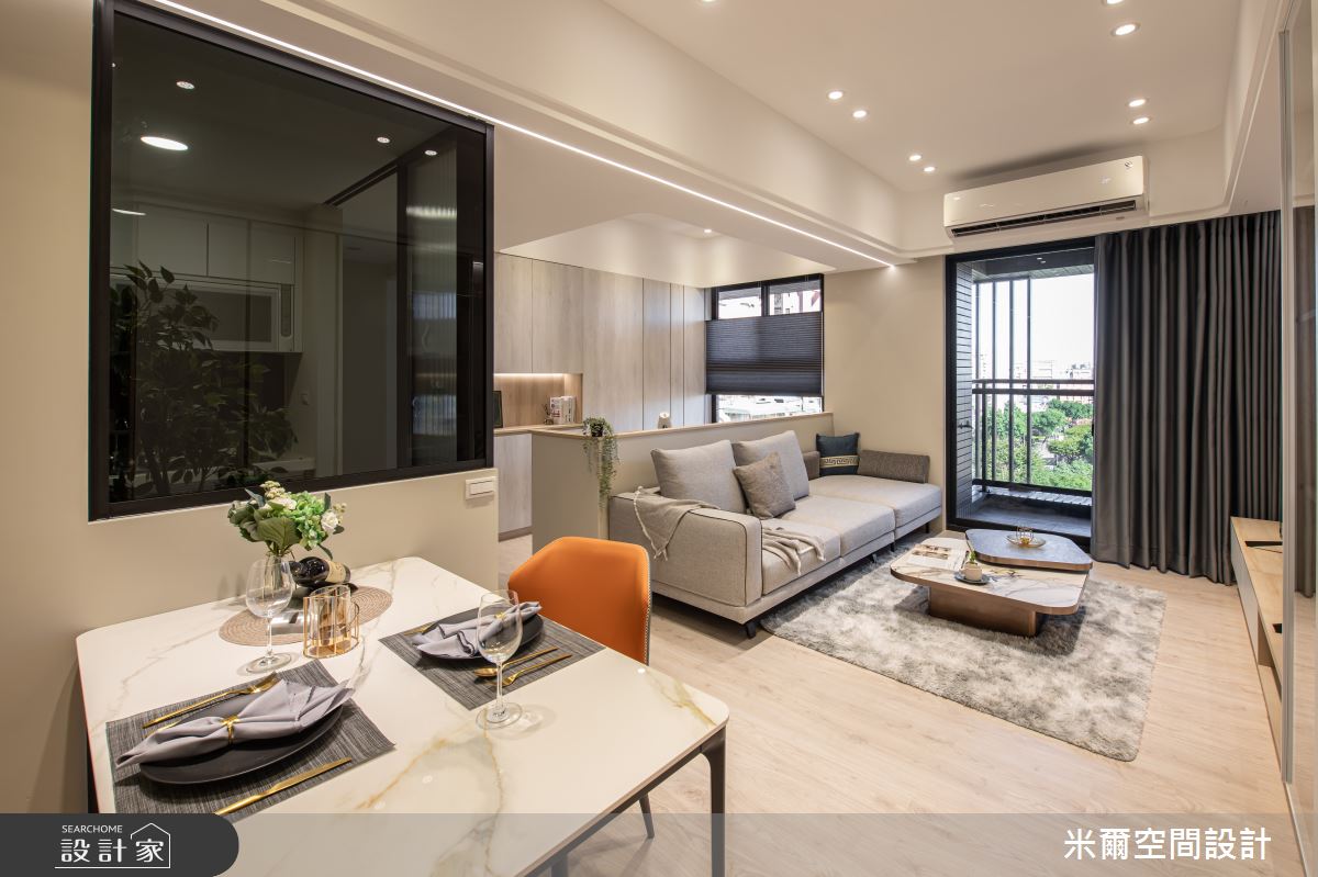 米爾空間設計以木作、玻璃、油漆、鋁件、spc地板的搭配應用,呈現現代風居家氛圍,將此間25坪、單層、新成屋(5年以下)打造成舒適愜意的家庭空間,完成全家人的夢想之居。