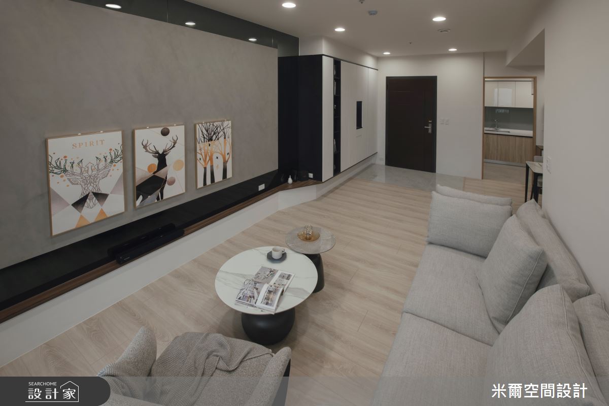 本案為米爾空間設計的25坪現代風新成屋(5年以下)設計作品,格局為單層的居住空間。全室建材的搭配,應用木作、玻璃、油漆,展現溫馨的居家氛圍。