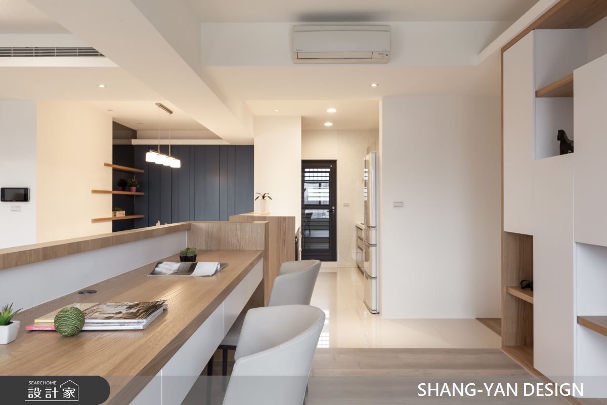 來自SHANG-YAN DESIGN的37坪北歐風住宅案,屋主一家人共有2位大人、1位小孩,是一間單層新成屋(5年以下)的三房格局,設計師藉由建材以乳膠漆、超耐磨木地板、木地板、鐵件、木作貼皮、烤漆、磁磚、人造石、軌道燈、噴漆的搭配應用,實現一家人的理想生活。