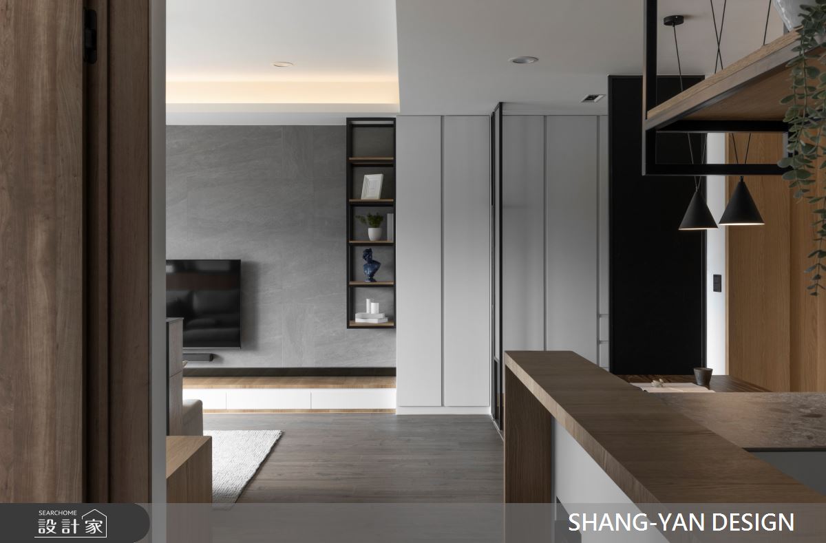 由SHANG-YAN DESIGN精心規劃的30坪三房住宅空間,家庭成員一共有2位大人、1位小孩。因應屋主需求,設計師運用北歐風作為主軸,搭配乳膠漆、超耐磨木地板、木地板、鐵件、木作貼皮、烤漆、大理石、木百葉、繃布、線板,打造全家人的夢想家居。