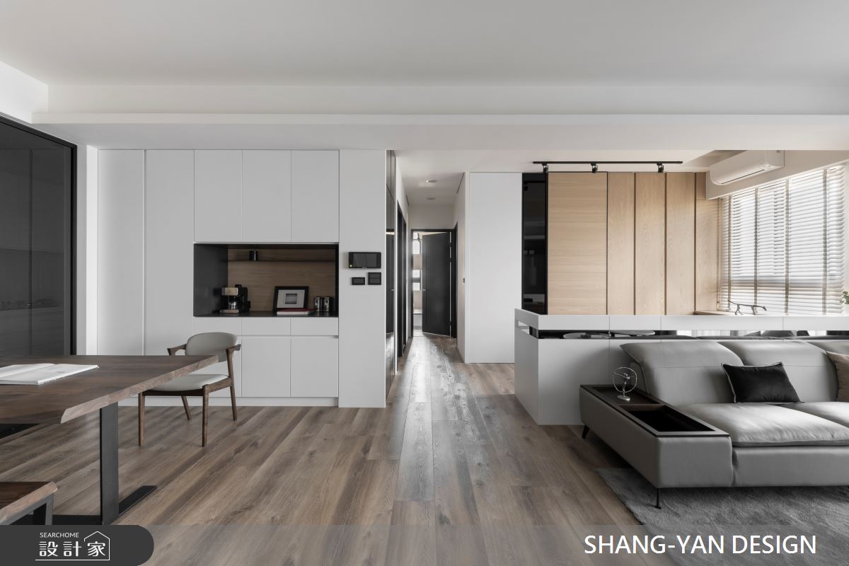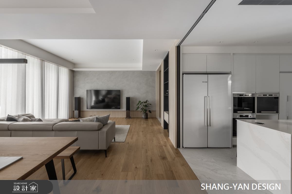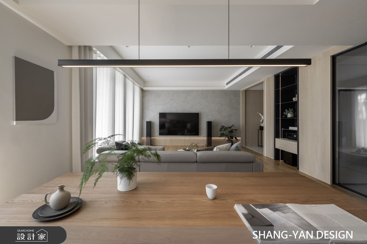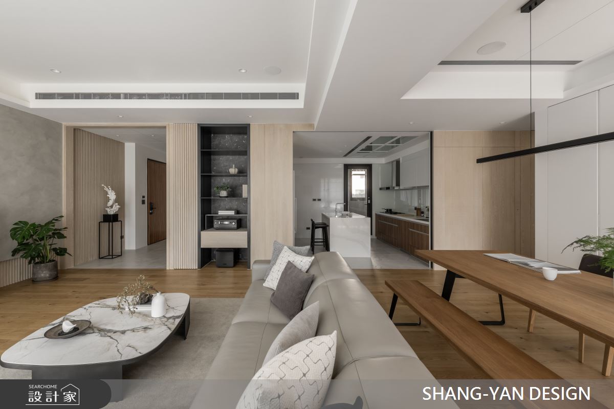 來自上硯建築空間設計的75坪現代風住宅案,屋主一家人共有2位大人,是一間單層新成屋(5年以下)的四房格局,設計師藉由建材以實木、噴漆、進口廚具、實木地板、鐵件、特殊漆的搭配應用,實現一家人的理想生活。