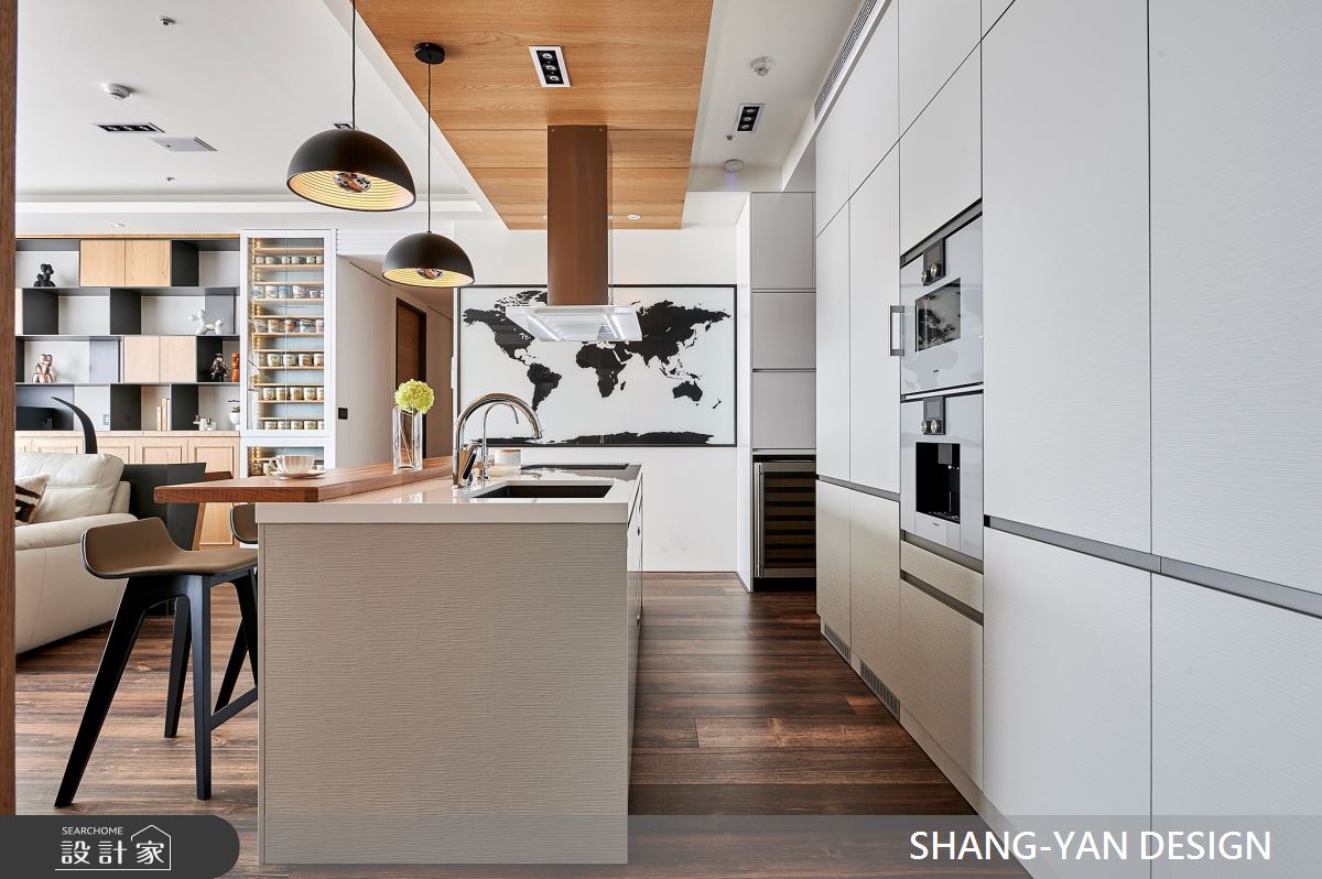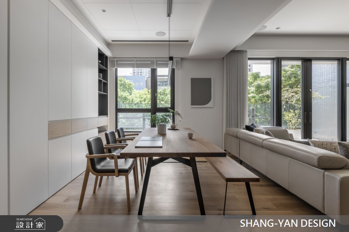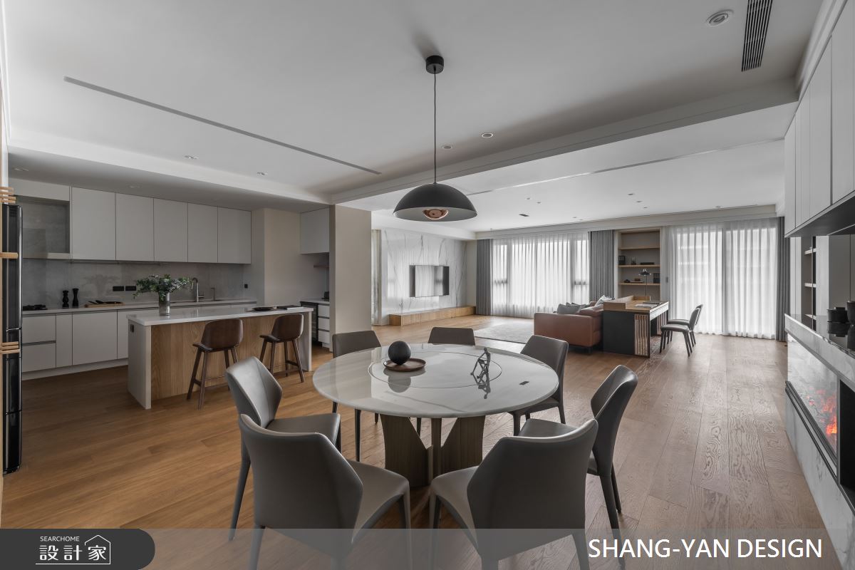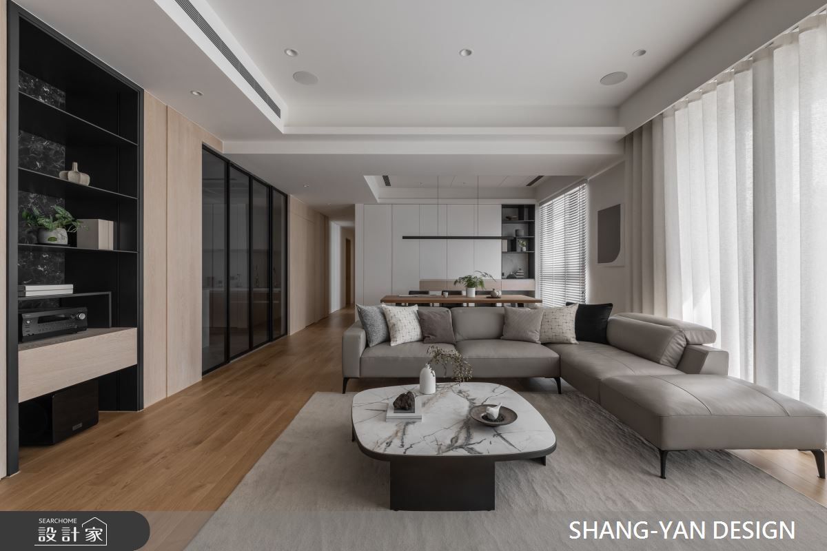 來自上硯建築空間設計的75坪現代風住宅案,屋主一家人共有2位大人,是一間單層新成屋(5年以下)的四房格局,設計師藉由建材以實木、噴漆、進口廚具、實木地板、鐵件、特殊漆的搭配應用,實現一家人的理想生活。