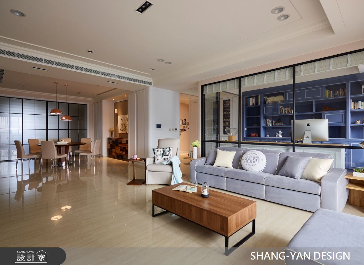 由SHANG-YAN DESIGN精心規劃的41坪四房住宅空間,家庭成員一共有2位大人。因應屋主需求,設計師運用北歐風作為主軸,搭配乳膠漆、超耐磨木地板、木地板、鐵件、木作貼皮、烤漆、大理石、磁磚、人造石、石材、線板、噴漆,打造全家人的夢想家居。