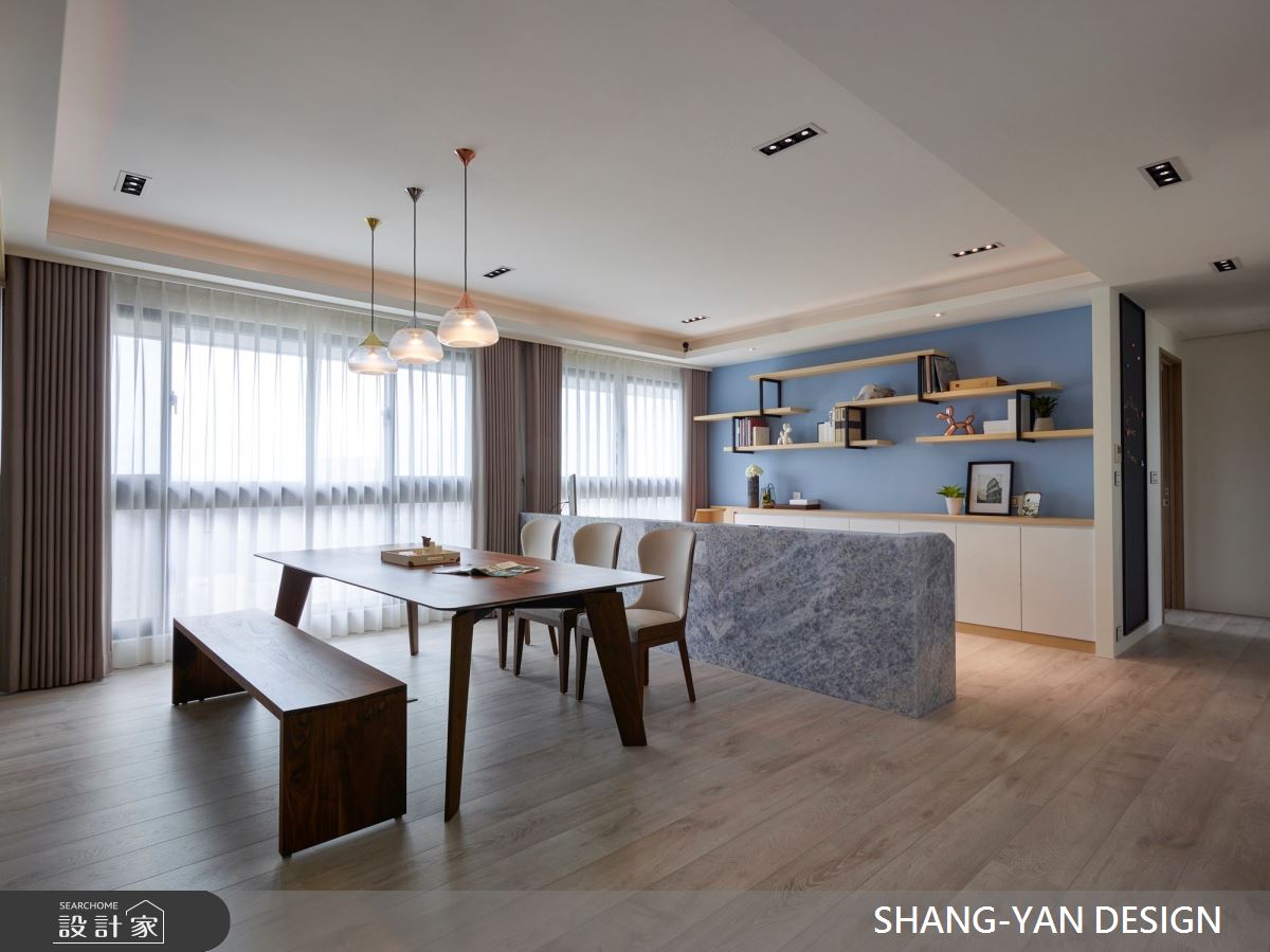 由SHANG-YAN DESIGN精心規劃的41坪四房住宅空間,家庭成員一共有2位大人。因應屋主需求,設計師運用北歐風作為主軸,搭配乳膠漆、超耐磨木地板、木地板、鐵件、木作貼皮、烤漆、大理石、磁磚、人造石、石材、線板、噴漆,打造全家人的夢想家居。