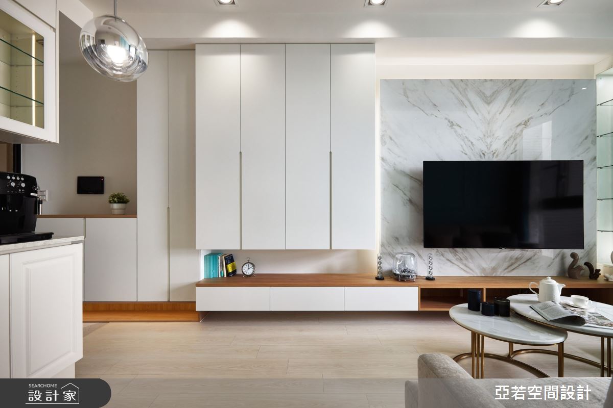 本案為亞若設計有限公司的20坪美式風新成屋(5年以下)設計作品,格局為單層兩房的居住空間。全室建材的搭配,應用烤漆木作、超耐磨木地板、系統櫃、大理石、壁紙、實木皮、木作,展現溫馨的居家氛圍。