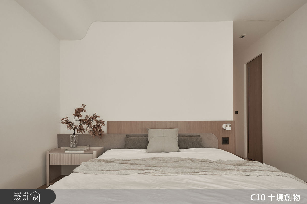 C10 十境創物以超耐磨木地板、不鏽鋼鐵件、班傑明摩爾壓克力塗料、橡木染色木皮的搭配應用,呈現奶油風居家氛圍,將此間22坪、一房、樓中樓、新成屋(5年以下)打造成舒適愜意的家庭空間,完成2位大人全家人的夢想之居。