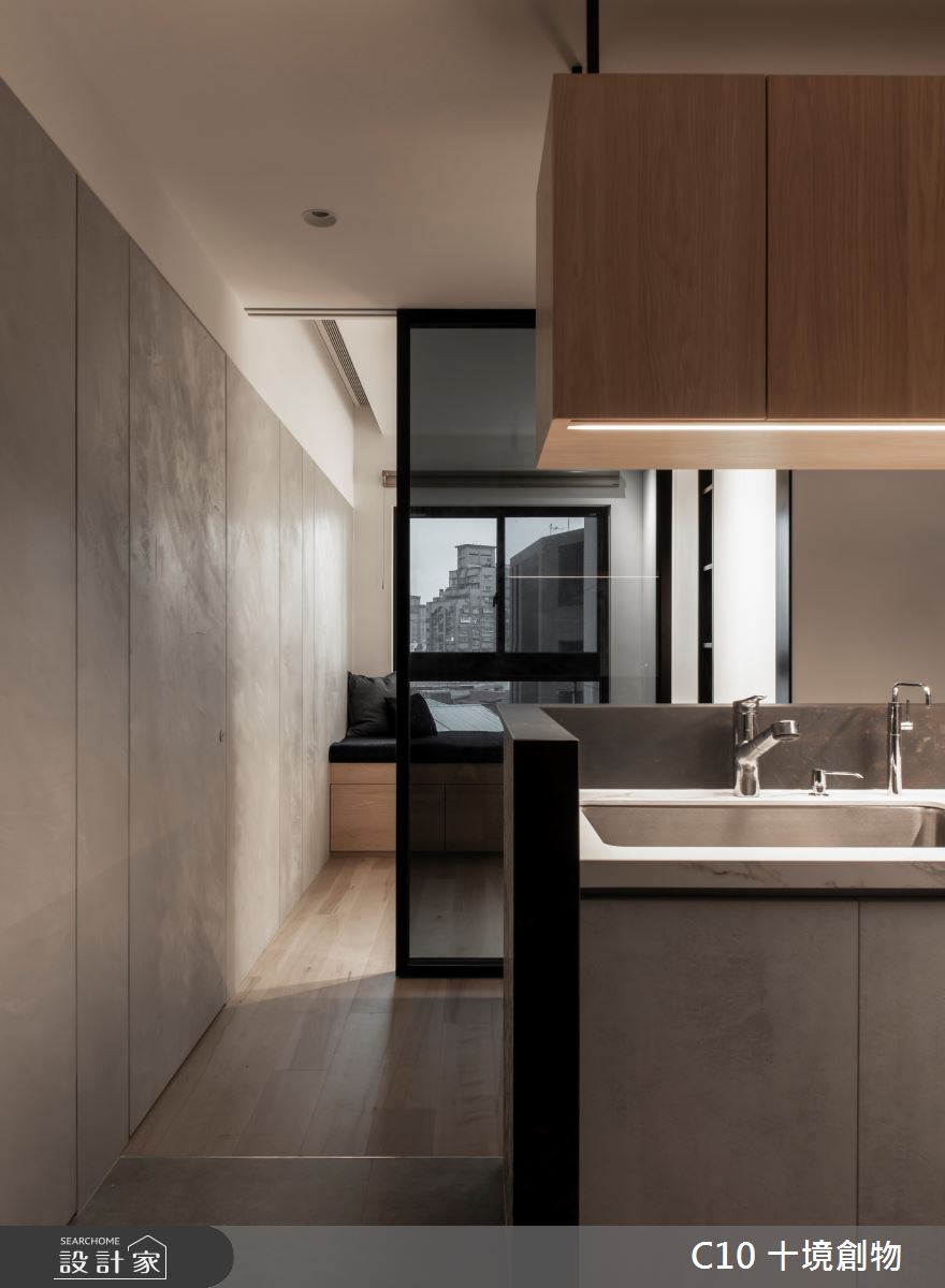 來自C10 十境創物的24坪現代風住宅案,屋主一家人共有2位大人,是一間單層新成屋(5年以下)的兩房格局,設計師藉由建材以義大利薄磚、大理石、礦物塗料、橡木木皮、木地板、美耐板、橡木、微笑森林、塗裝的搭配應用,實現一家人的理想生活。
