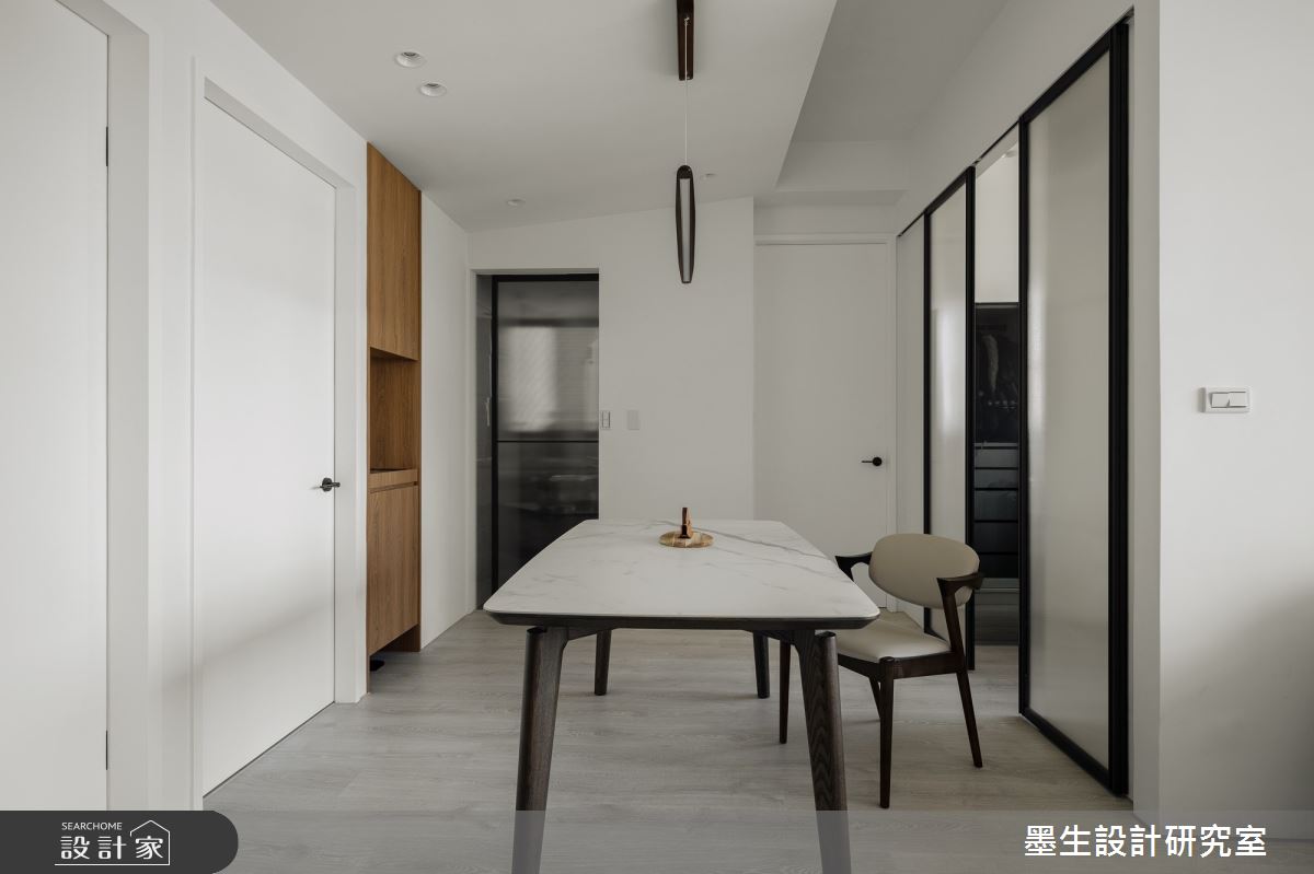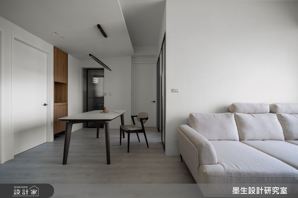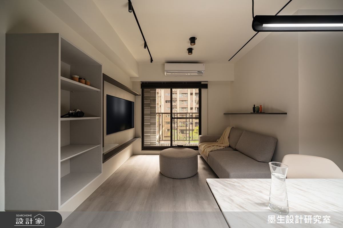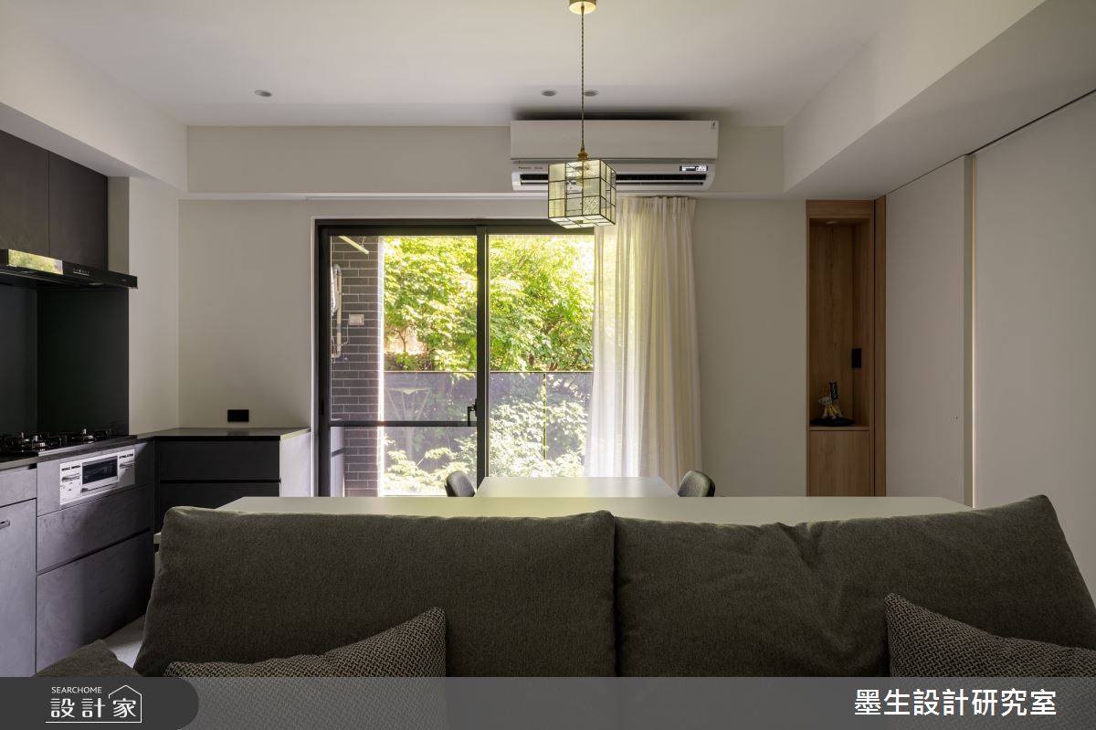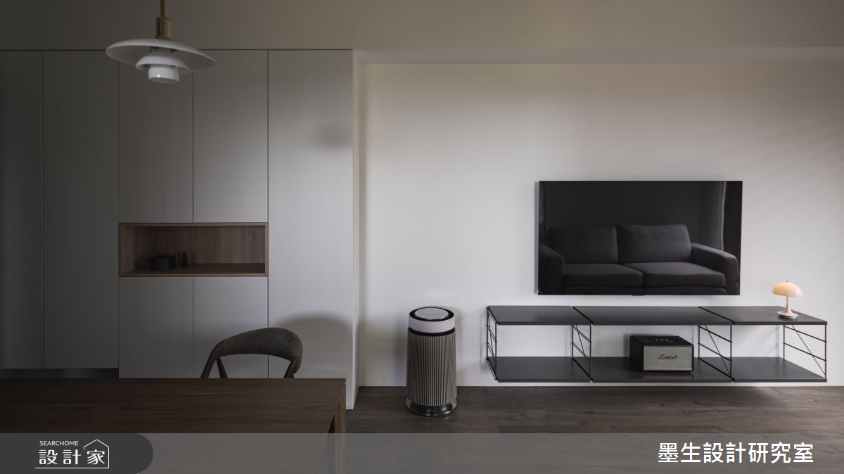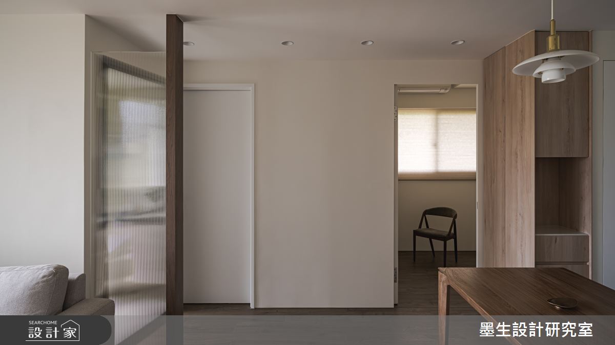 由墨生設計研究室精心規劃的13坪兩房住宅空間,家庭成員一共有2位大人。因應屋主需求,設計師運用日式無印風作為主軸,搭配長虹玻璃、系統櫃、超耐磨木地板、鐵件,打造全家人的夢想家居。