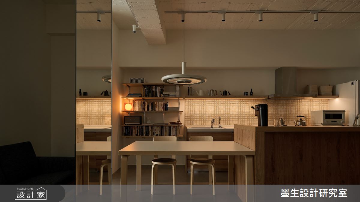 本案為墨生設計研究室的21坪Japandi風新成屋(5年以下)設計作品,格局為單層兩房的居住空間。居住成員包含2位大人。全室建材的搭配,應用磁磚、鏡子、玻璃、鐵件、系統櫃、人造石、ikea,展現溫馨的居家氛圍。