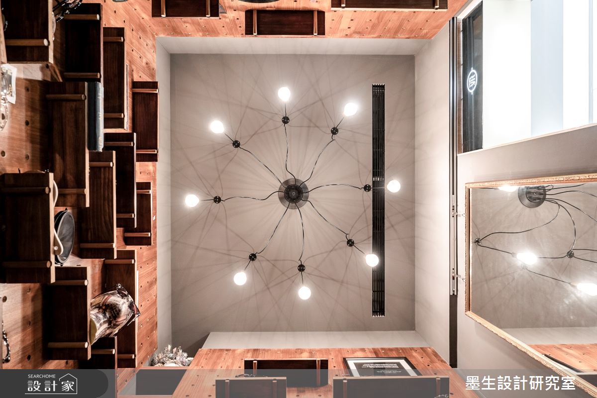 墨生設計研究室以鐵件、特殊塗料、石頭漆、實木夾板、玻璃磚、自平泥、南方松、燈帶、長虹玻璃、明鏡、軌道燈的搭配應用,呈現工業風的風格氣息,將此間50坪老屋(50年以上)優雅詮釋成舒適愜意的商業空間。
