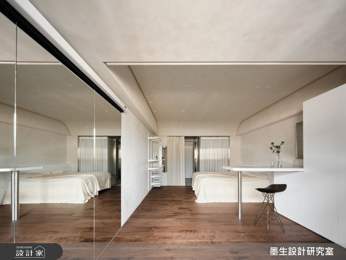 本案為墨生設計研究室的15坪日式無印風新成屋(5年以下)設計作品,格局為單層一房的居住空間。居住成員包含2位大人。全室建材的搭配,應用乳膠漆、超耐磨木地板、PVC地板、鐵件、木作貼皮、系統板材、噴漆,展現溫馨的居家氛圍。