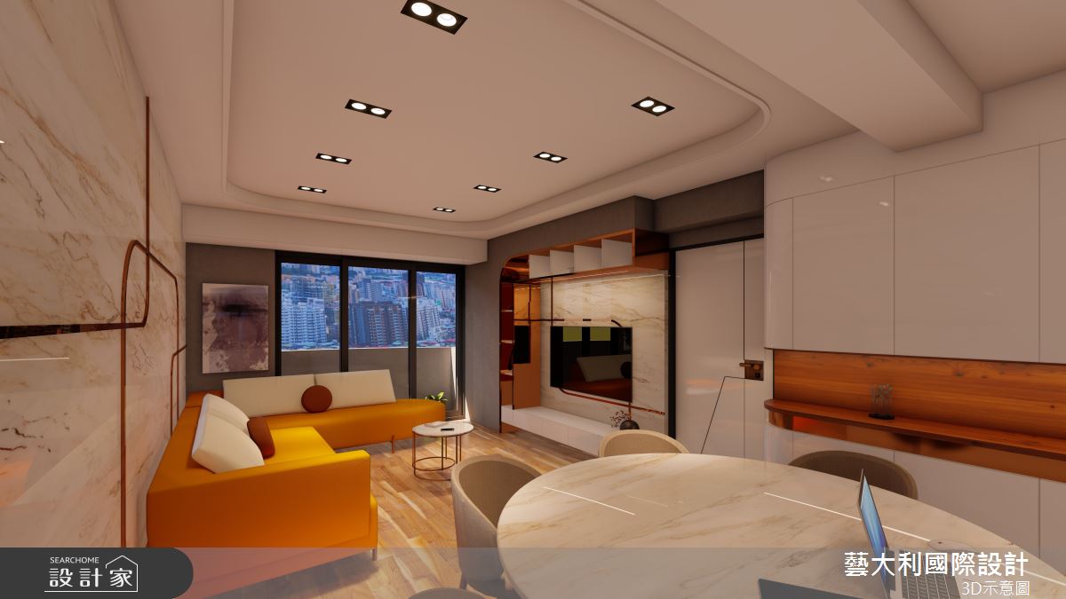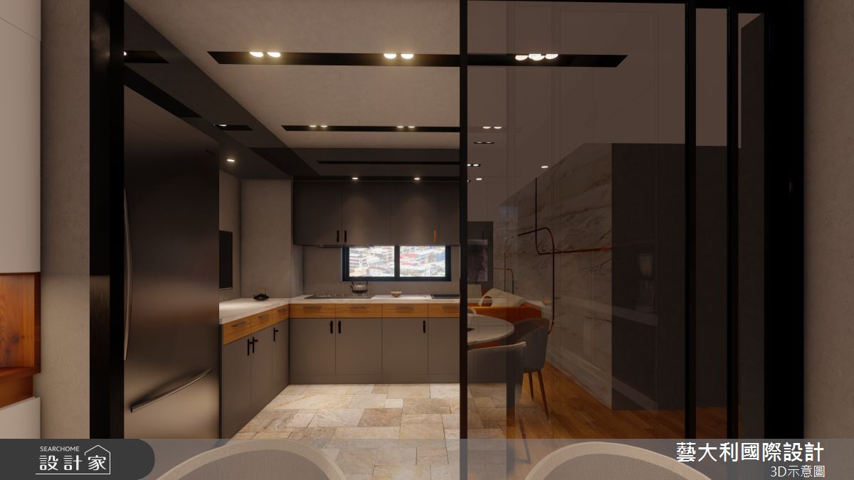 由藝大利國際設計精心規劃的24坪兩房住宅空間,家庭成員一共有2位大人。因應屋主需求,設計師運用奢華風作為主軸,搭配水泥漆、超耐磨木地板、鐵件、茶玻、木作貼皮、烤漆、系統板材、磁磚、人造石,打造全家人的夢想家居。