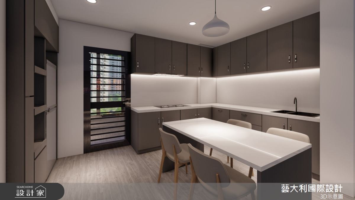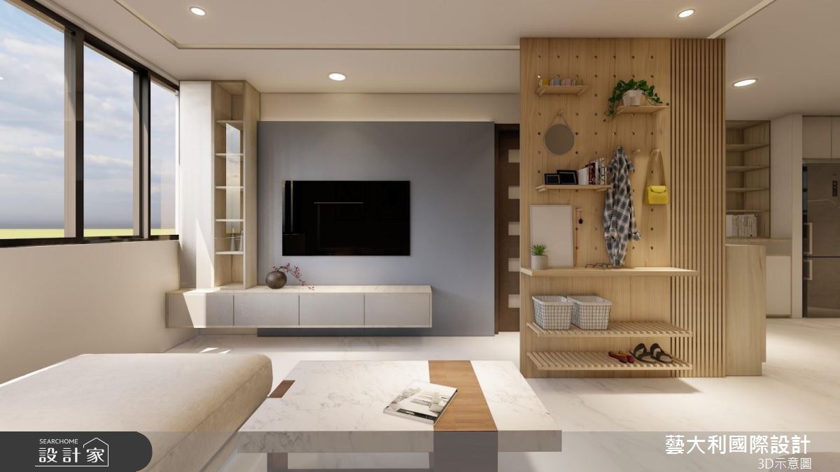 由藝大利國際設計精心規劃的25坪三房住宅空間,家庭成員一共有2位大人。因應屋主需求,設計師運用現代風作為主軸,搭配水泥漆、超耐磨木地板、木作貼皮、系統板材、大理石、磁磚、人造石,打造全家人的夢想家居。