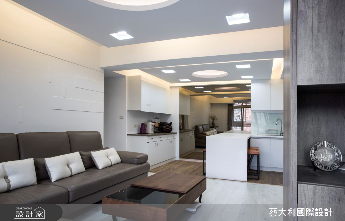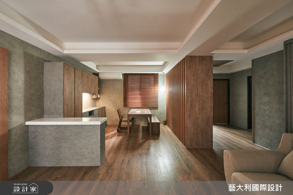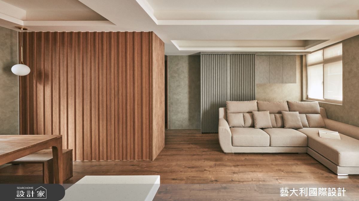 藝大利國際設計以藝術漆、超耐磨木地板、木作貼皮、系統板材、磁磚、人造石的搭配應用,呈現現代簡約風居家氛圍,將此間26坪、兩房、單層、老屋(31~40年)打造成舒適愜意的家庭空間,完成2位大人全家人的夢想之居。