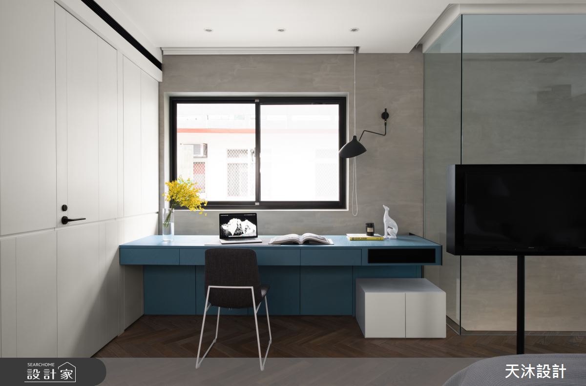由天沐設計精心規劃的24坪兩房住宅空間,家庭成員一共有2位大人、1位小孩。因應屋主需求,設計師運用現代風作為主軸,搭配乳膠漆、海島型木地板、鐵件、烤漆、磁磚、人造石、檜木、玻璃,打造全家人的夢想家居。