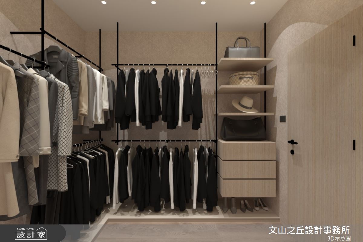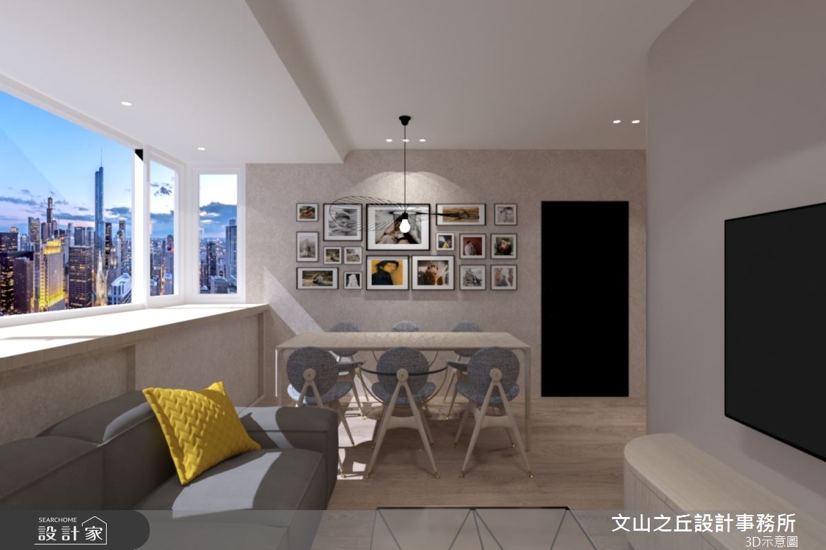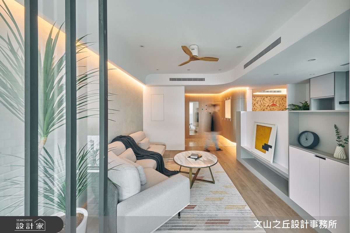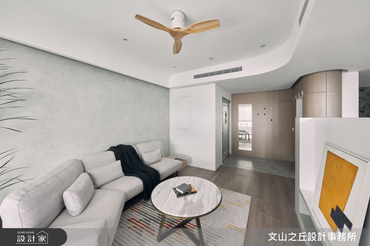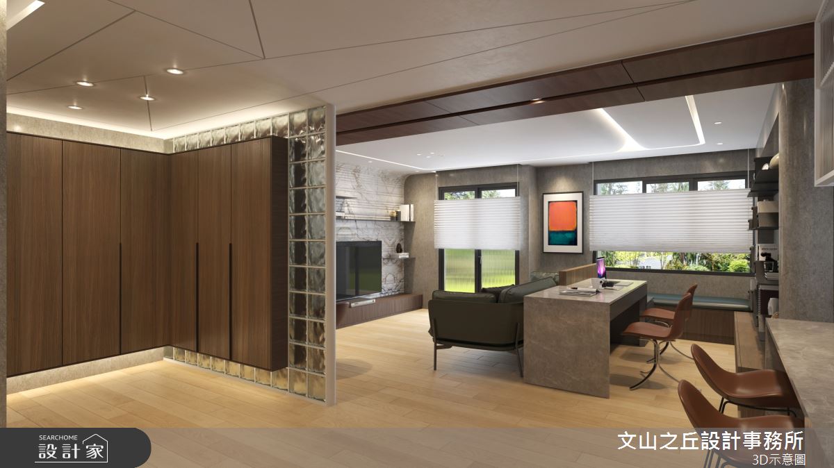 由文山之丘設計事務所精心規劃的35坪三房住宅空間,家庭成員一共有2位大人、2位小孩。因應屋主需求,設計師運用現代風作為主軸,搭配乳膠漆、海島型木地板、石英磚/拋光石英磚、鐵件、鍍鈦金屬、木作貼皮、系統板材、大理石、水泥/水泥粉光、人造石、軌道燈,打造全家人的夢想家居。