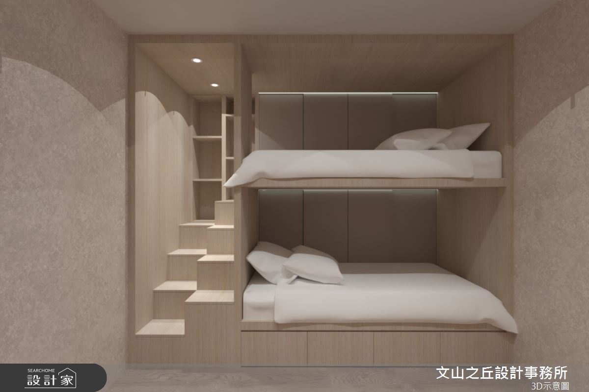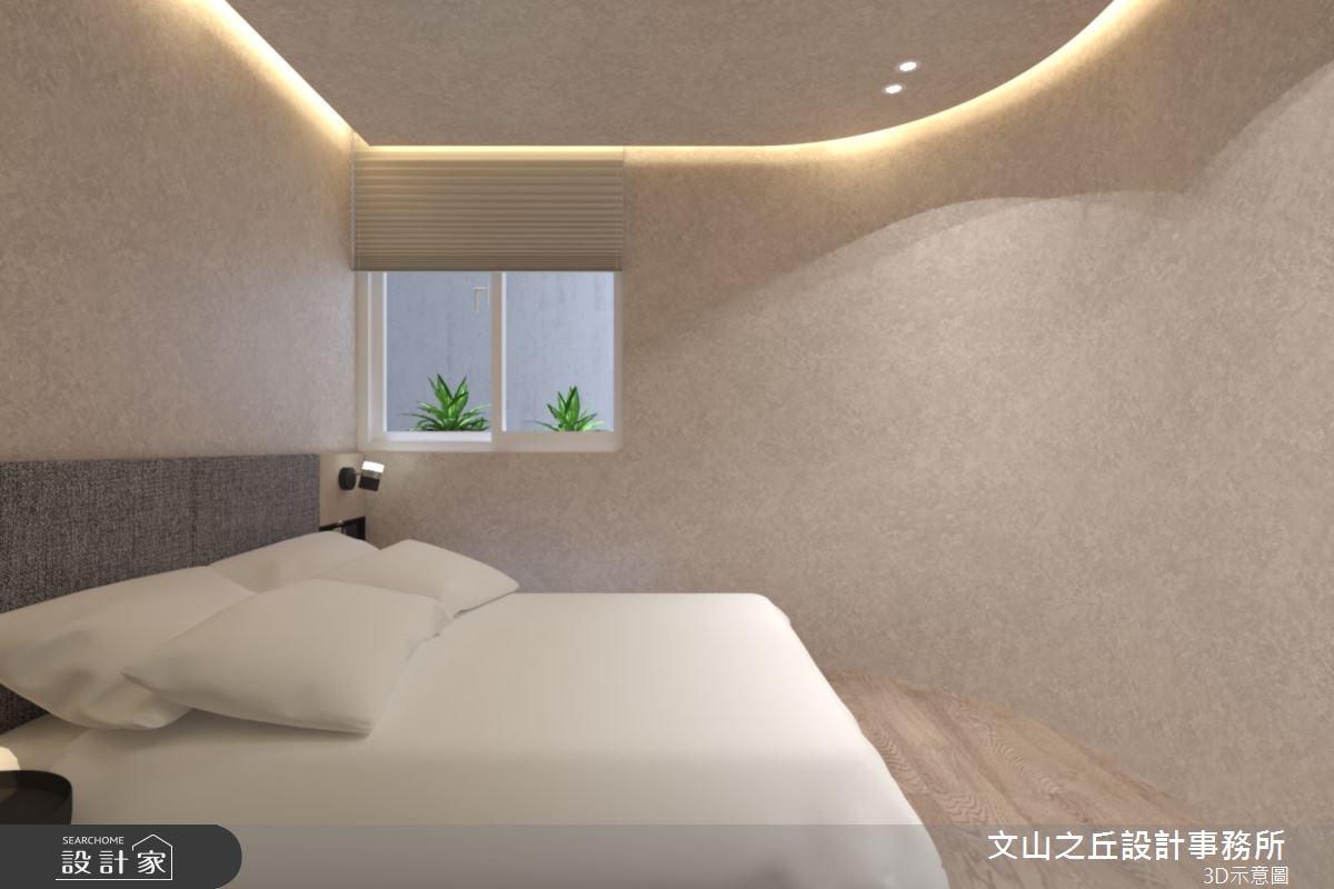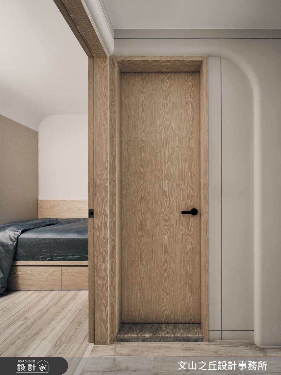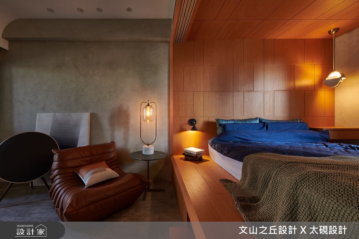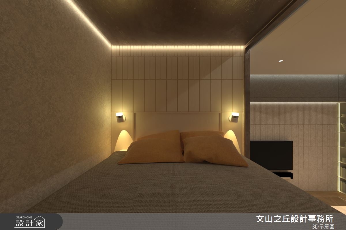 本案為文山之丘設計事務所的8坪混搭風新成屋(5年以下)設計作品,格局為套房一房的居住空間。居住成員包含1位長輩。全室建材的搭配,應用乳膠漆、超耐磨木地板、鐵件、木作貼皮、系統板材、水泥/水泥粉光、人造石,展現溫馨的居家氛圍。