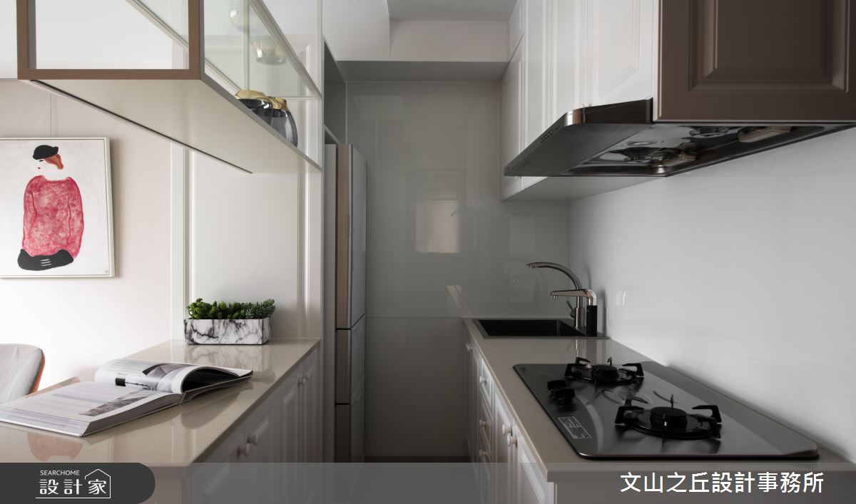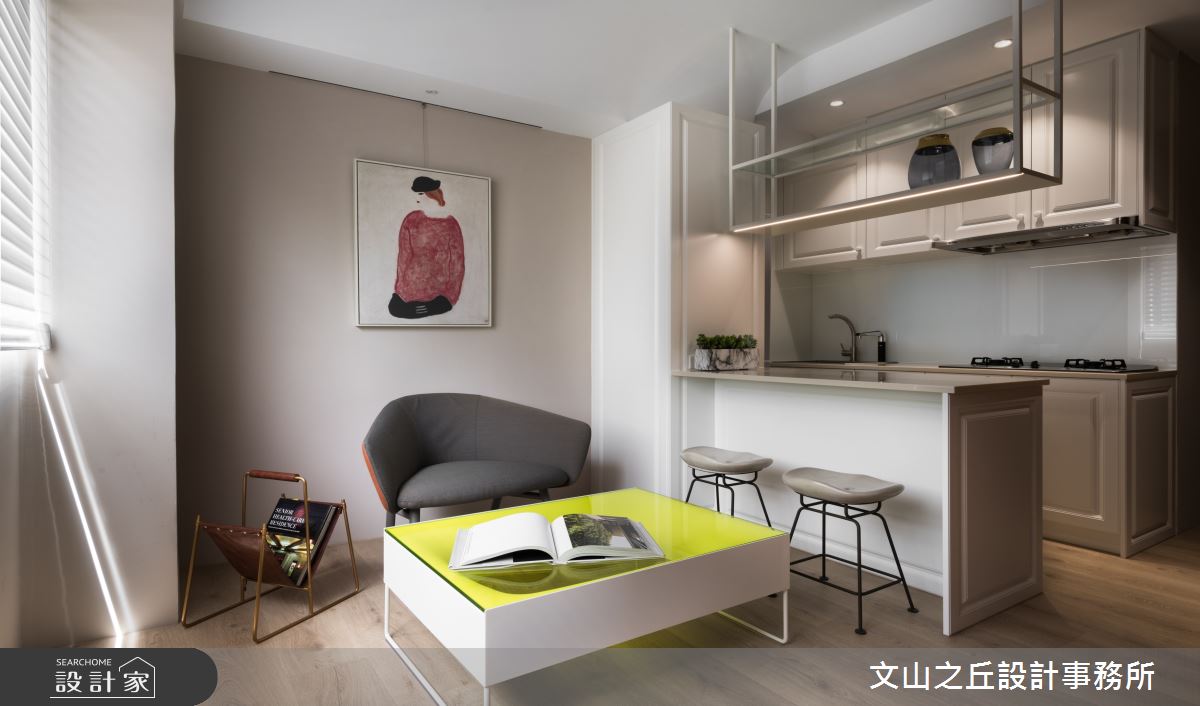 由文山之丘設計事務所精心規劃的8坪一房住宅空間,家庭成員一共有2位大人。因應屋主需求,設計師運用現代風作為主軸,搭配乳膠漆、海島型木地板、鐵件、木作貼皮、系統板材、磁磚、人造石,打造全家人的夢想家居。