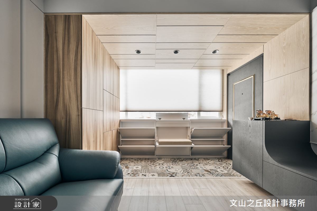 來自文山之丘設計事務所的26坪現代風住宅案,屋主一家人共有2位大人、2位小孩,是一間單層老屋(41~50年)的三房格局,設計師藉由建材以油漆、乳膠漆、花磚、水泥漆、超耐磨木地板、木作貼皮、系統板材、磁磚、水泥/水泥粉光、薄板、特殊漆的搭配應用,實現一家人的理想生活。
