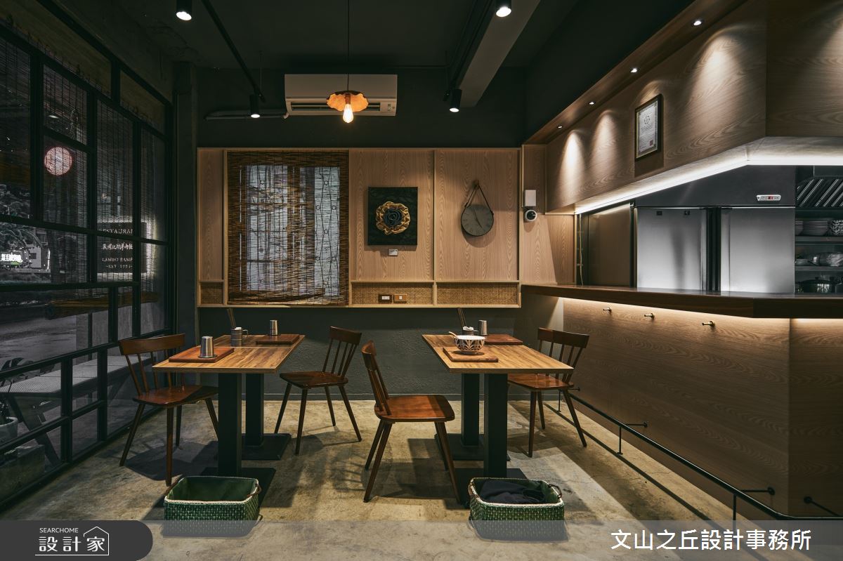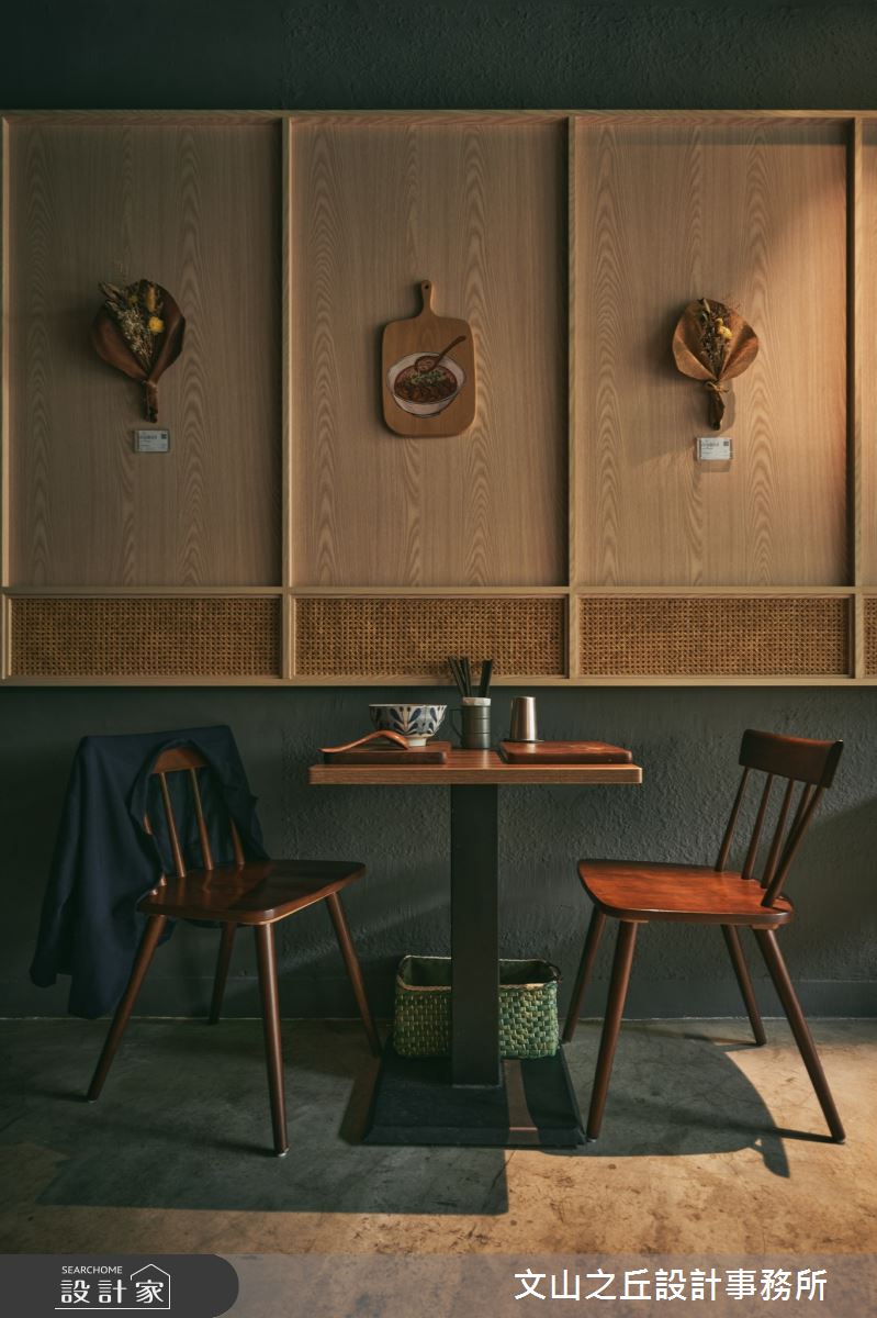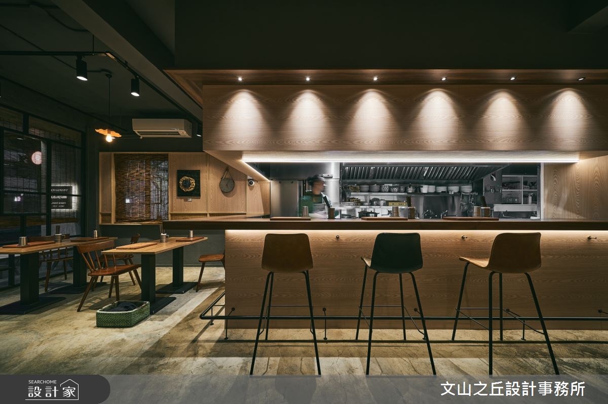 文山之丘設計事務所以超耐磨木地板、PVC地板、鐵件、鍍鈦金屬、木作貼皮、系統板材、水泥/水泥粉光、軌道燈、線板、美耐板的搭配應用,呈現混搭風的風格氣息,將此間22坪老屋(41~50年)優雅詮釋成舒適愜意的商業空間。