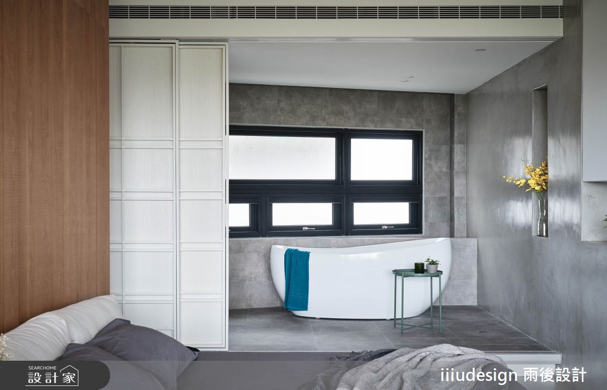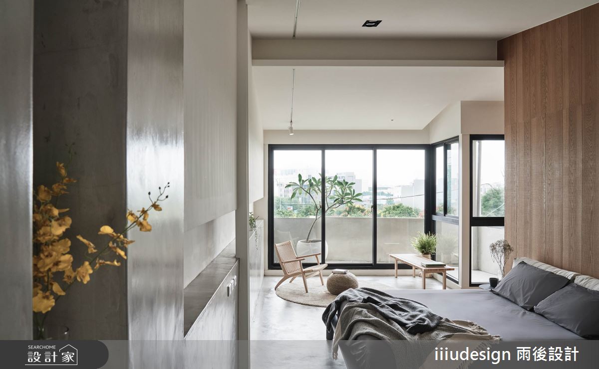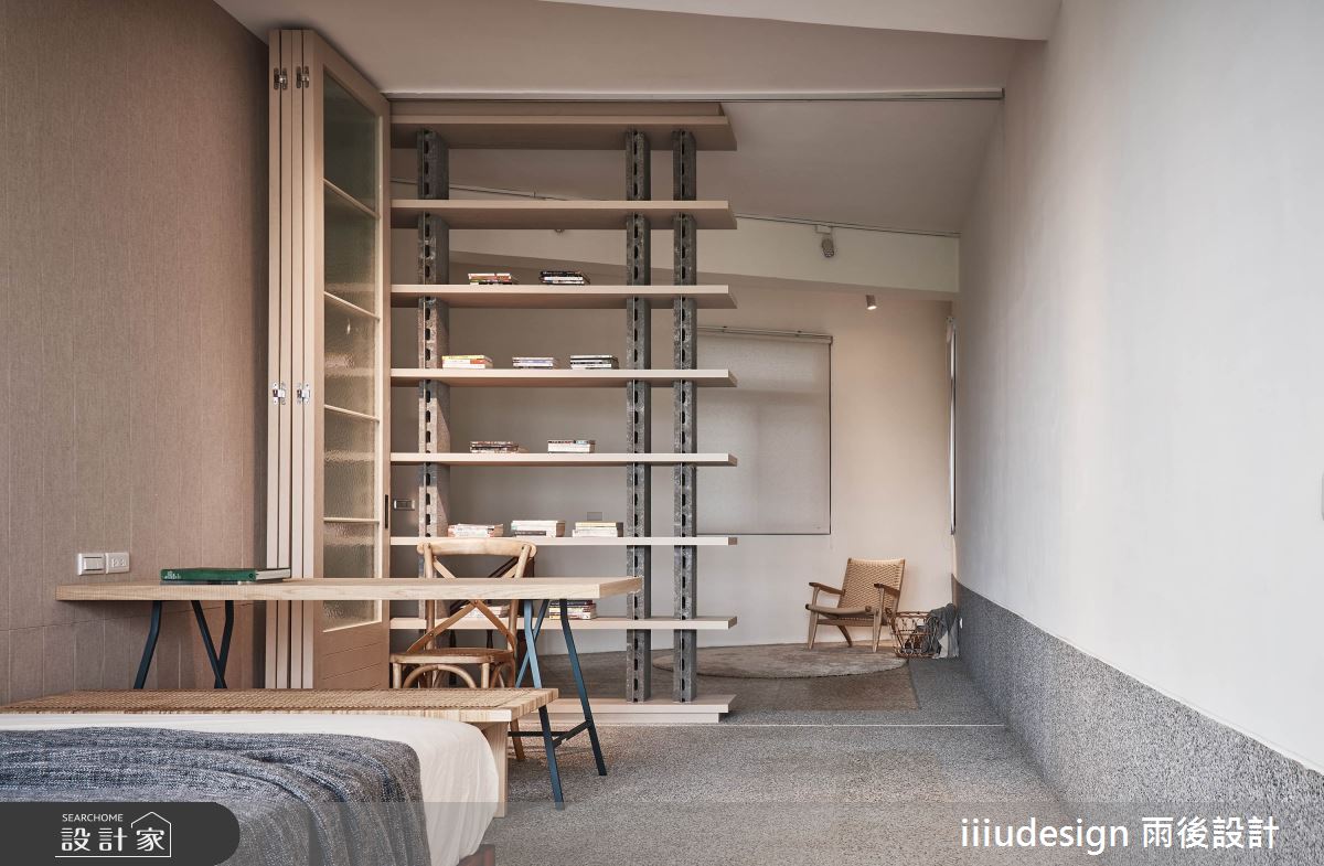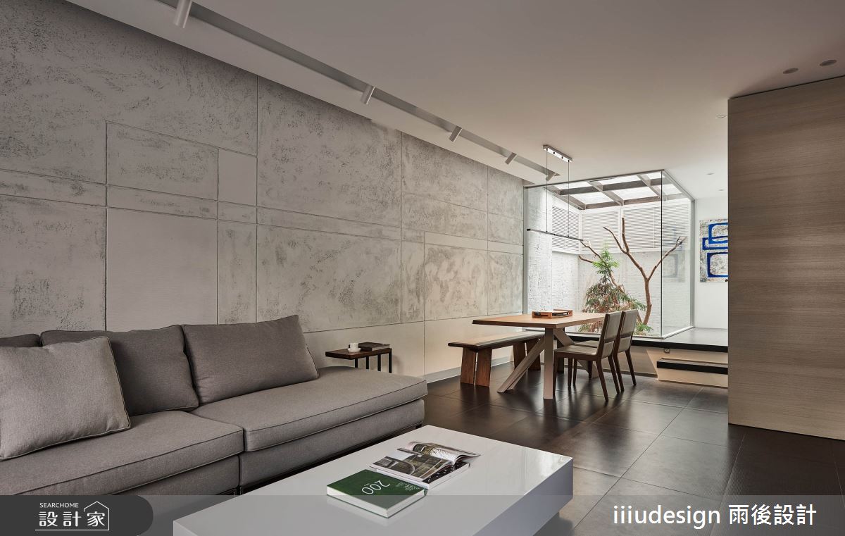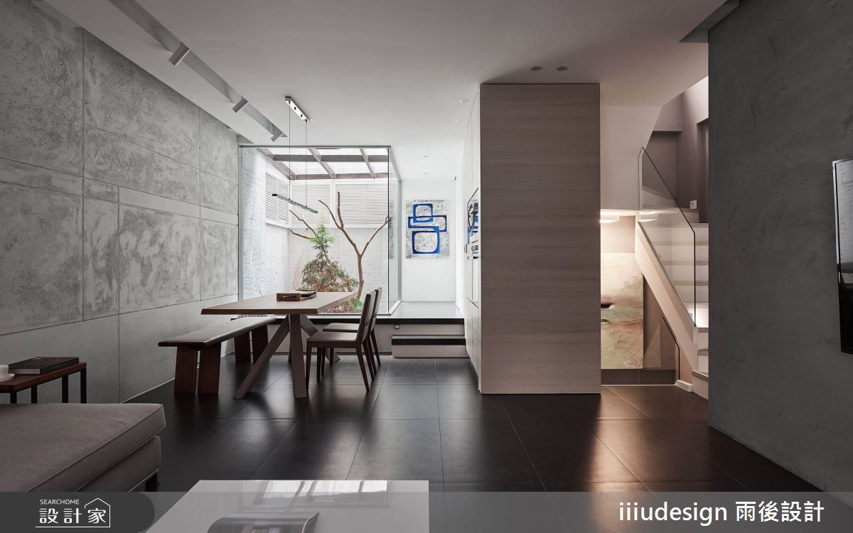 雨後設計有限公司以乳膠漆、鐵件、木作貼皮、水泥/水泥粉光、繃布、噴漆的搭配應用,呈現現代風居家氛圍,將此間54坪、兩房、單層、老屋(31~40年)打造成舒適愜意的家庭空間,完成2位大人全家人的夢想之居。