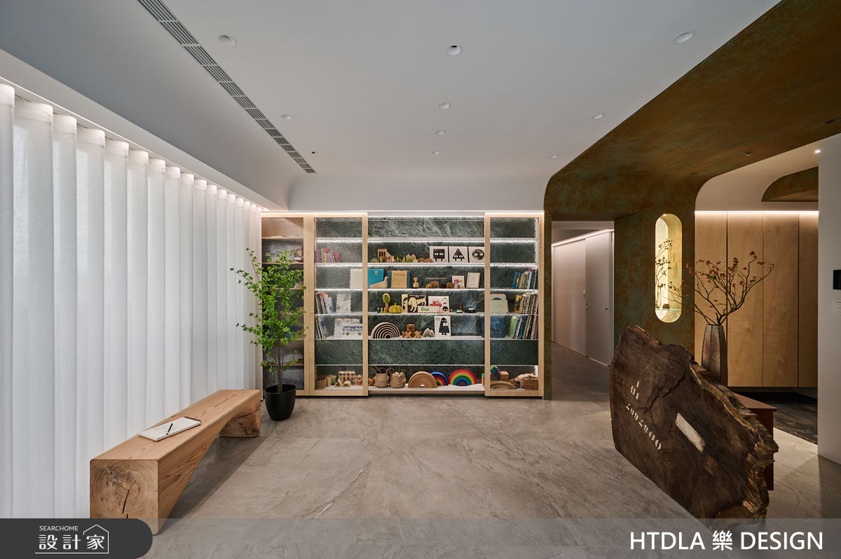 樂之設計以緬甸柚木、特殊鏽漆、天然漂流木、大板磚、玻璃的搭配應用,呈現混搭風居家氛圍,將此間35坪、三房、單層、新成屋(5年以下)打造成舒適愜意的家庭空間,完成2位大人、1位小孩全家人的夢想之居。