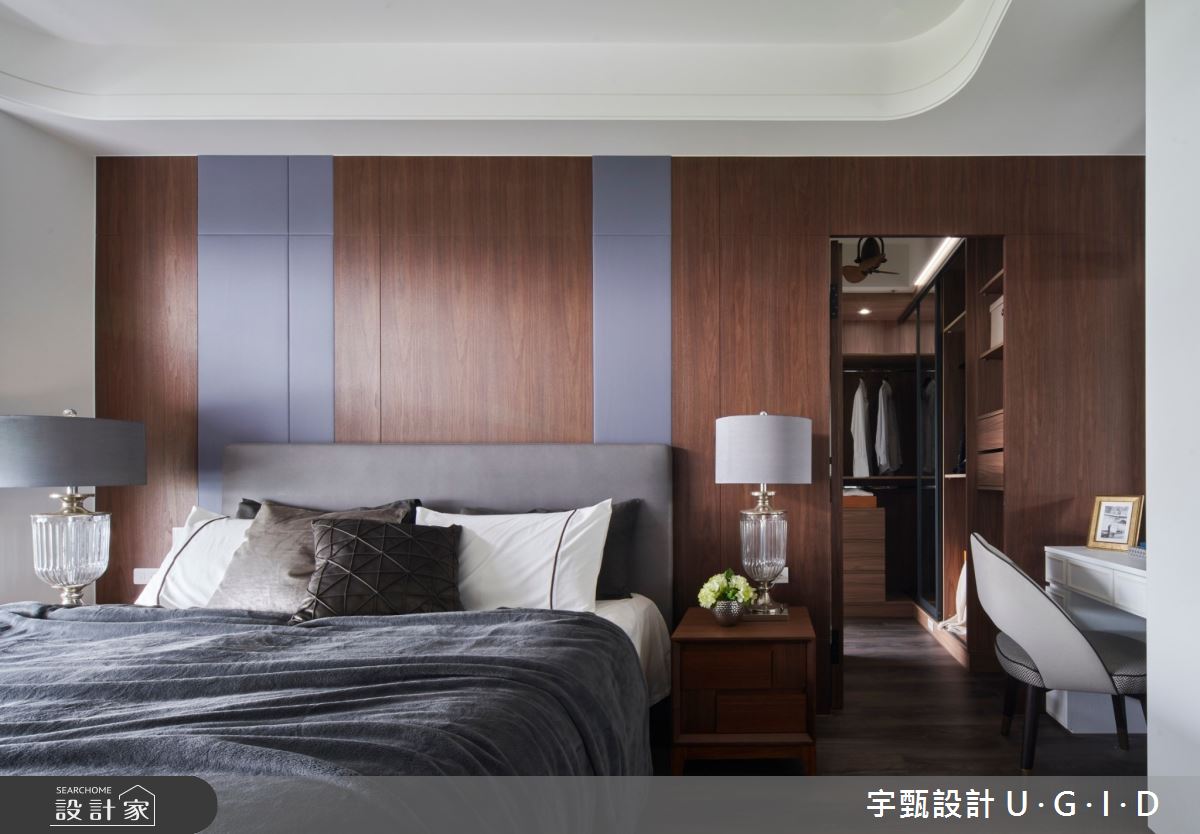 由宇甄設計 U.G.I.D精心規劃的46坪四房住宅空間,家庭成員一共有2位大人、2位小孩、1位長輩。因應屋主需求,設計師運用現代風作為主軸,搭配木紋磚、石英磚/拋光石英磚、人造石、板岩、實木皮板、美耐板、玻璃,打造全家人的夢想家居。