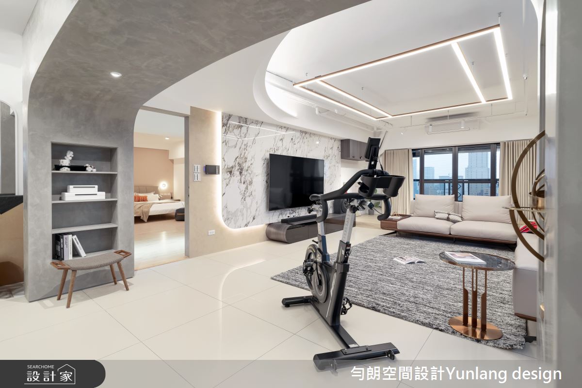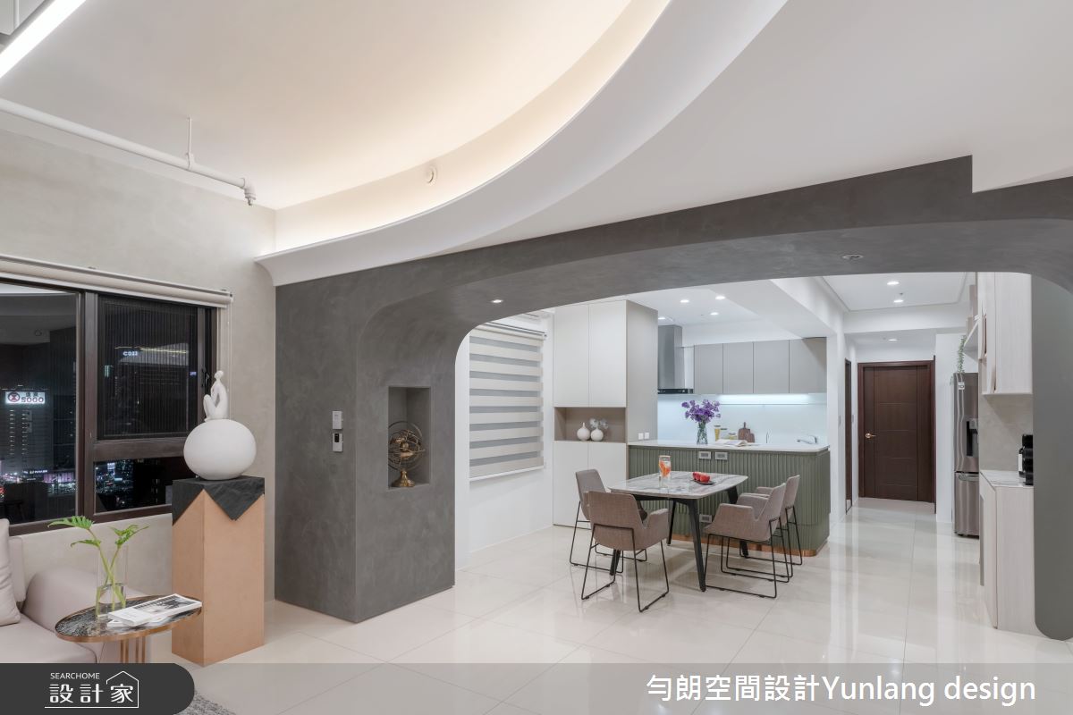 來自勻朗空間設計的50坪現代風住宅案,屋主一家人共有2位大人、3位小孩,是一間單層新成屋(5年以下)的三房格局,設計師藉由建材以乳膠漆、超耐磨木地板、PVC地板、薄板、鐵件、明鏡、小冰柱玻璃、灰玻、鍍鈦金屬、鋼刷木皮、系統板材、調光簾、蛇形簾、鋁條燈、可彎線板、噴漆、司曼特塗料的搭配應用,實現一家人的理想生活。