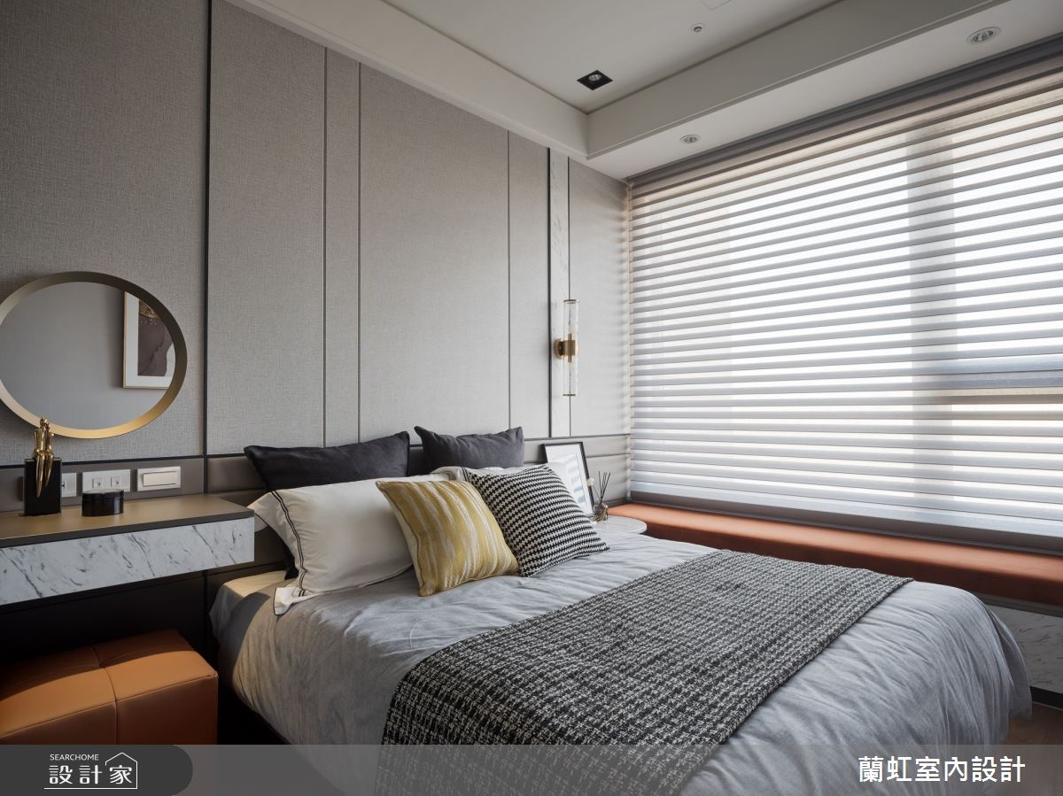 本案為蘭虹設計的33坪現代風新成屋(5年以下)設計作品,格局為單層三房的居住空間。居住成員包含2位大人、1位小孩。全室建材的搭配,應用油漆、乳膠漆、壁紙、超耐磨木地板、石英磚/拋光石英磚、鐵件、木作貼皮、烤漆、系統板材、大理石、皮革、石材、木格柵、水磨石,展現溫馨的居家氛圍。