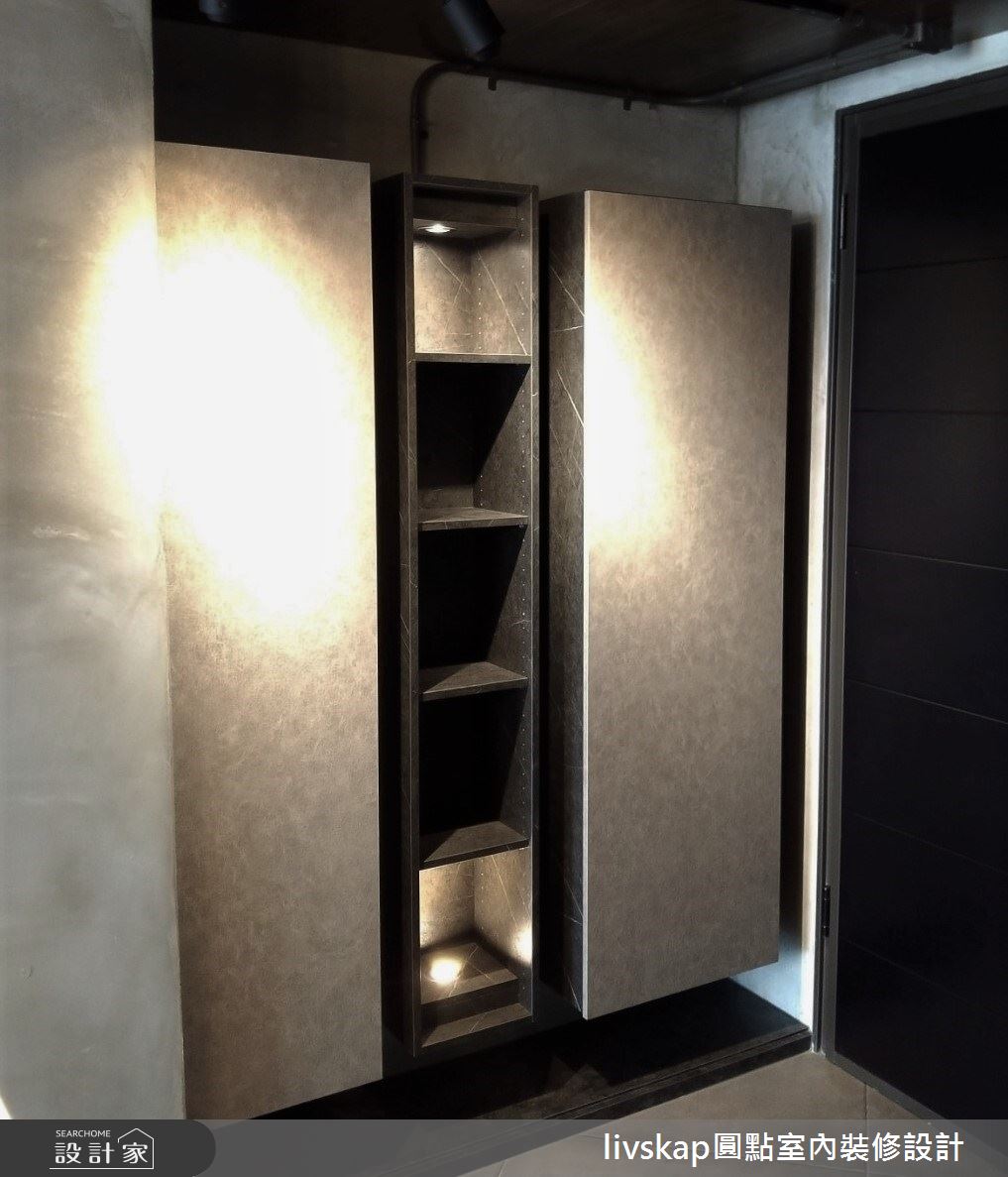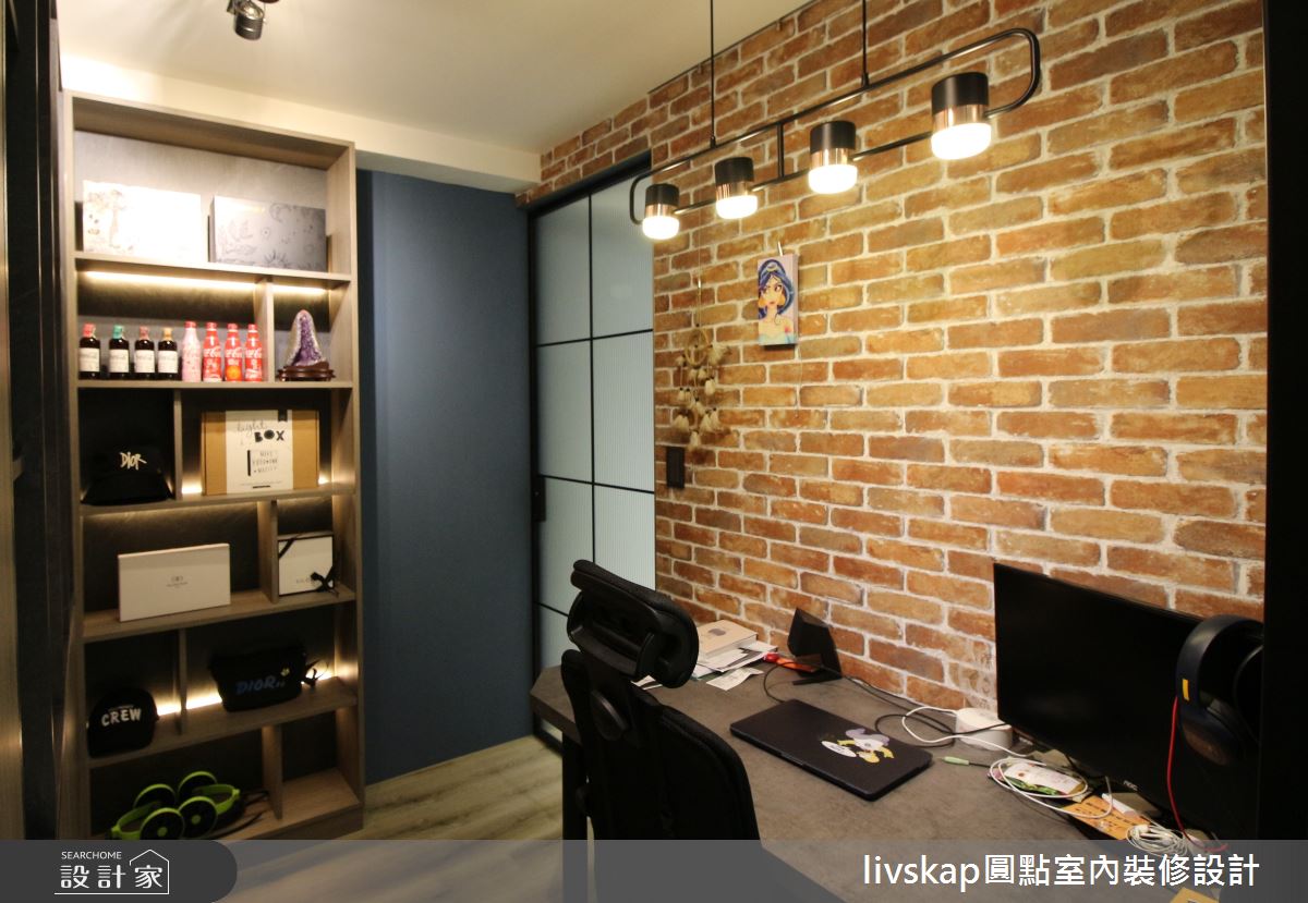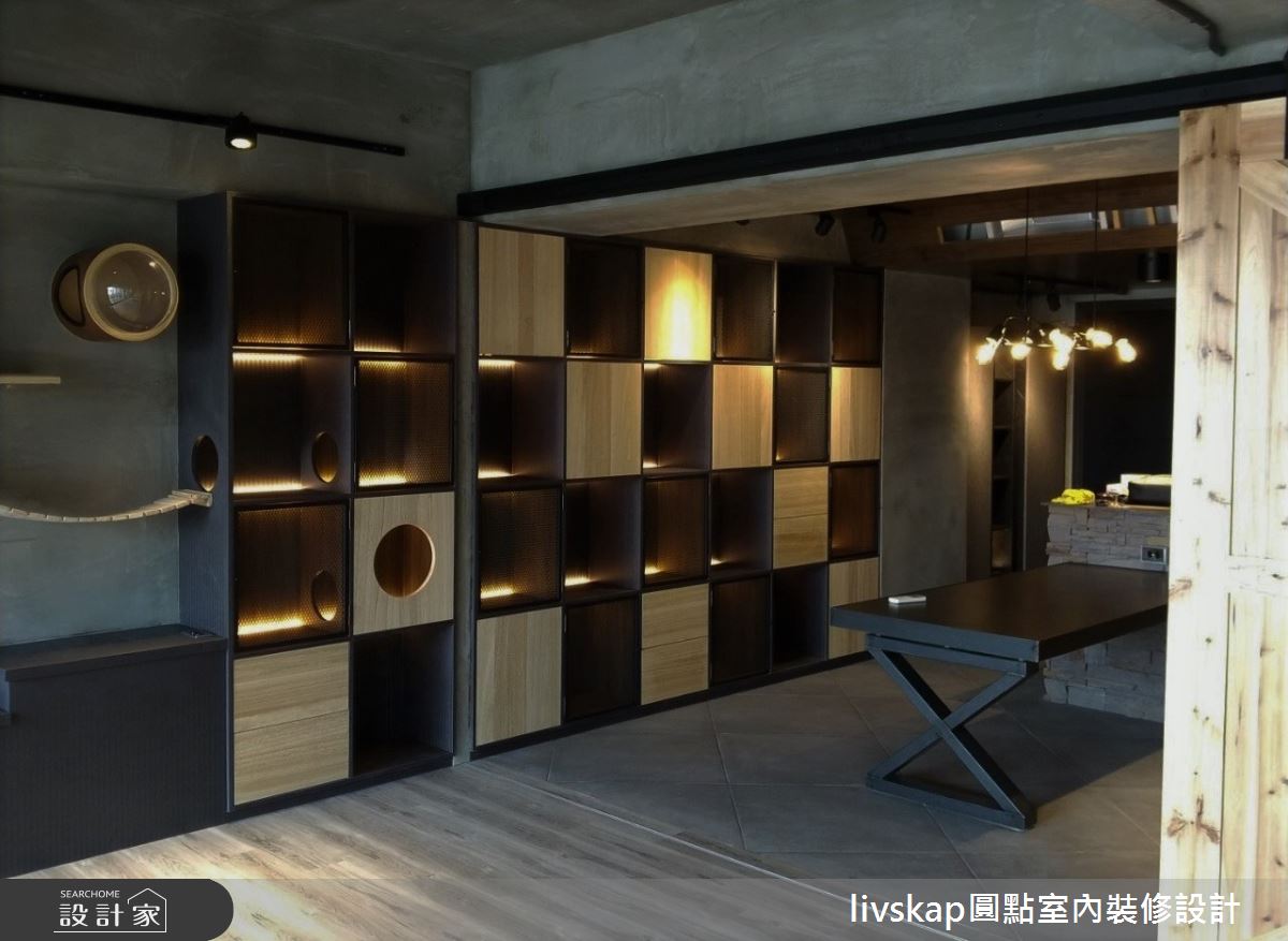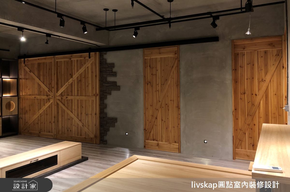本案為圓點室內裝修國際有限公司的28坪工業風新成屋(5年以下)設計作品,格局為單層兩房的居住空間。居住成員包含1位大人。全室建材的搭配,應用乳膠漆、文化石、超耐磨木地板、木紋磚、石英磚/拋光石英磚、鐵件、灰鏡、烤玻、木作貼皮、烤漆、鋼刷木皮、系統板材、磁磚、水泥/水泥粉光、賽麗石、軌道燈、噴漆、穀倉門、造型實木,展現溫馨的居家氛圍。