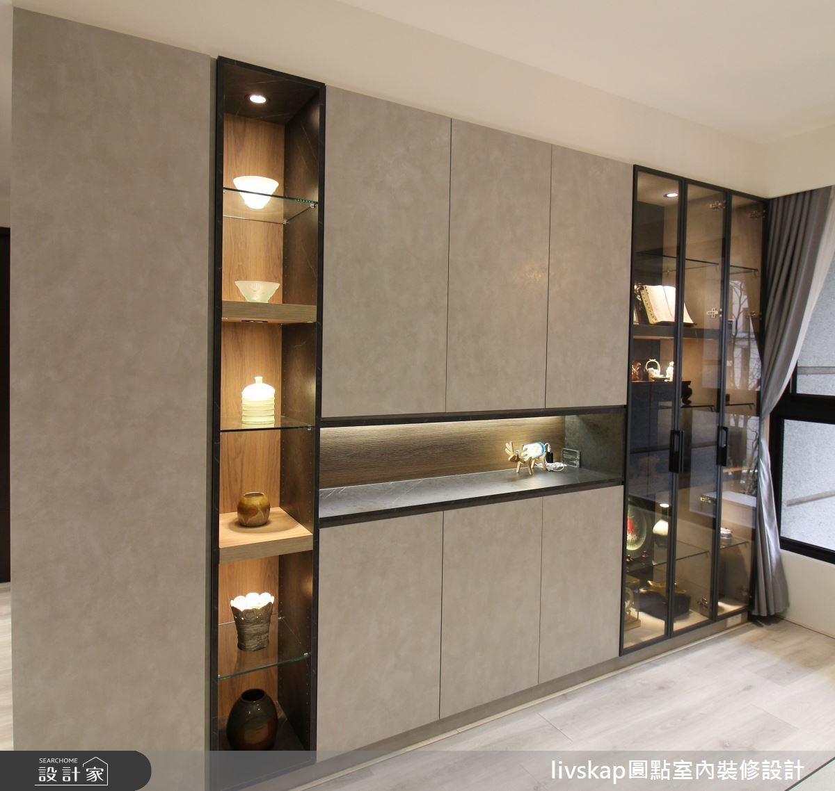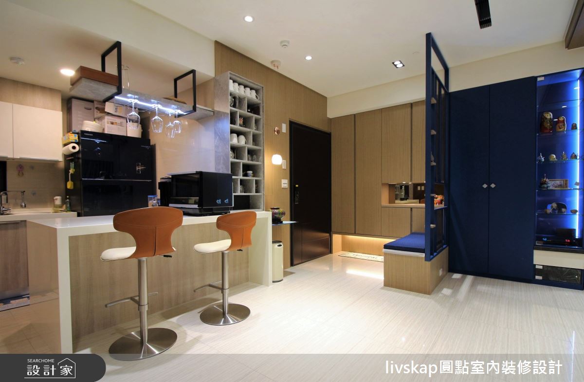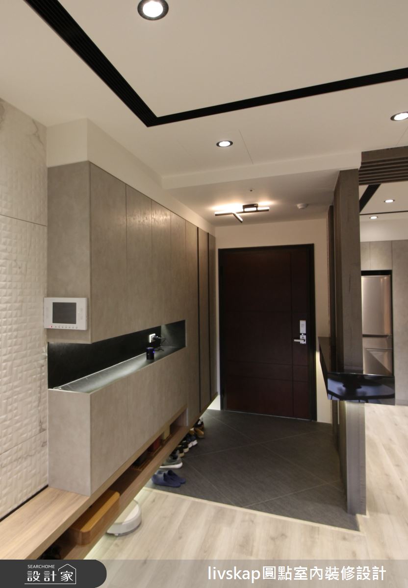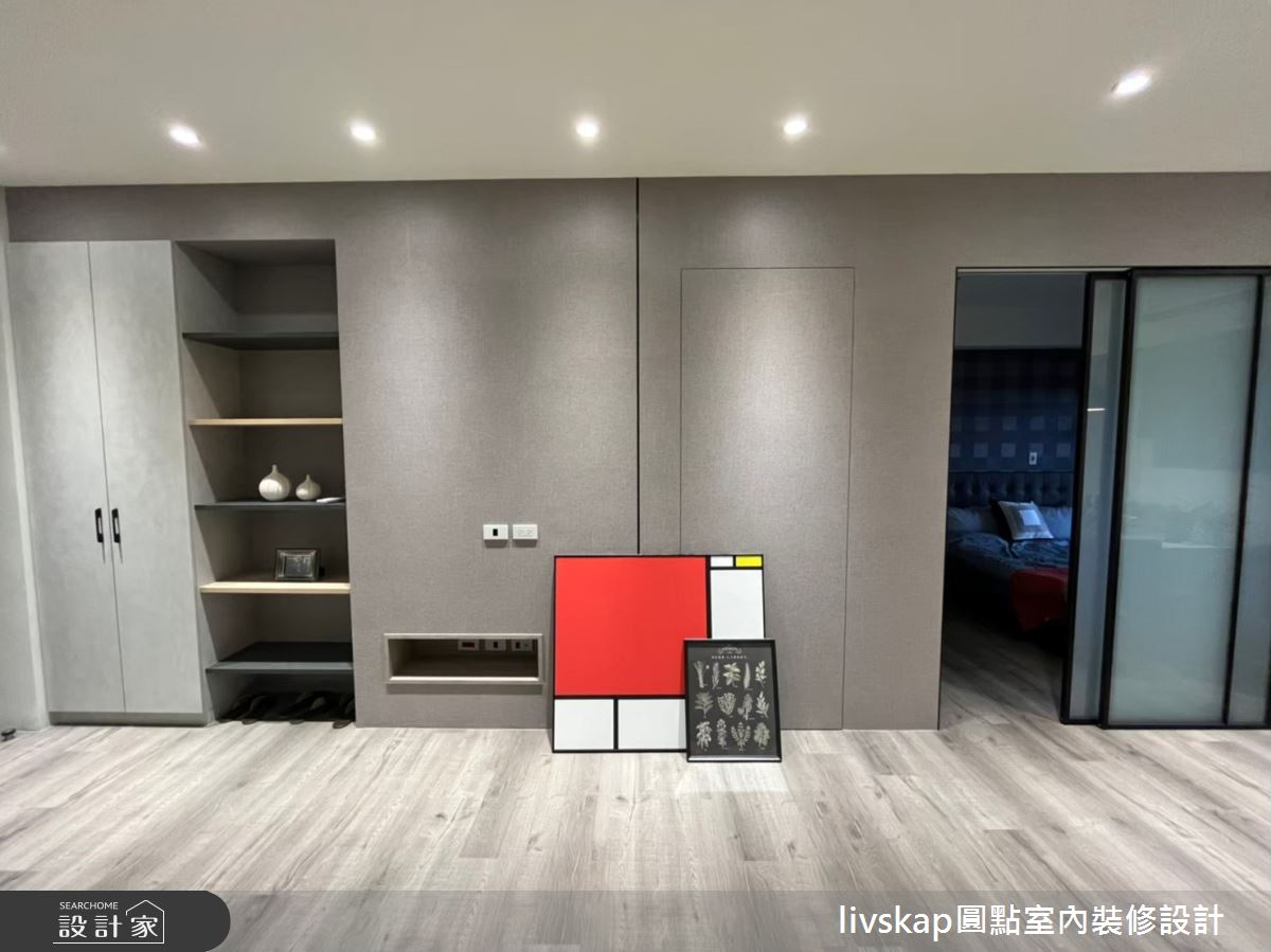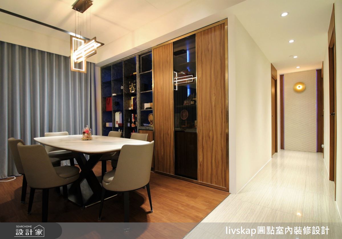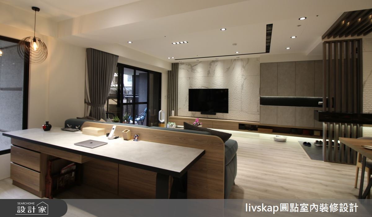 來自圓點室內裝修國際有限公司的47坪現代風住宅案,屋主一家人共有4位大人,是一間單層新成屋(5年以下)的三房格局,設計師藉由建材以壁紙、海島型木地板、石英磚/拋光石英磚、鐵件、鍍鈦金屬、木作貼皮、鋼刷木皮、系統板材、石材、繃布、噴漆、瀑布玻璃的搭配應用,實現一家人的理想生活。