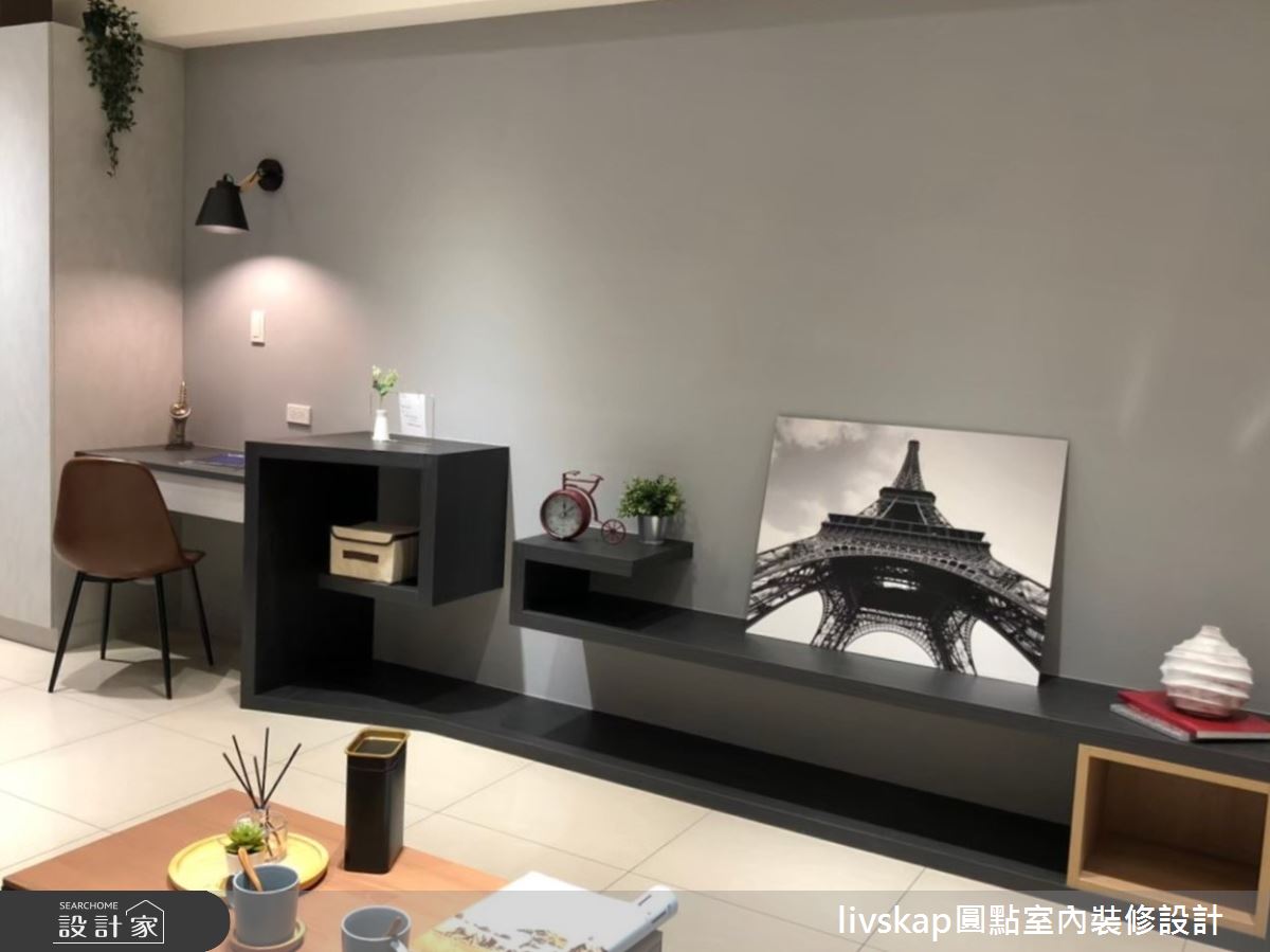 來自圓點室內裝修國際有限公司的10坪簡約風住宅案,屋主一家人共有2位大人,是一間套房新成屋(5年以下)的一房格局,設計師藉由建材以石英磚/拋光石英磚、木作貼皮、系統板材、長虹玻璃、布簾的搭配應用,實現一家人的理想生活。