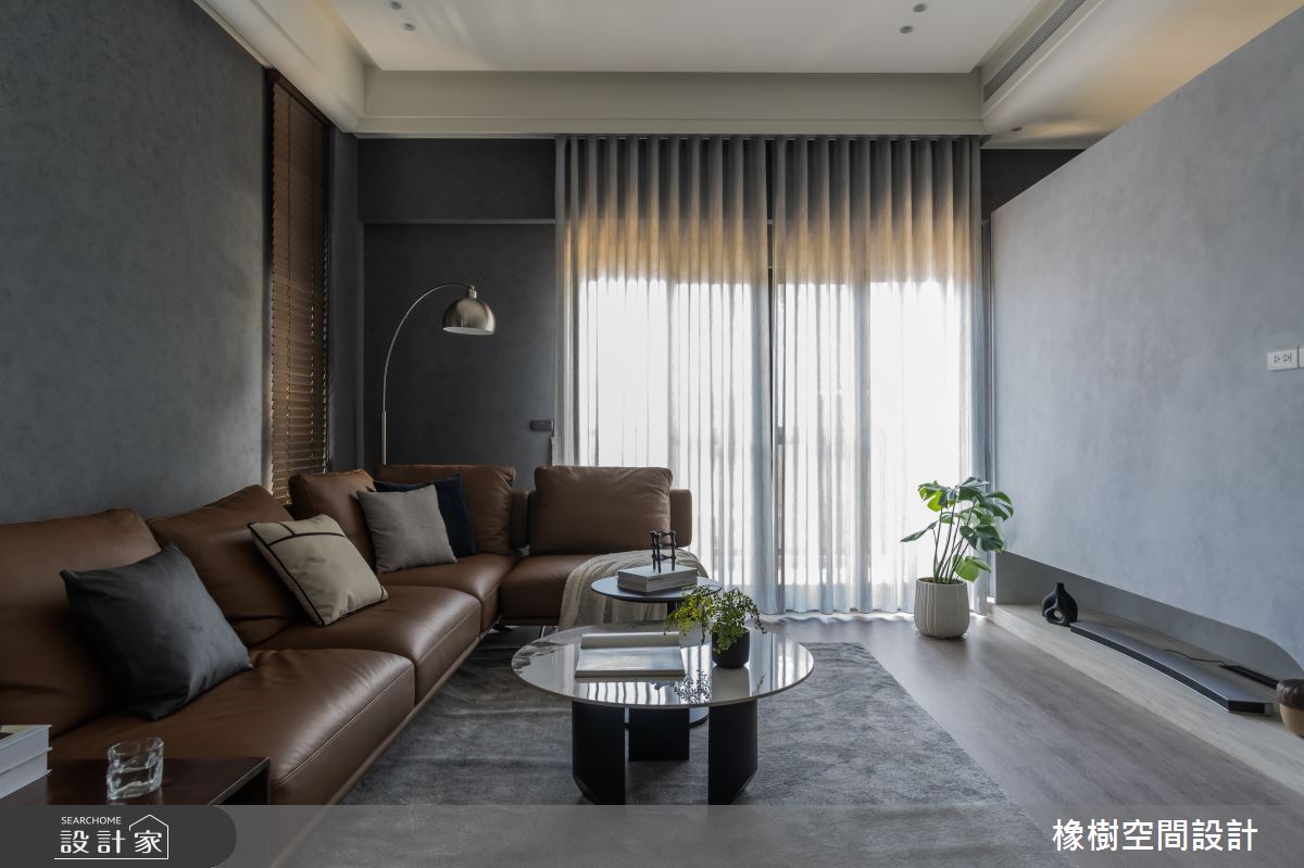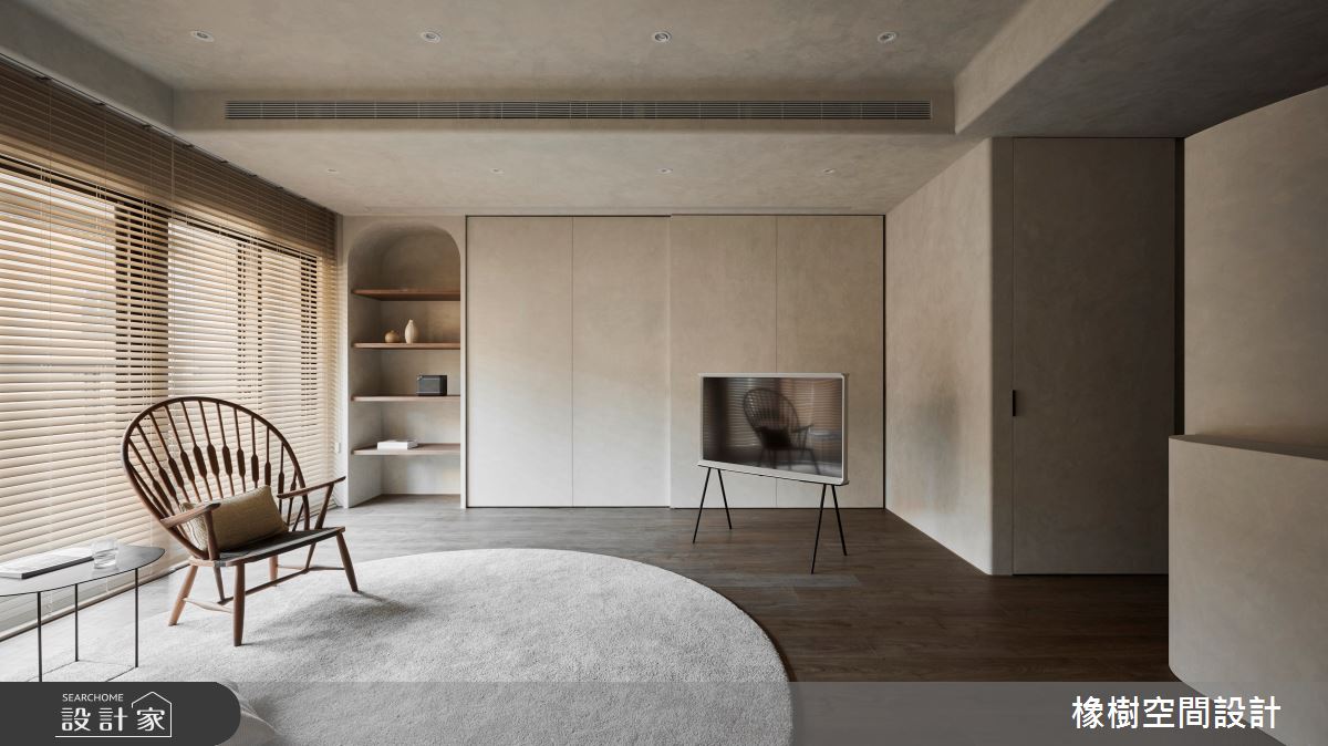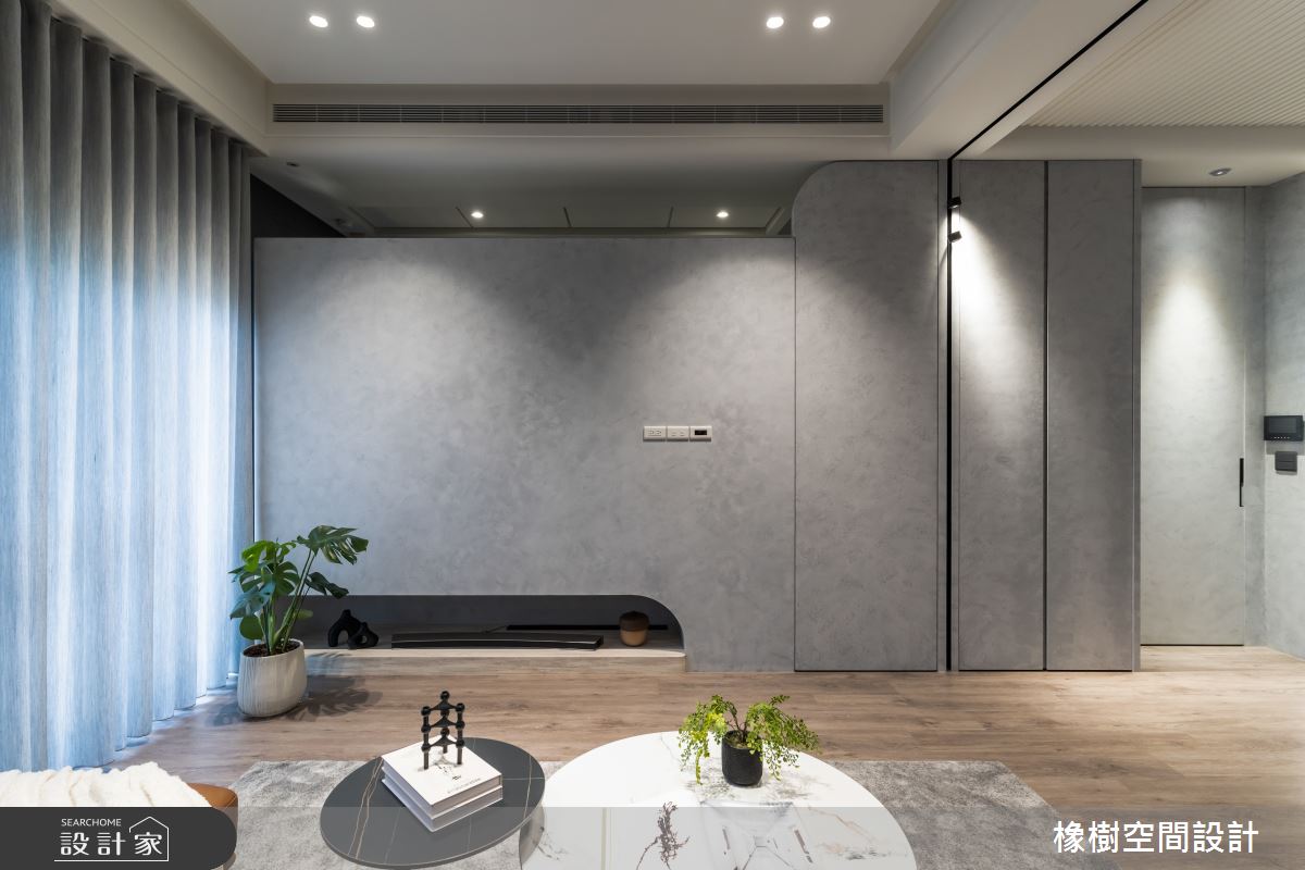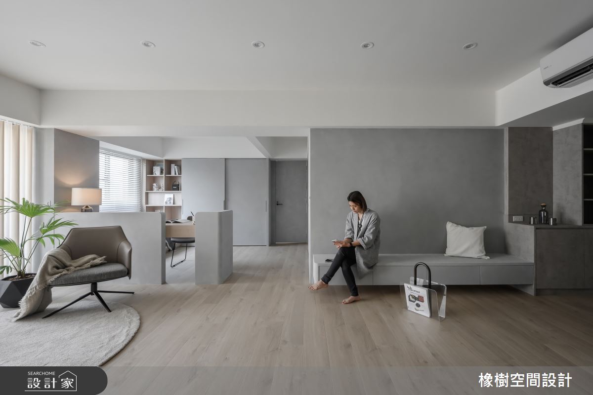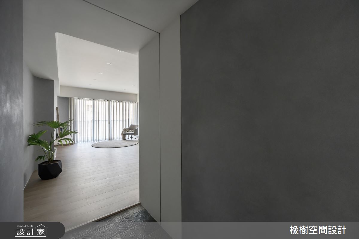 由橡樹空間設計精心規劃的90坪六房住宅空間,家庭成員一共有3位大人、1位長輩。因應屋主需求,設計師運用簡約風作為主軸,搭配水泥漆、超耐磨木地板、鐵件、木作貼皮、磁磚、木百葉、人造石、繃布、噴漆、PU牆飾本,打造全家人的夢想家居。
