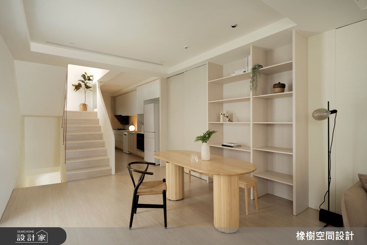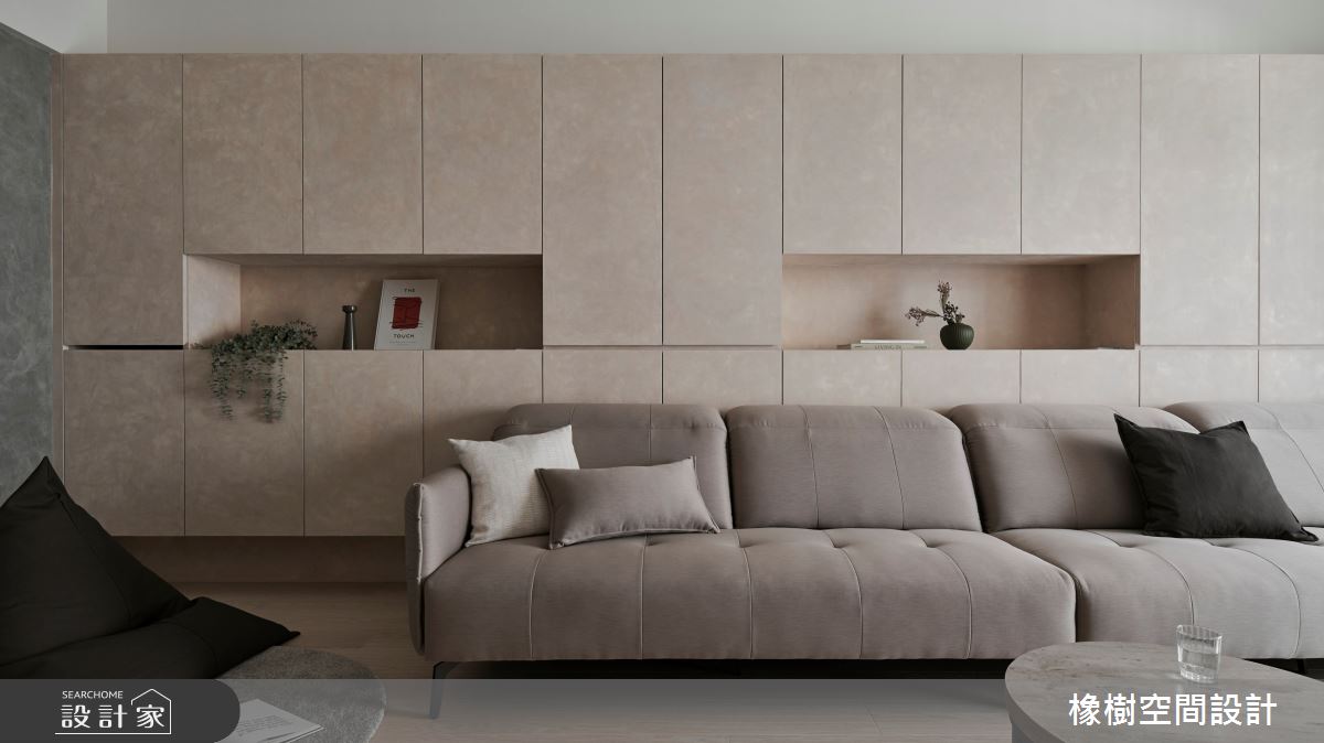 來自橡樹空間設計的20坪簡約風住宅案,屋主一家人共有2位大人,是一間單層新成屋(5年以下)的兩房格局,設計師藉由建材以水泥漆、人造石、繃布、SPC木地板、藝術塗料的搭配應用,實現一家人的理想生活。