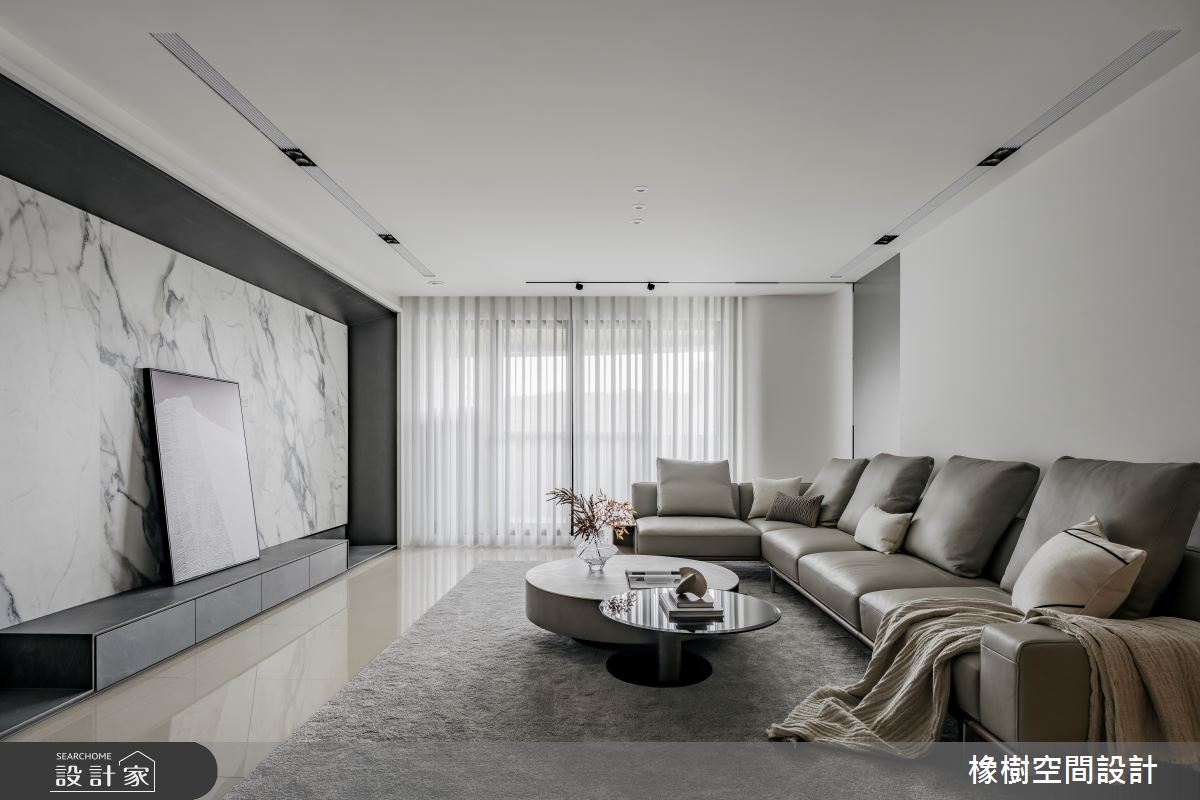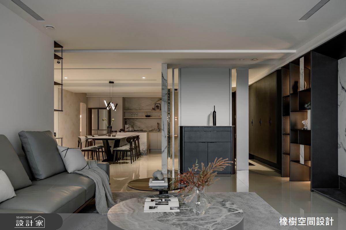 由橡樹空間設計精心規劃的50坪四房住宅空間,家庭成員一共有2位大人、2位小孩。因應屋主需求,設計師運用現代風作為主軸,搭配水泥漆、超耐磨木地板、鐵件、木作貼皮、烤漆、系統板材、大理石、皮革、石材、線板、噴漆、藝術塗料、伸縮崁燈、蜂巢簾,打造全家人的夢想家居。